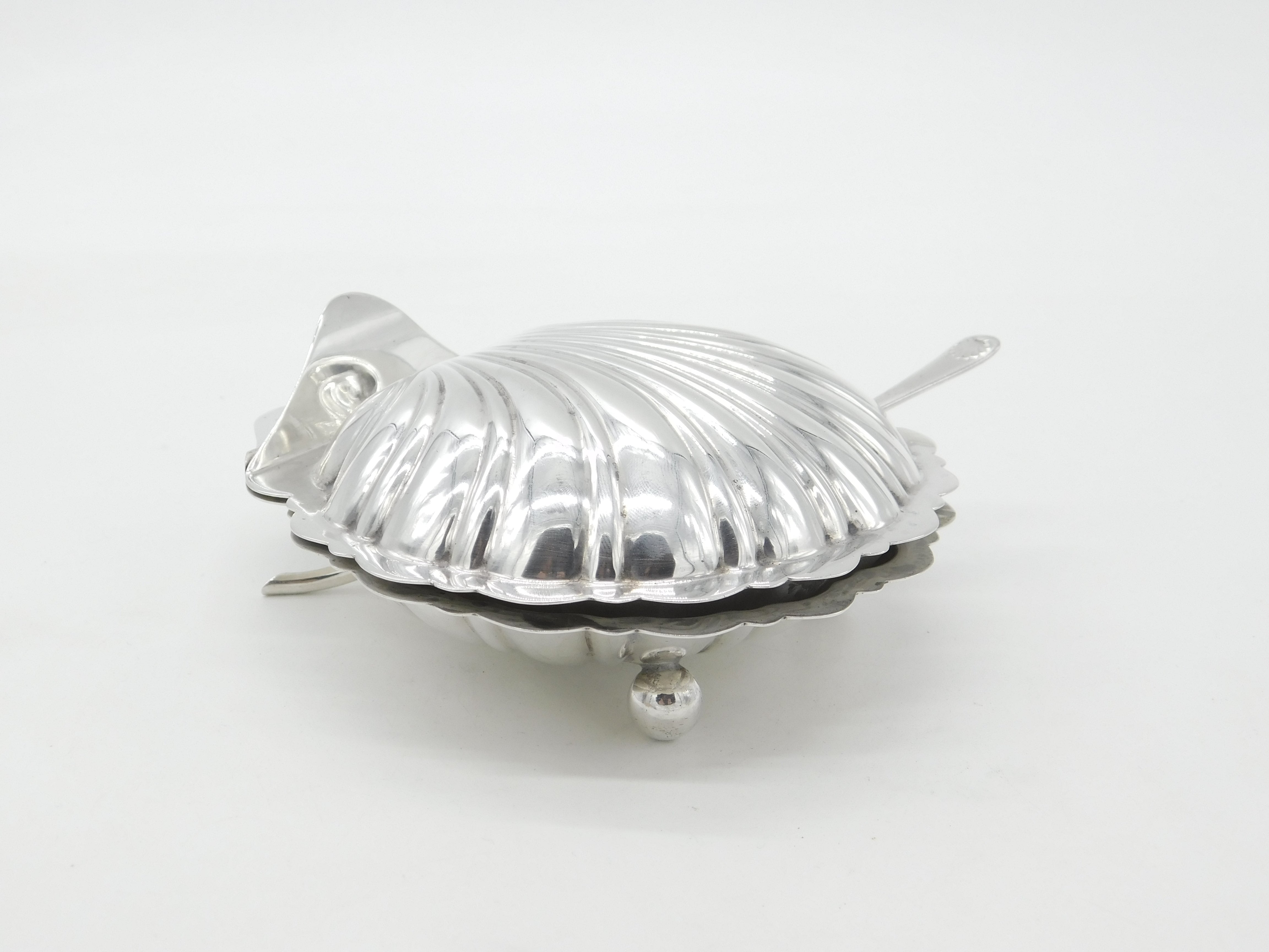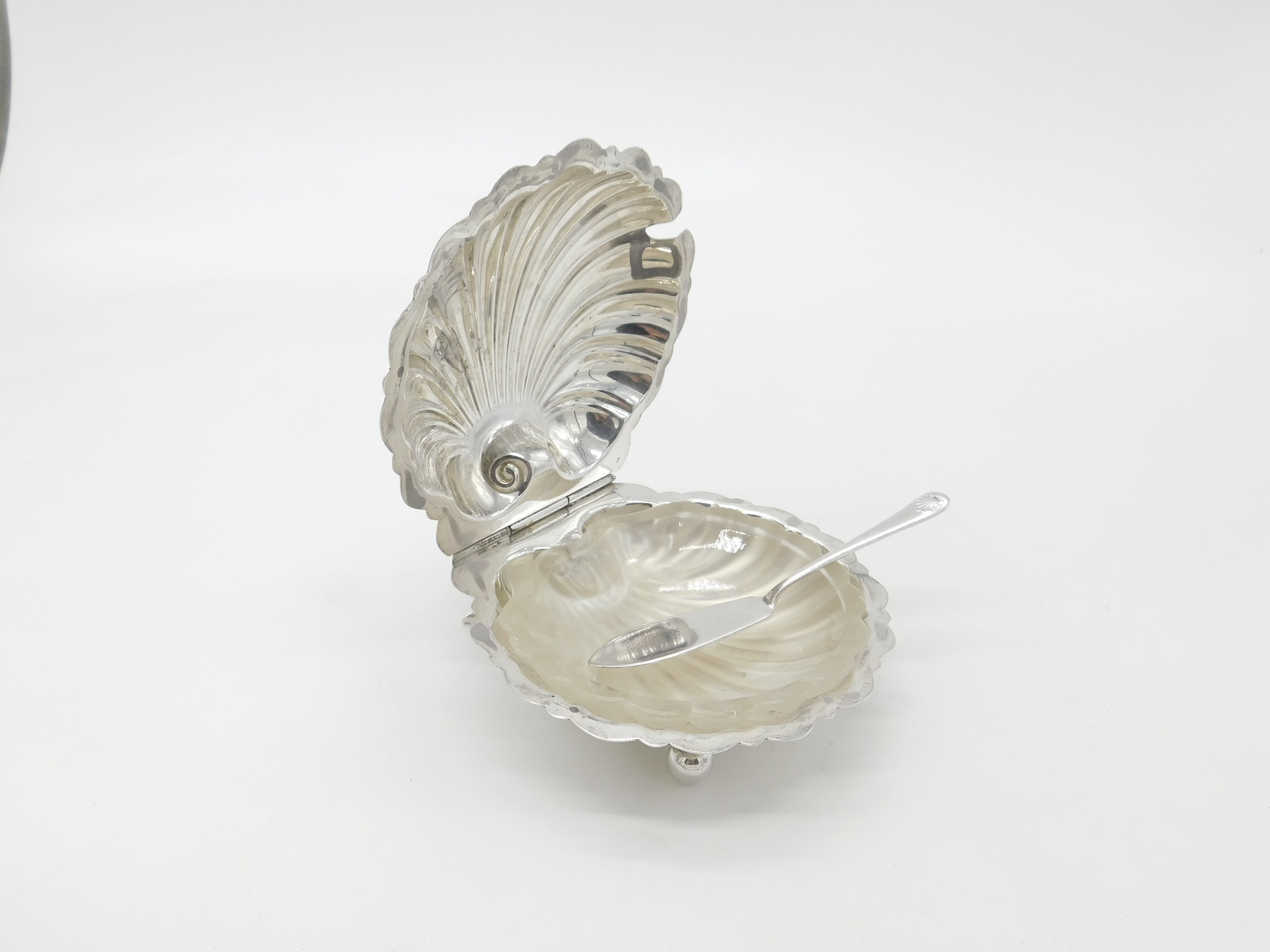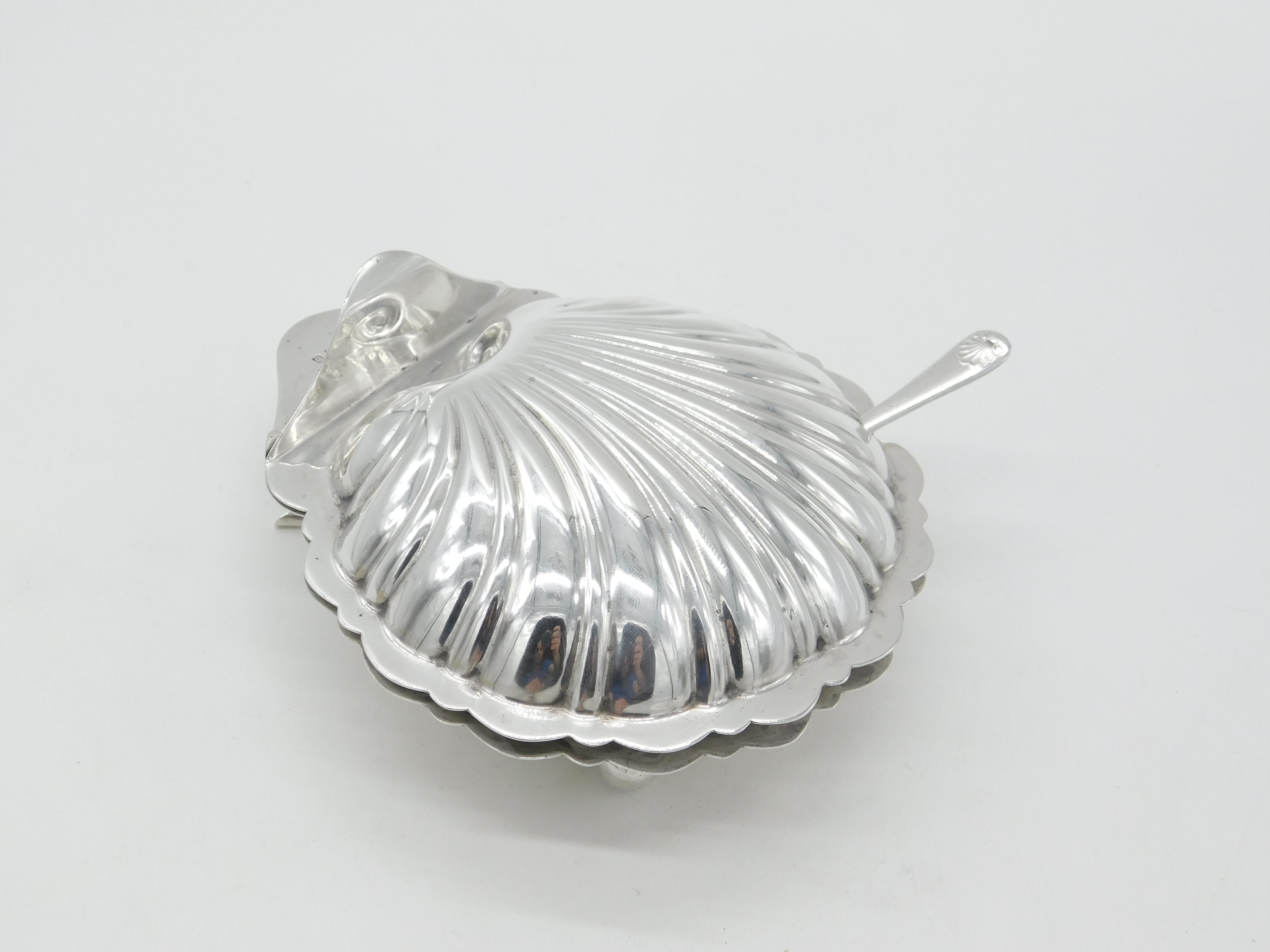 Sterling Silver Clam Shell Form Butter Dish & Knife 1926 Birmingham Antique