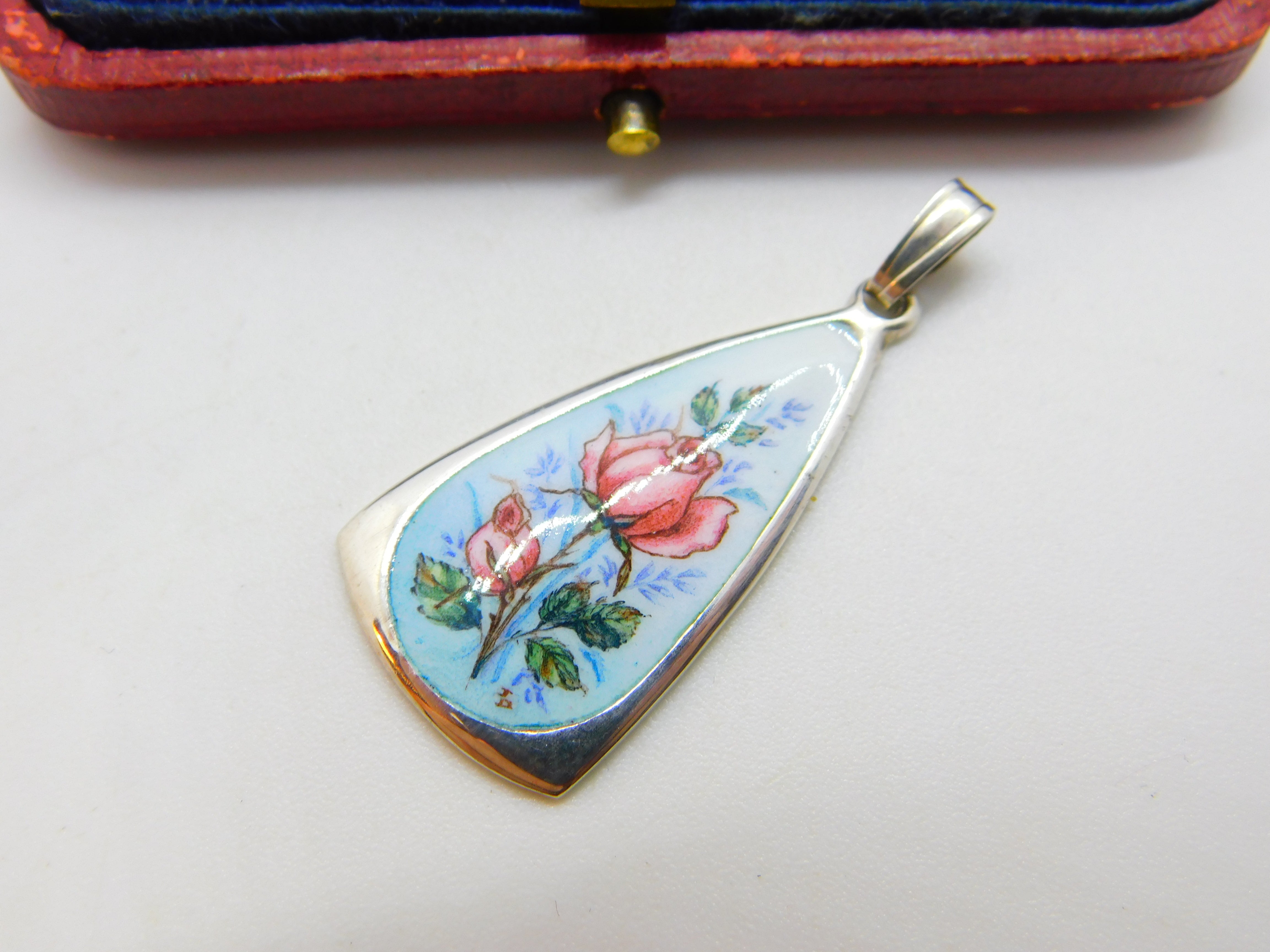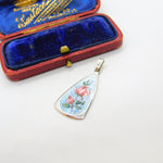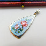 Sterling Silver & Colourful Enamel Rose Flower Drop Pendant 1983 Birmingham