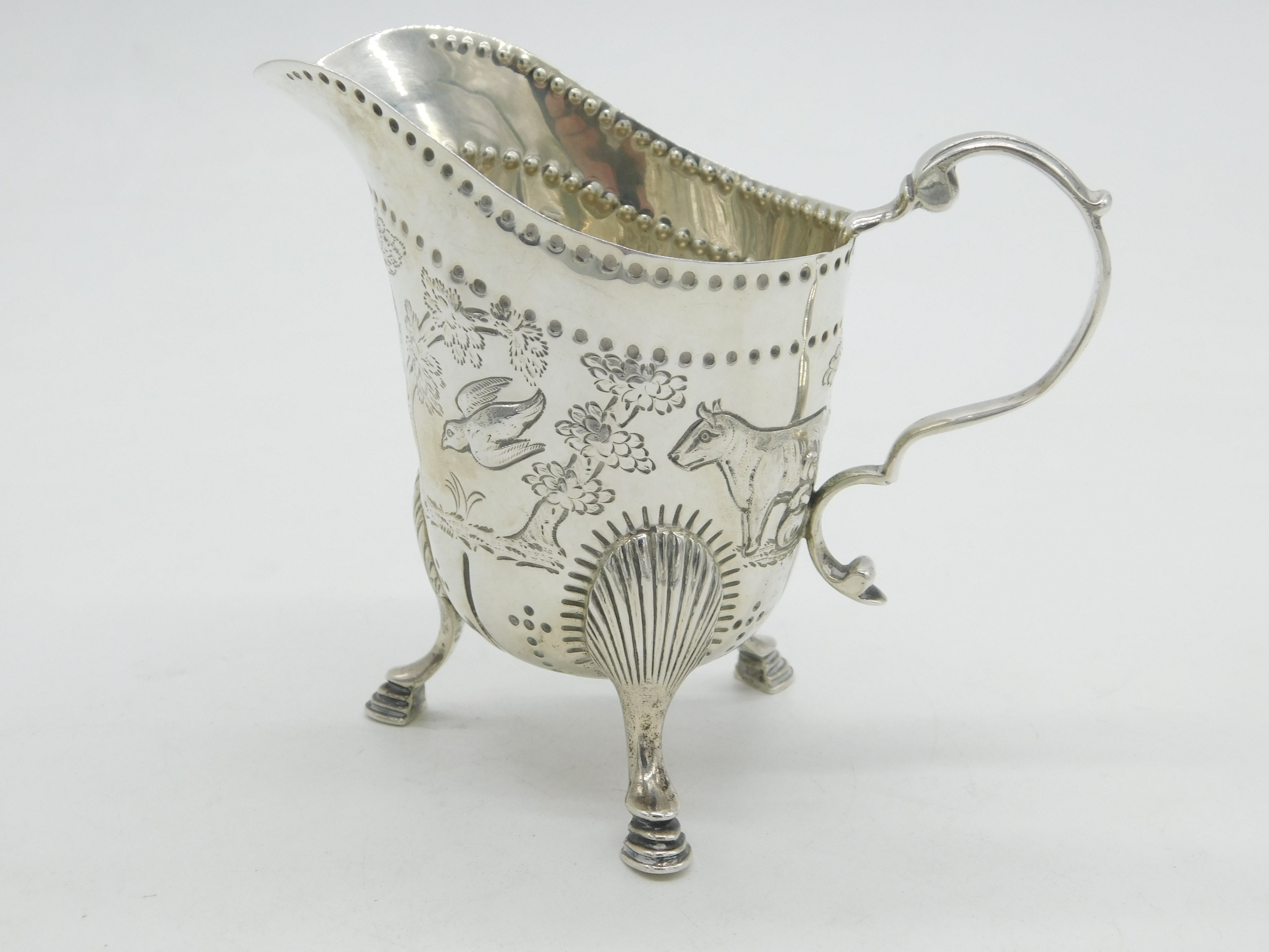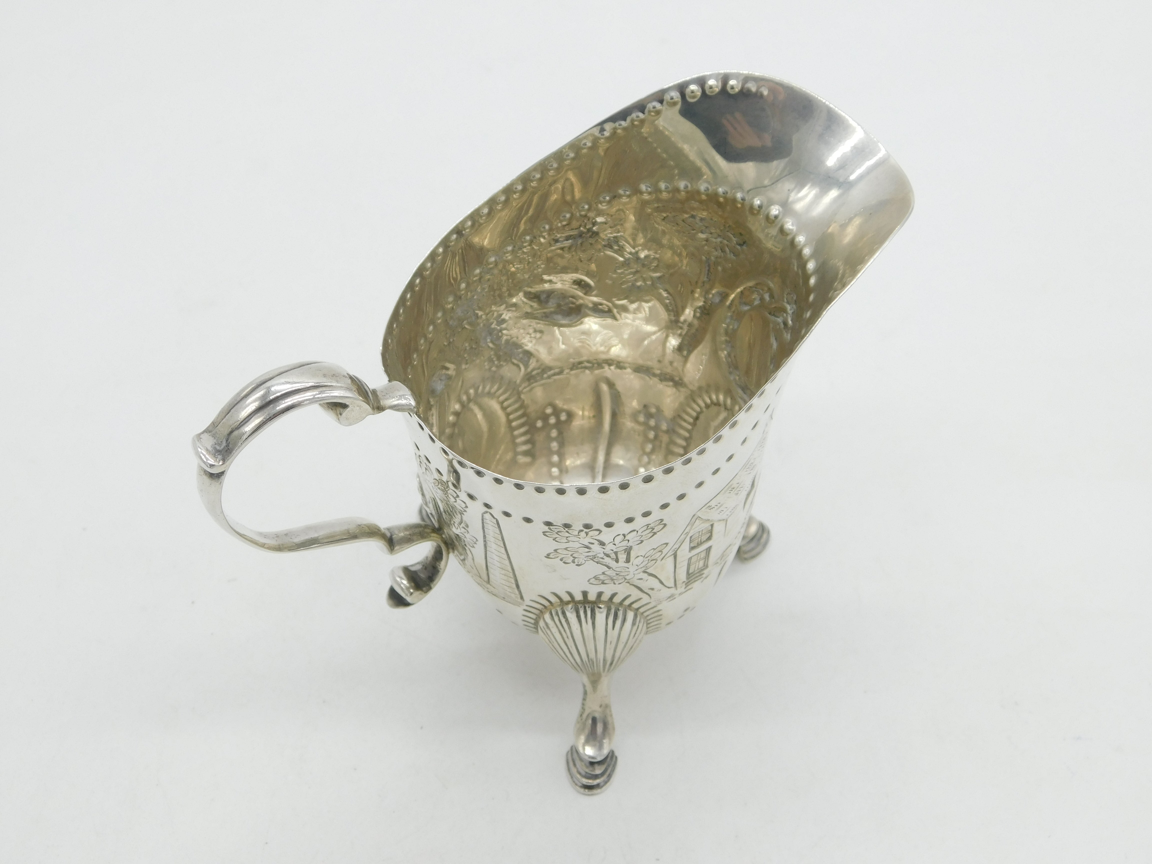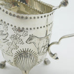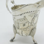 Sterling Silver Countryside Pattern Cows & Birds Cream Jug Antique 1928 London