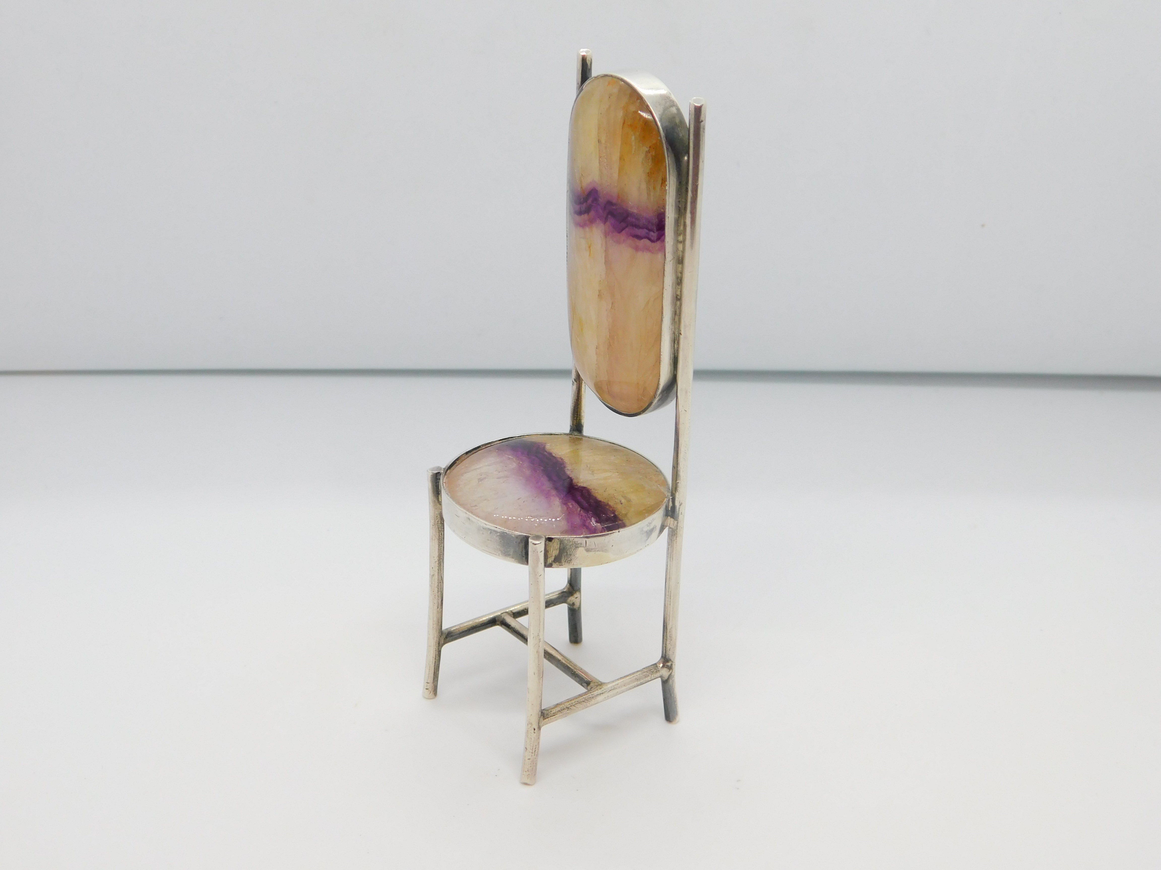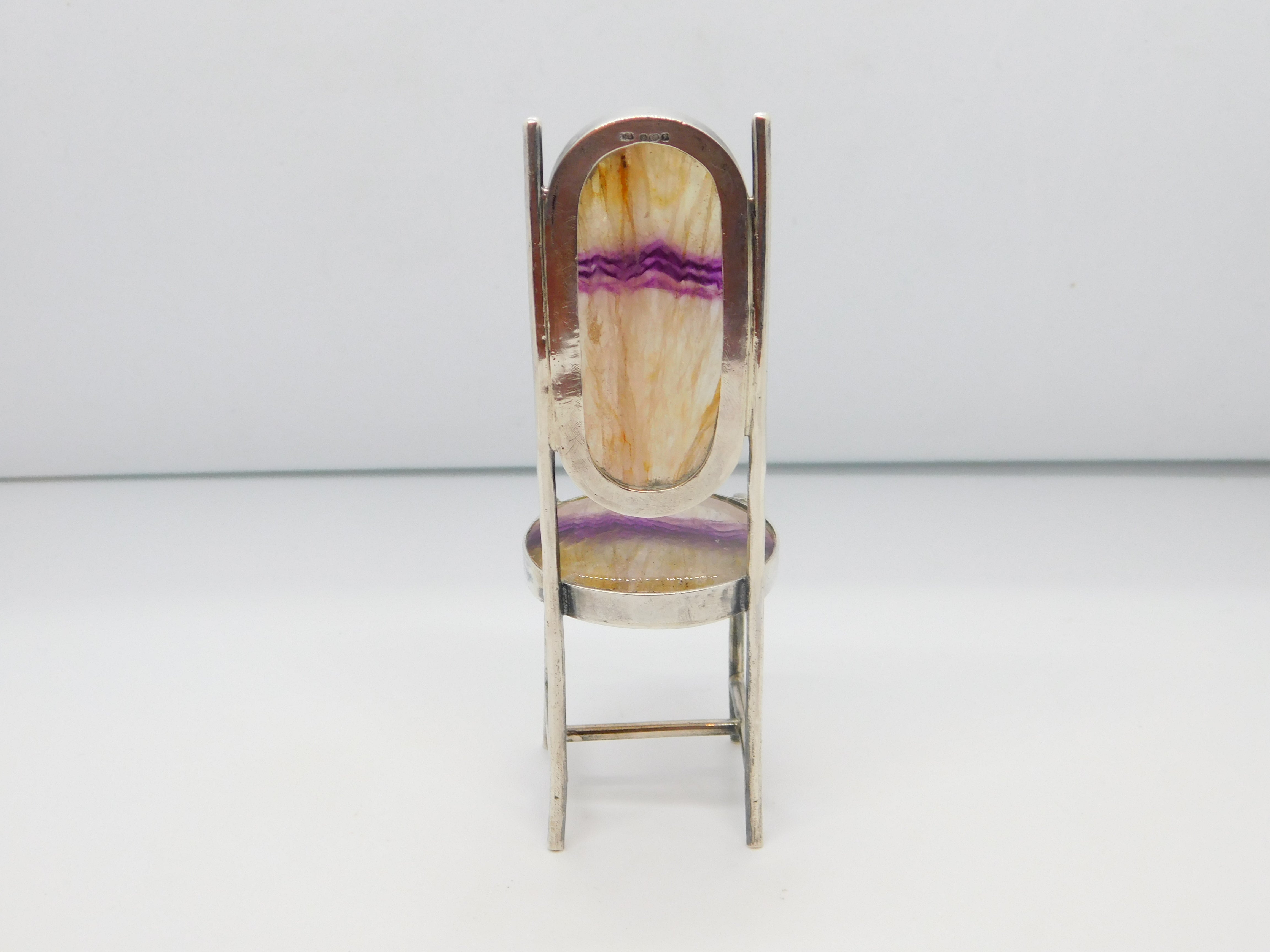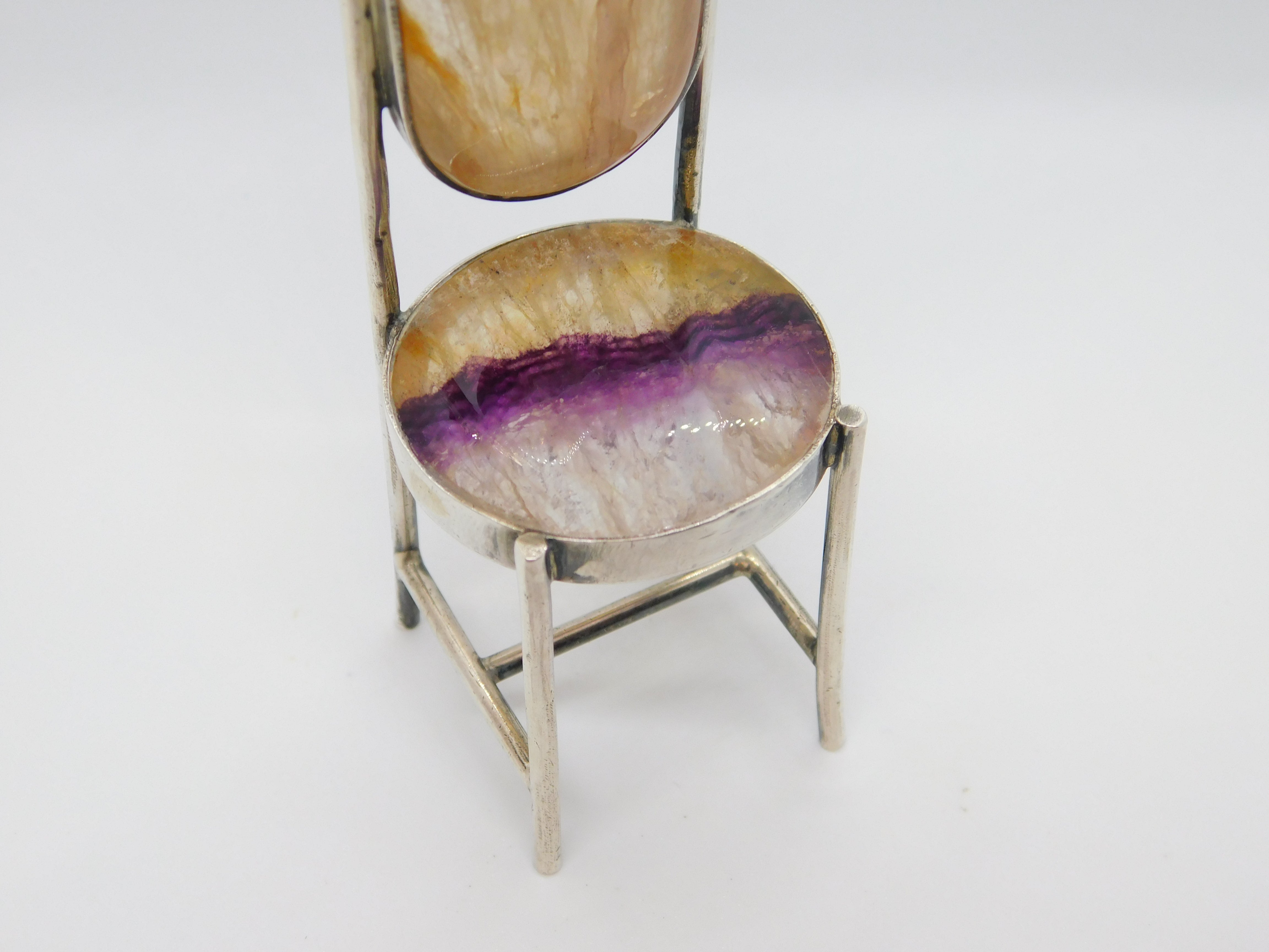 Sterling Silver & Derbyshire Blue John Dining Chair Ornament 1989 Sheffield