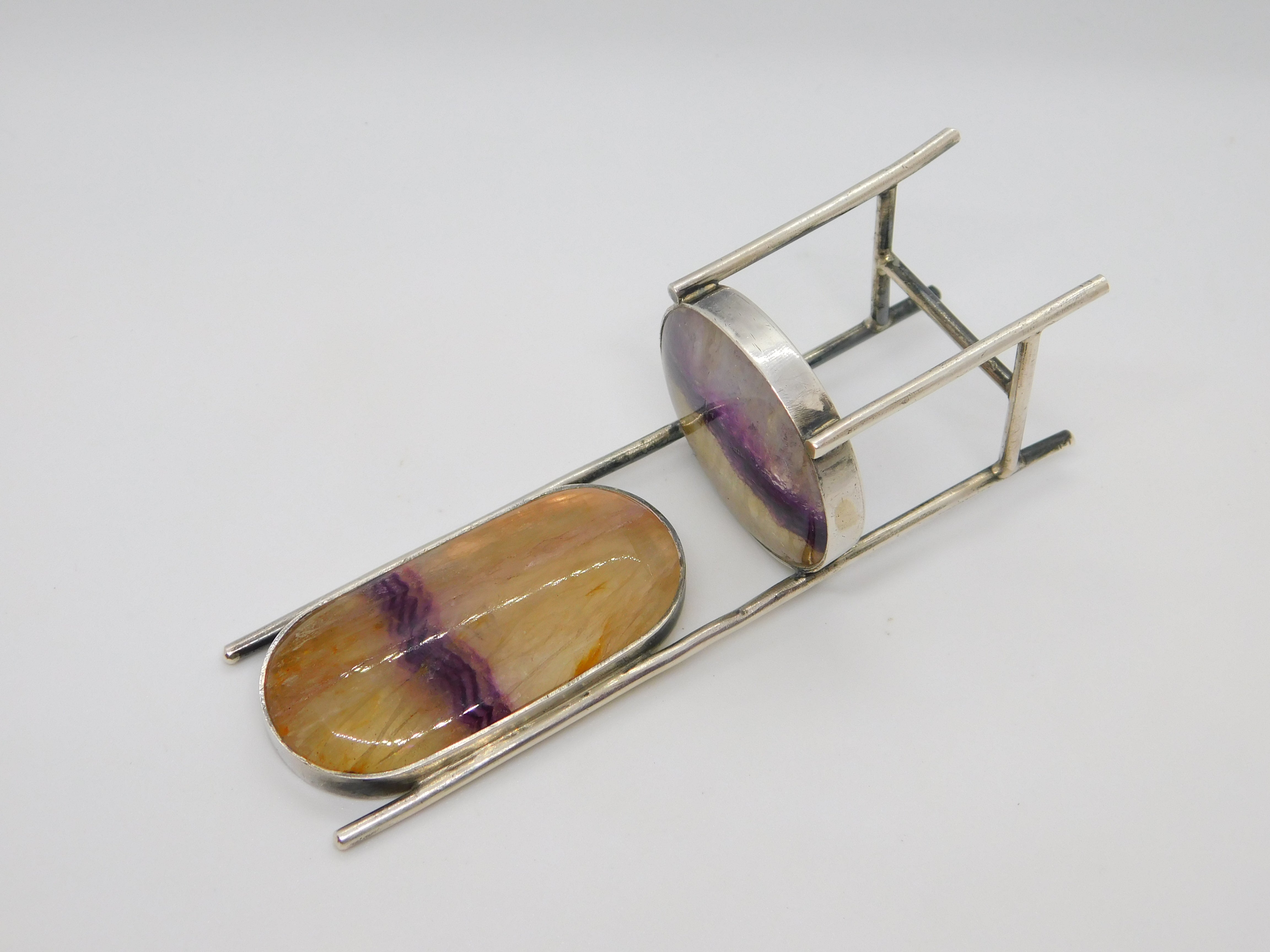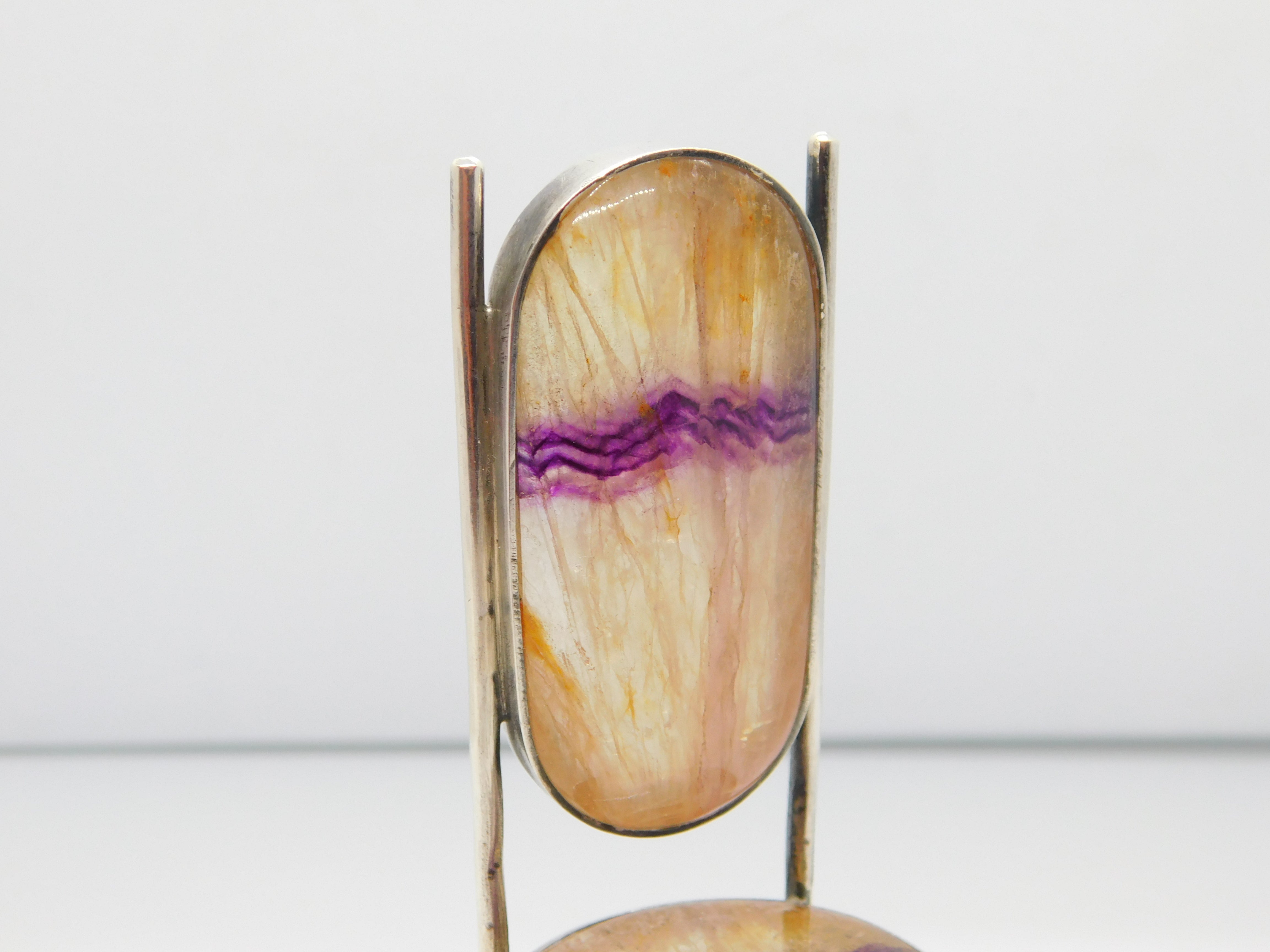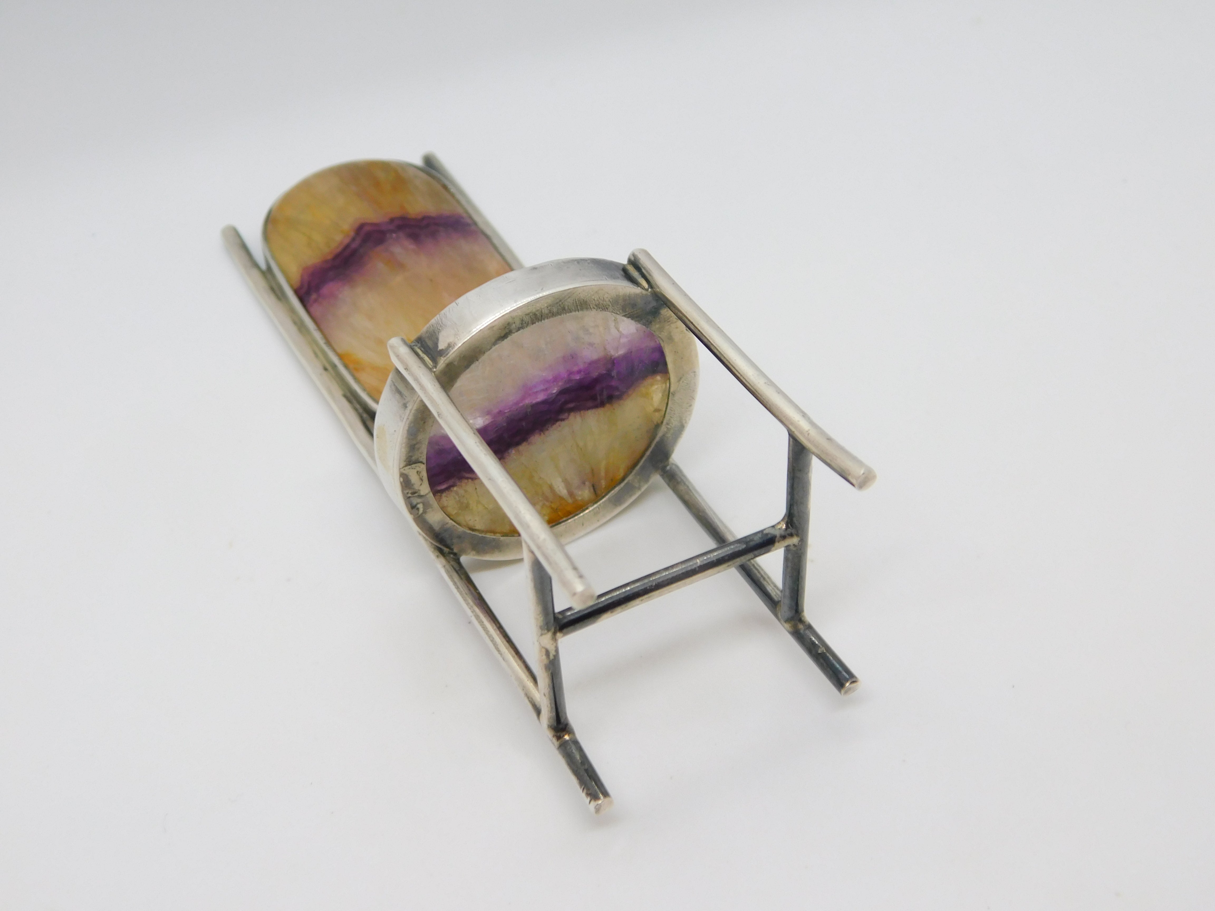 Sterling Silver & Derbyshire Blue John Dining Chair Ornament 1989 Sheffield