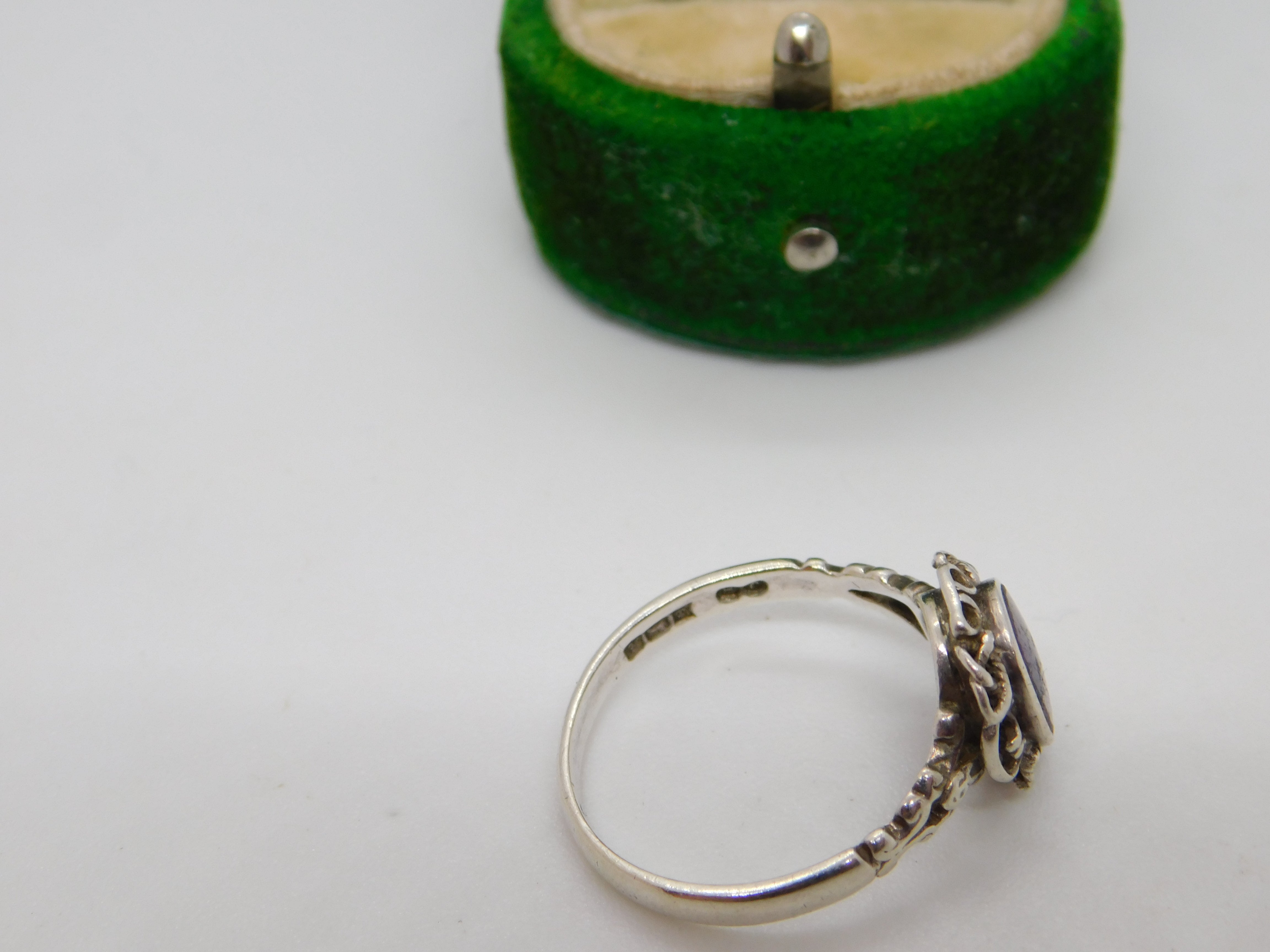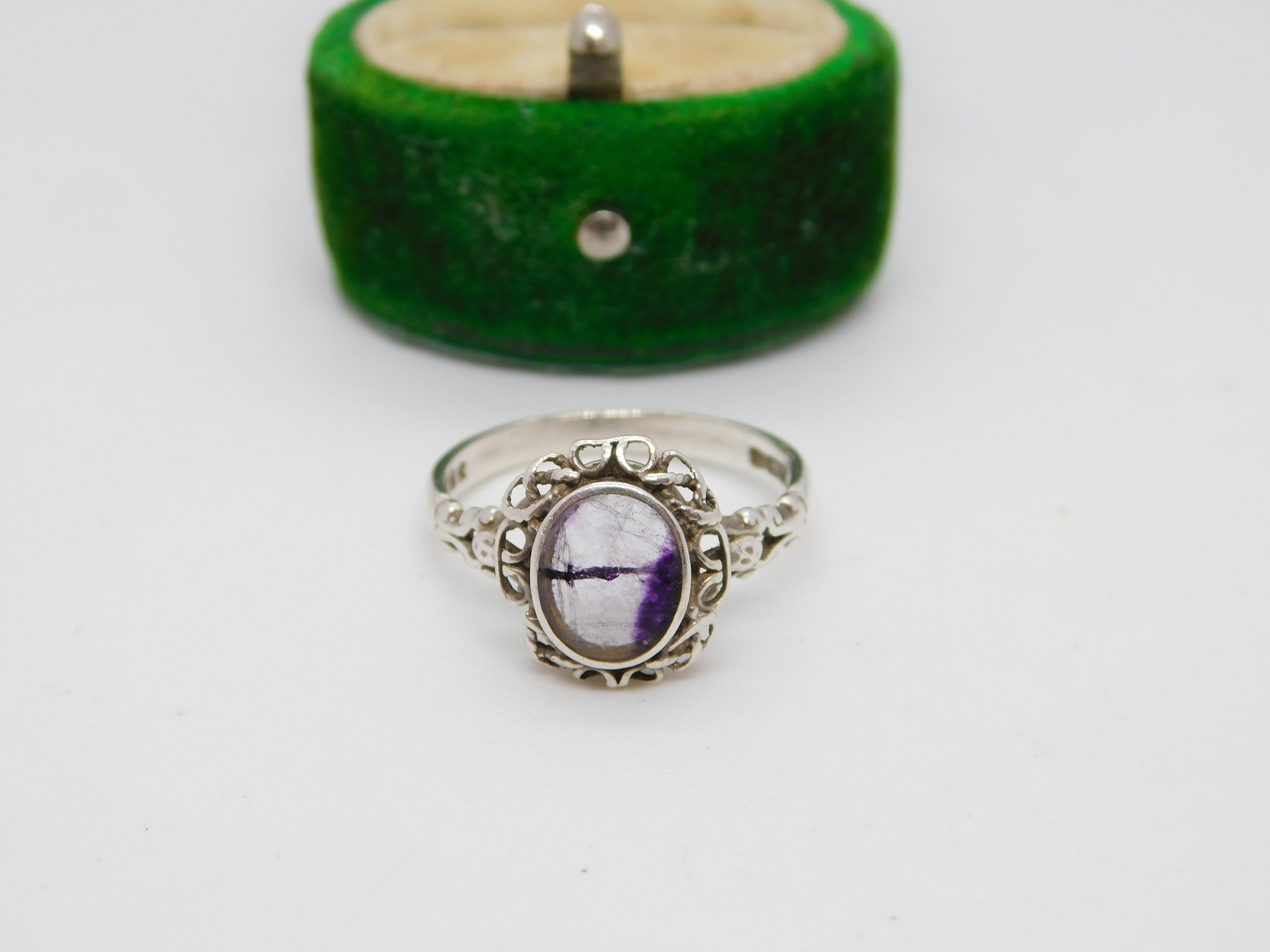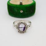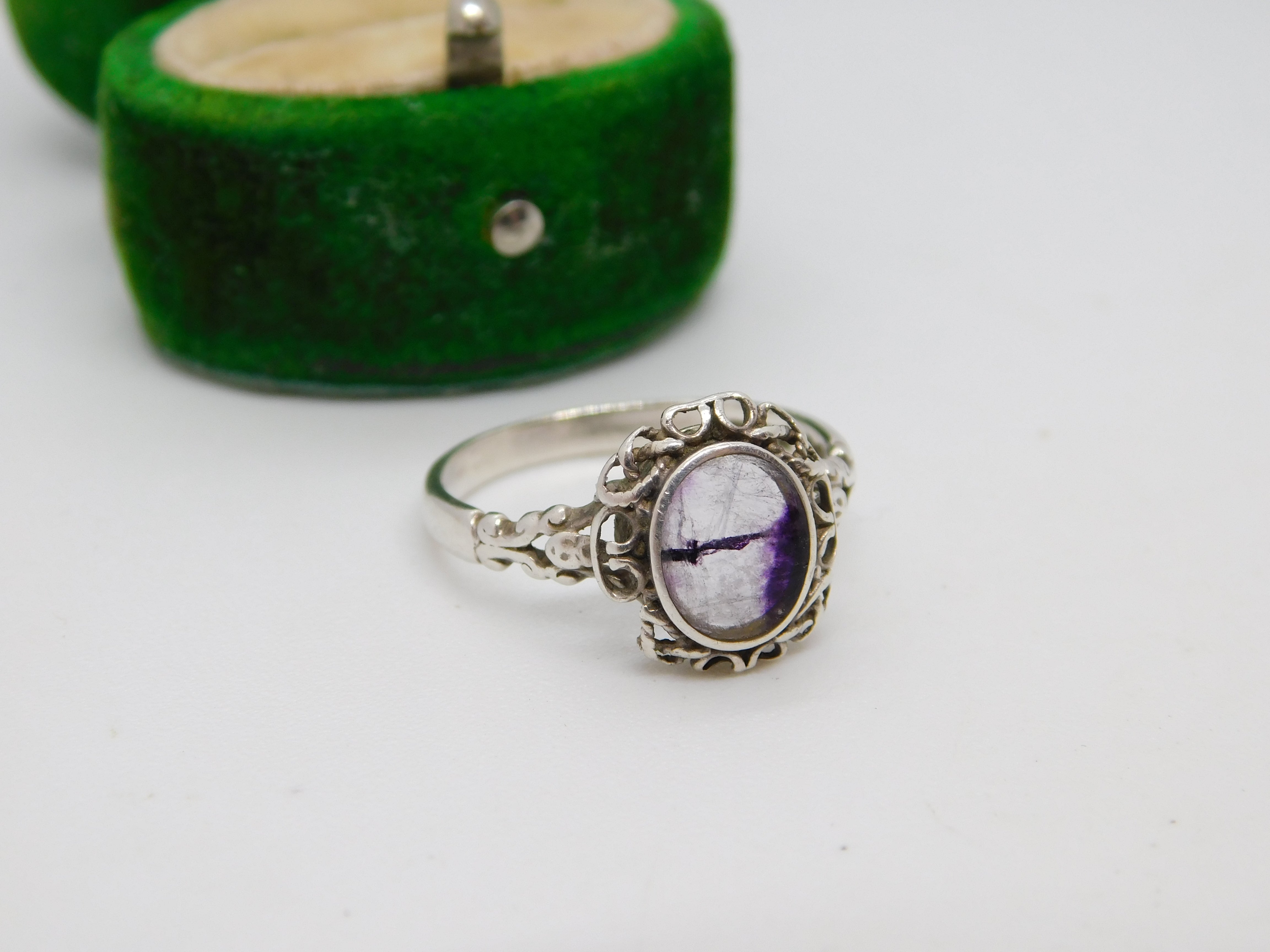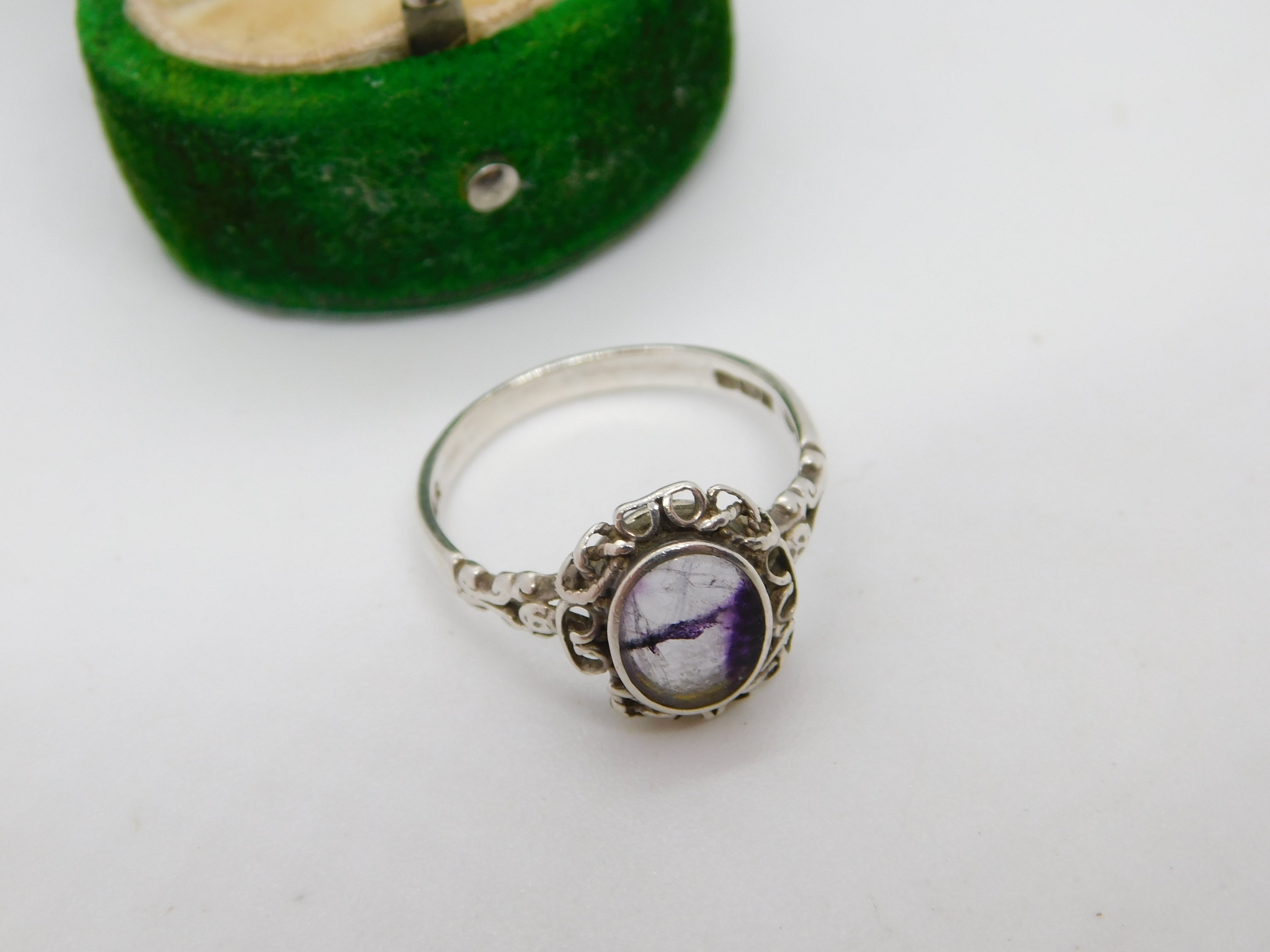 Sterling Silver & Derbyshire Blue John Floral Dress Ring 1975 Birmingham