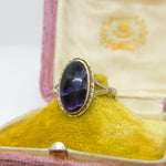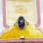 Sterling Silver & Derbyshire Blue John Set Signet Ring 1978 Birmingham Vintage