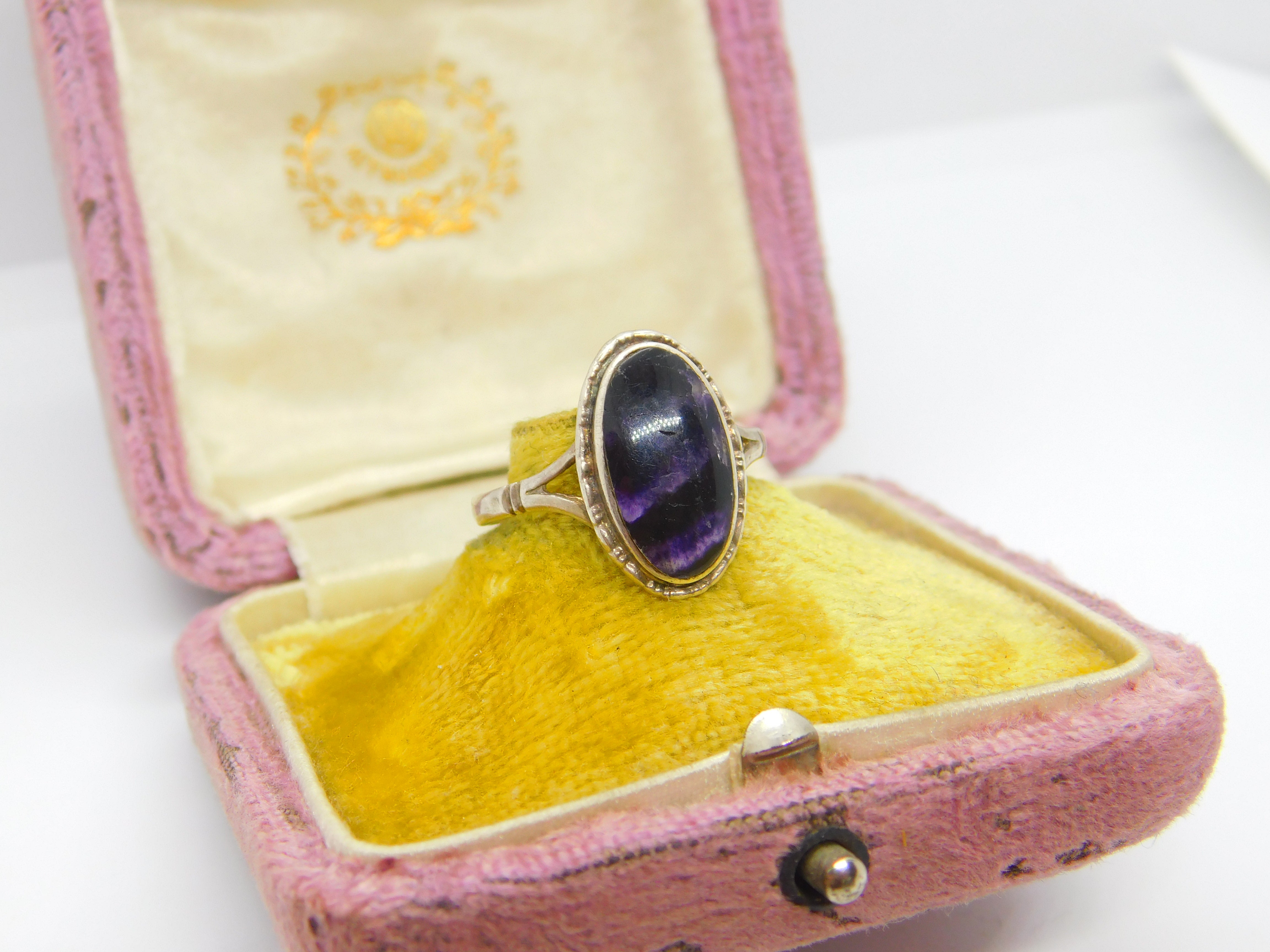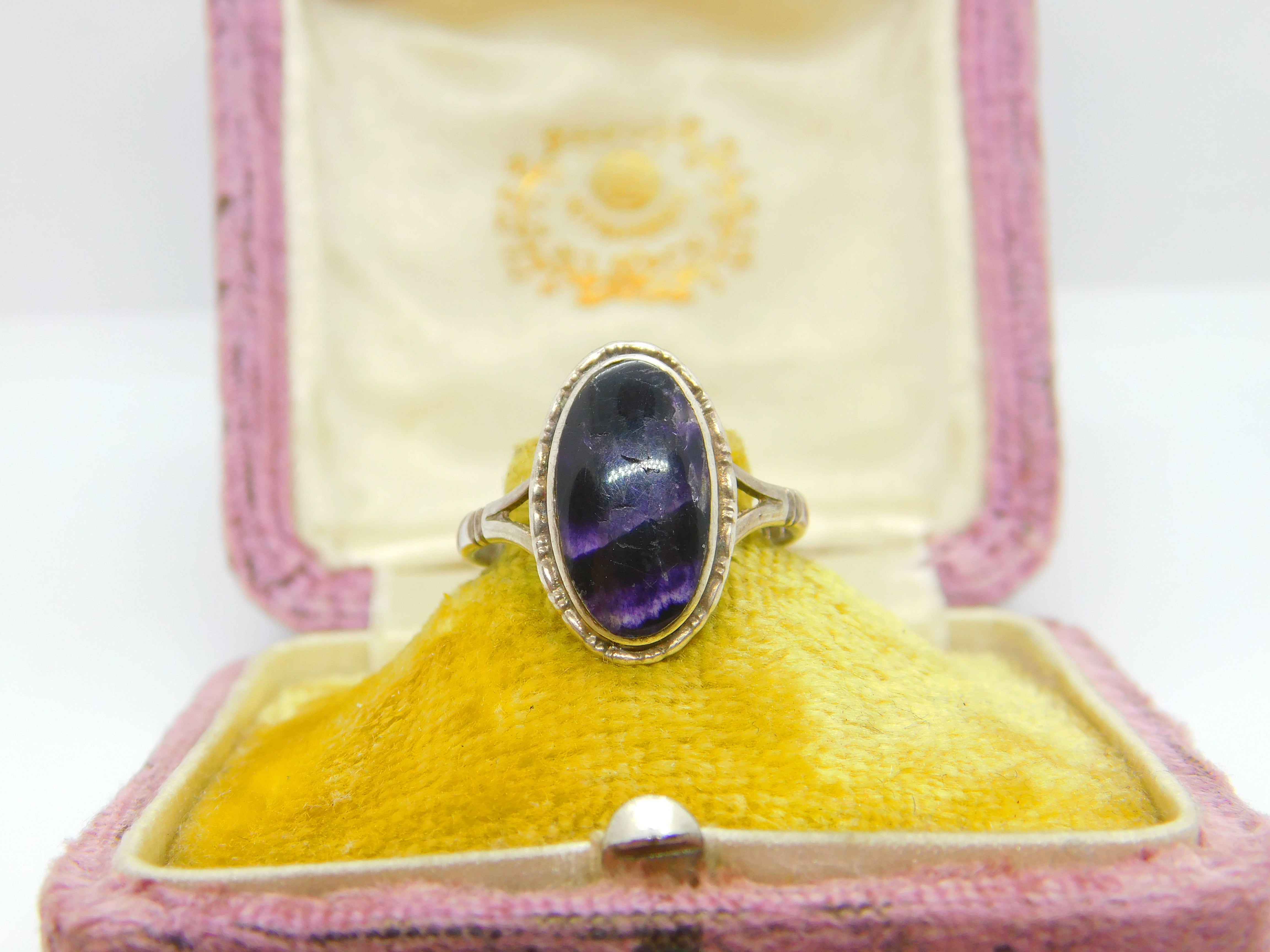 Details: A fantastic and wonderfully designed vintage sterling silver signet ring set with lovely Derbyshire Blue John stone hallmarked Birmingham 1978. This is a wonderful item that would make a perfect gift or addition to any collection. The BOX pictured is for PRESENTATION ONLY and is NOT included in the listings but used to frame the pictures unless specifically stated otherwise.