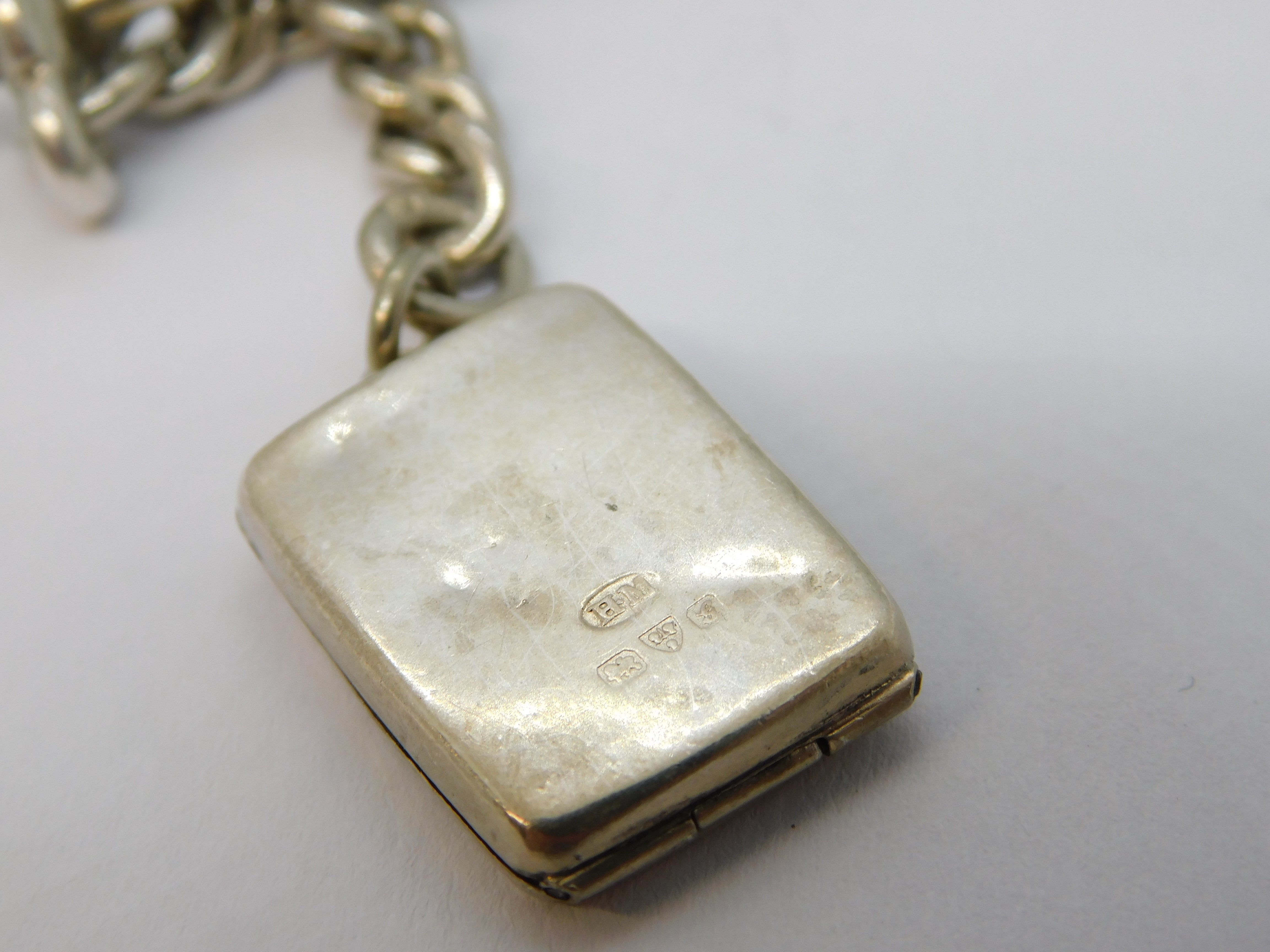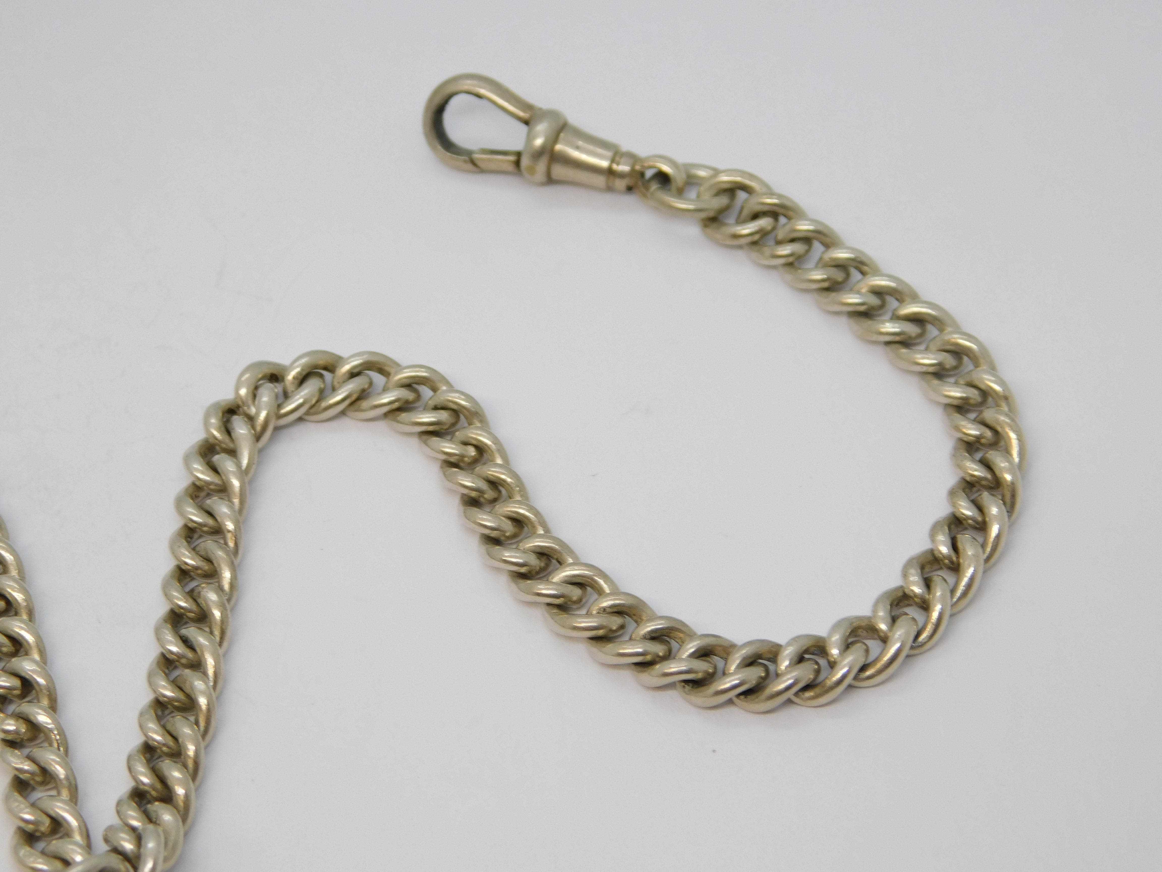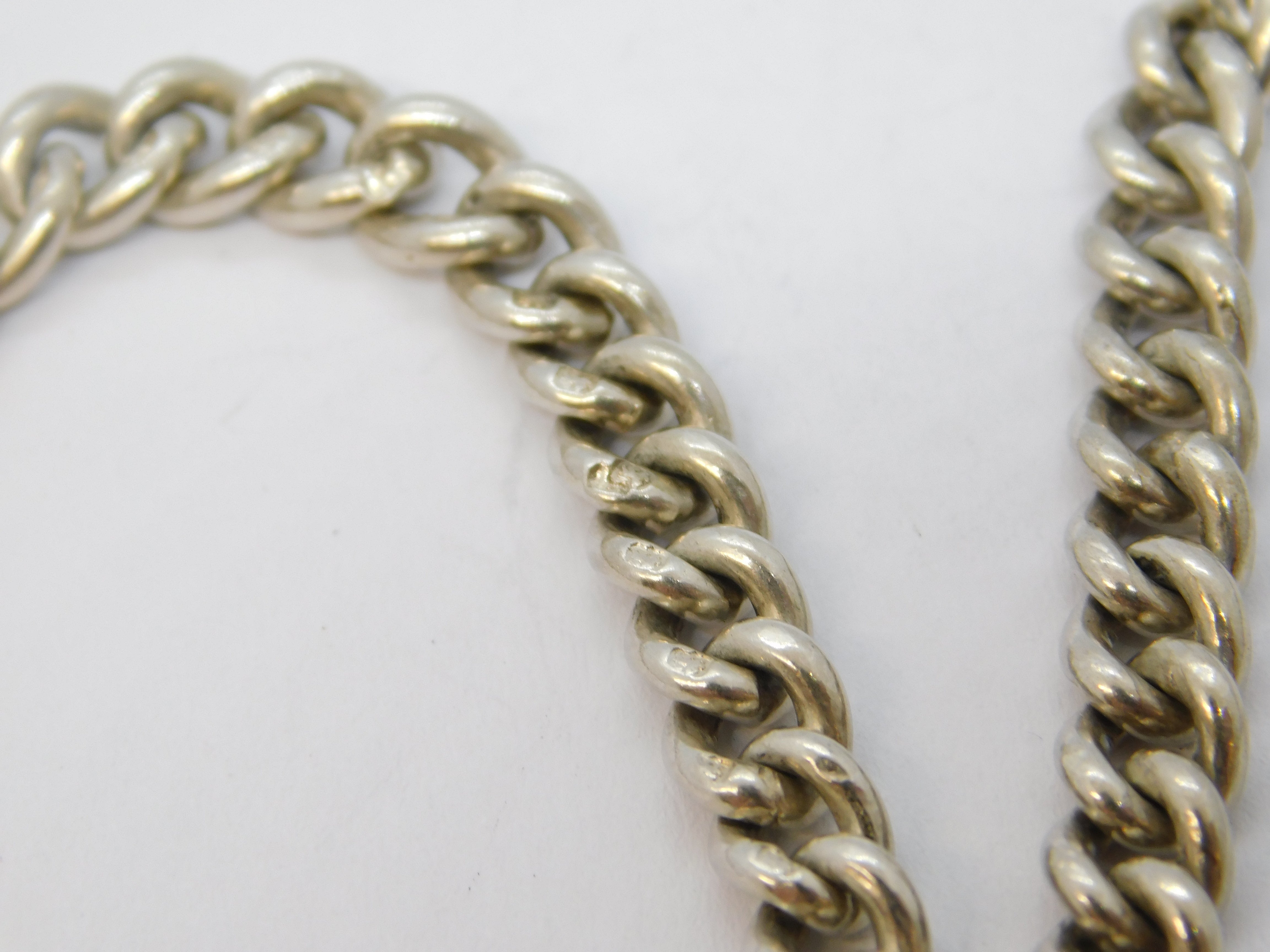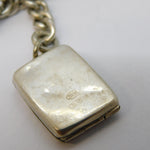 Details: A fantastic and wonderfully designed antique art deco sterling silver curb link double albert watch chain secured with two dog clips, t-bar and locket fob hallmarked Birmingham 1919 to the t-bar, hallmarked to every link of the chain and dog clips, the locket is dented please note. This is a wonderful item that would make a perfect gift or addition to any collection. We are more than happy to provide XRF reports for items upon request.