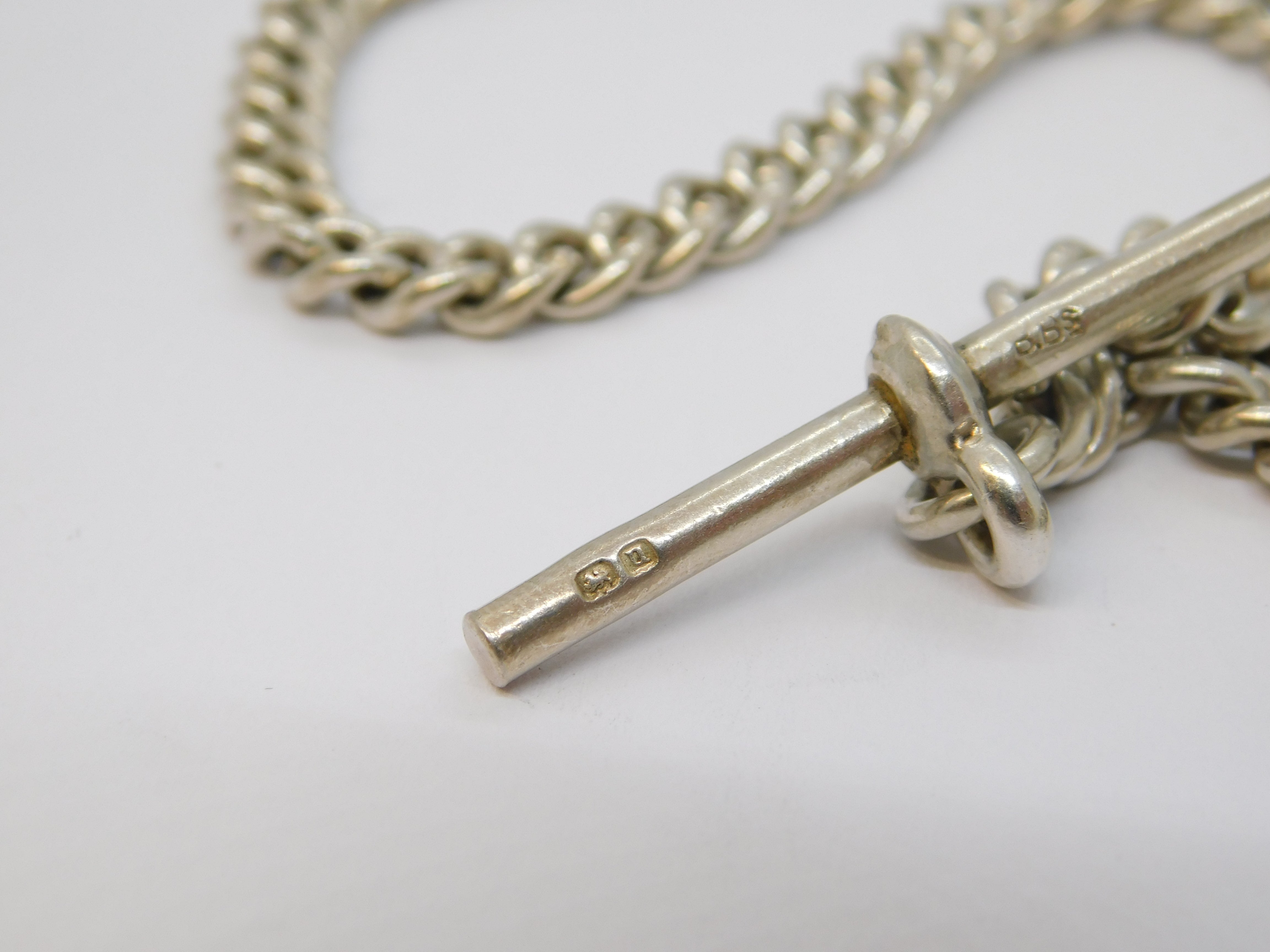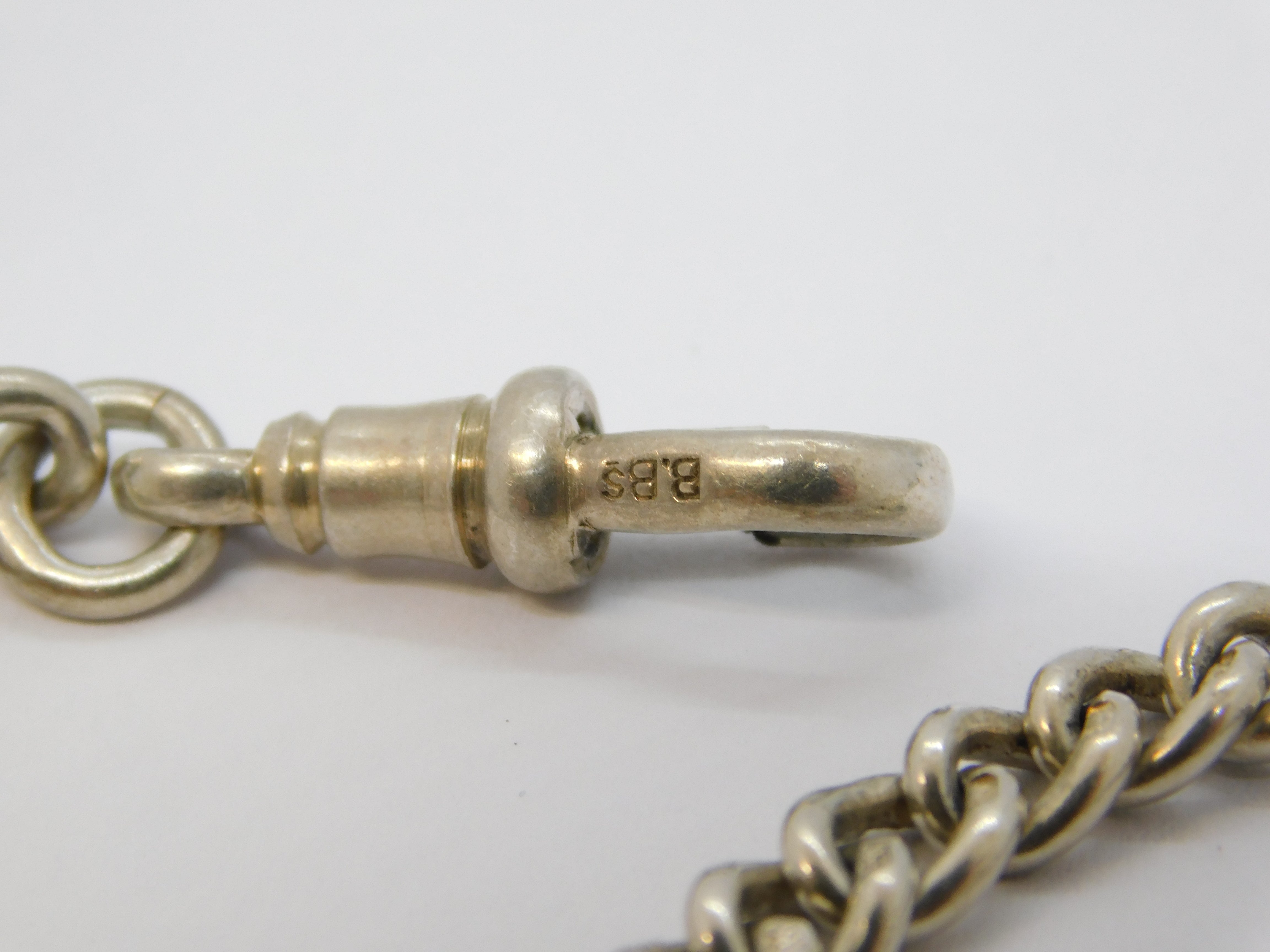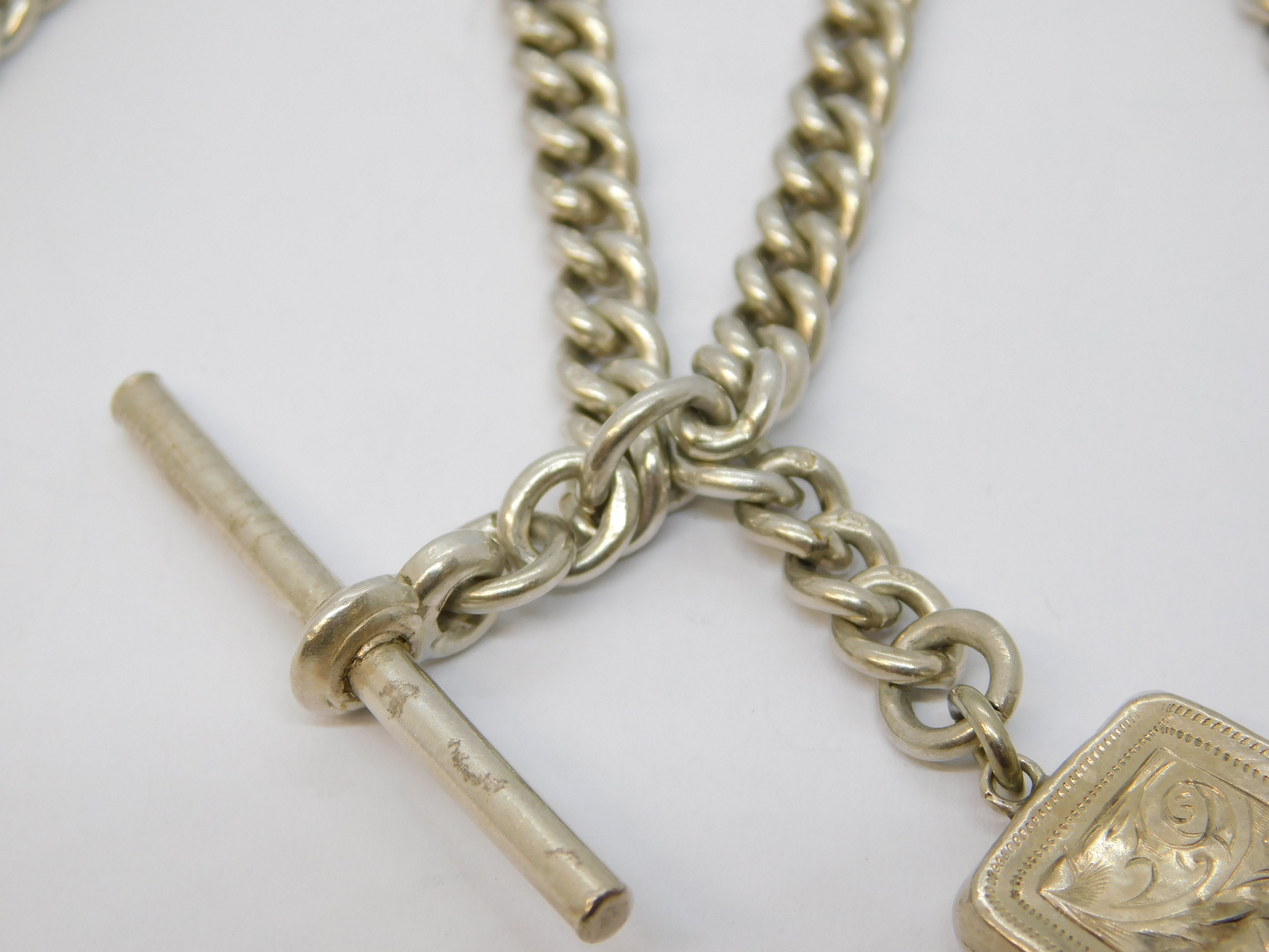 Sterling Silver Double Albert Watch Chain & Fobs Antique 1919 Birmingham
