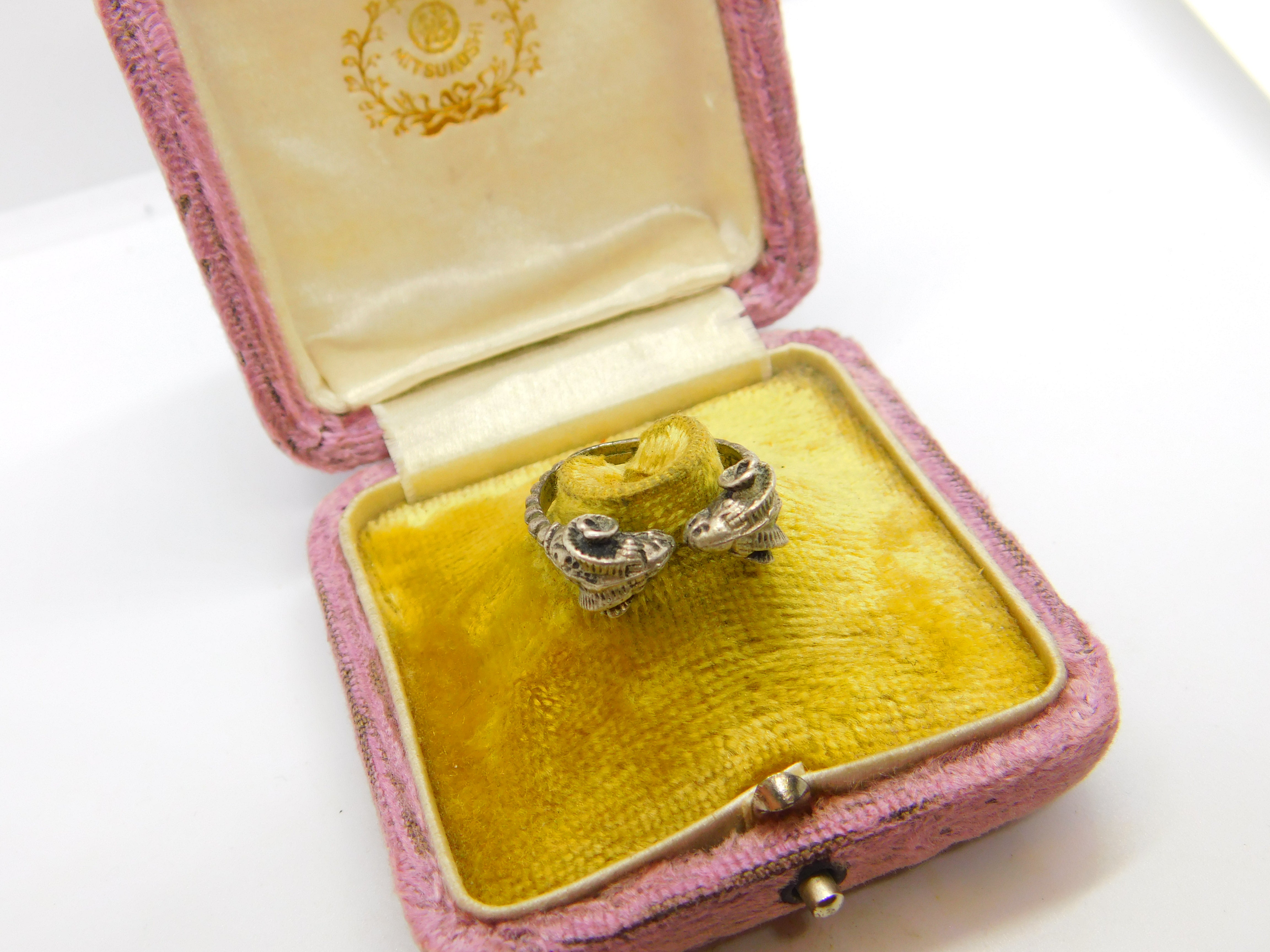 Details: A fantastic and wonderfully designed antique art deco 900 grade silver double aries the ram head statement ring hallmarked 900 to the interior band c1940. This is a wonderful item that would make a perfect gift or addition to any collection. The BOX pictured is for PRESENTATION ONLY and is NOT included in the listings but used to frame the pictures unless specifically stated otherwise.