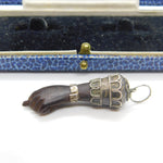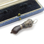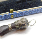 Sterling Silver & Ebony Wood Figa Hand Pendant Antique c1920 Art Deco