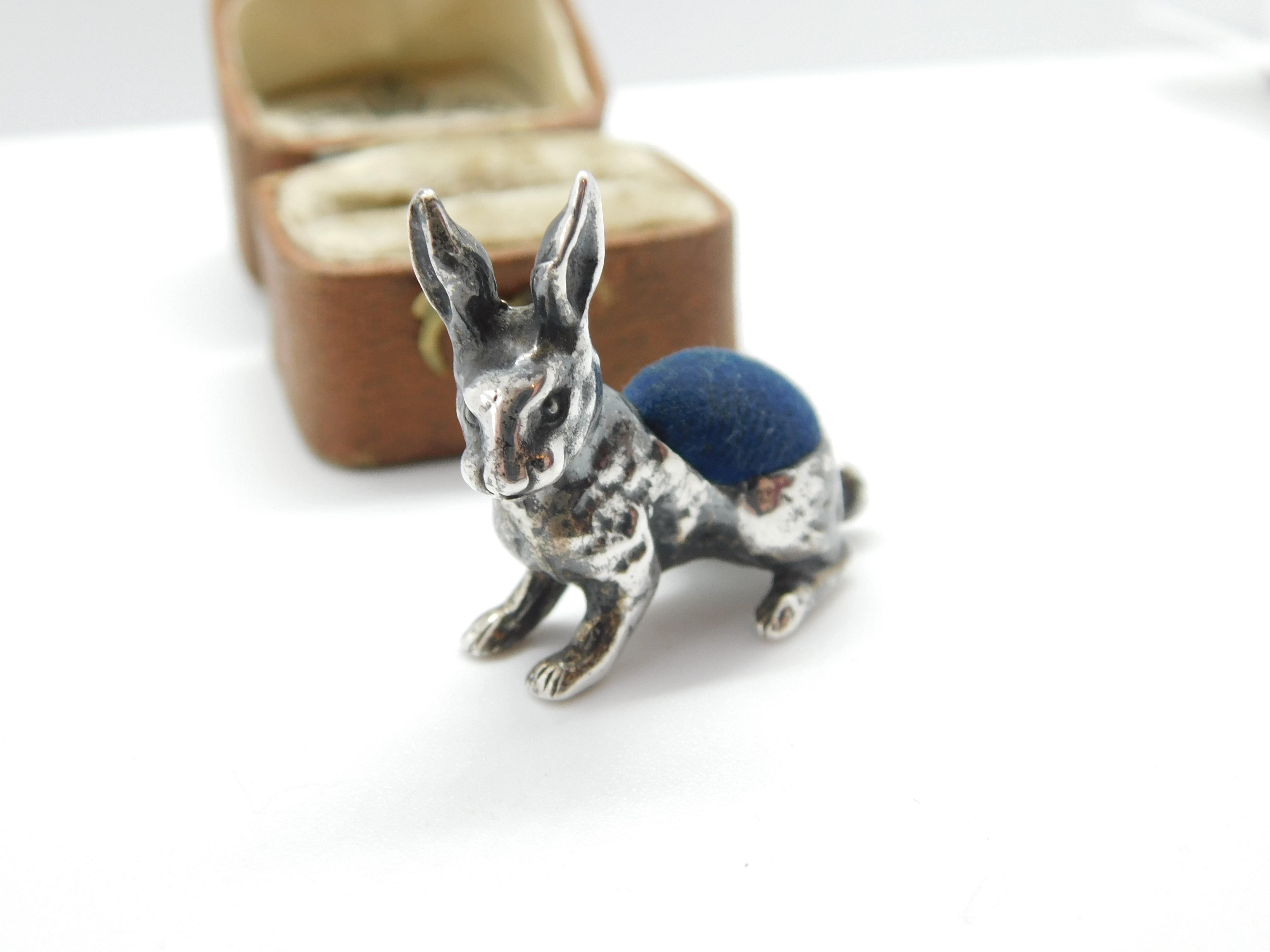 Sterling Silver Edwardian Style Bunny Rabbit Pin Cushion VIntage 1988 Birmingham