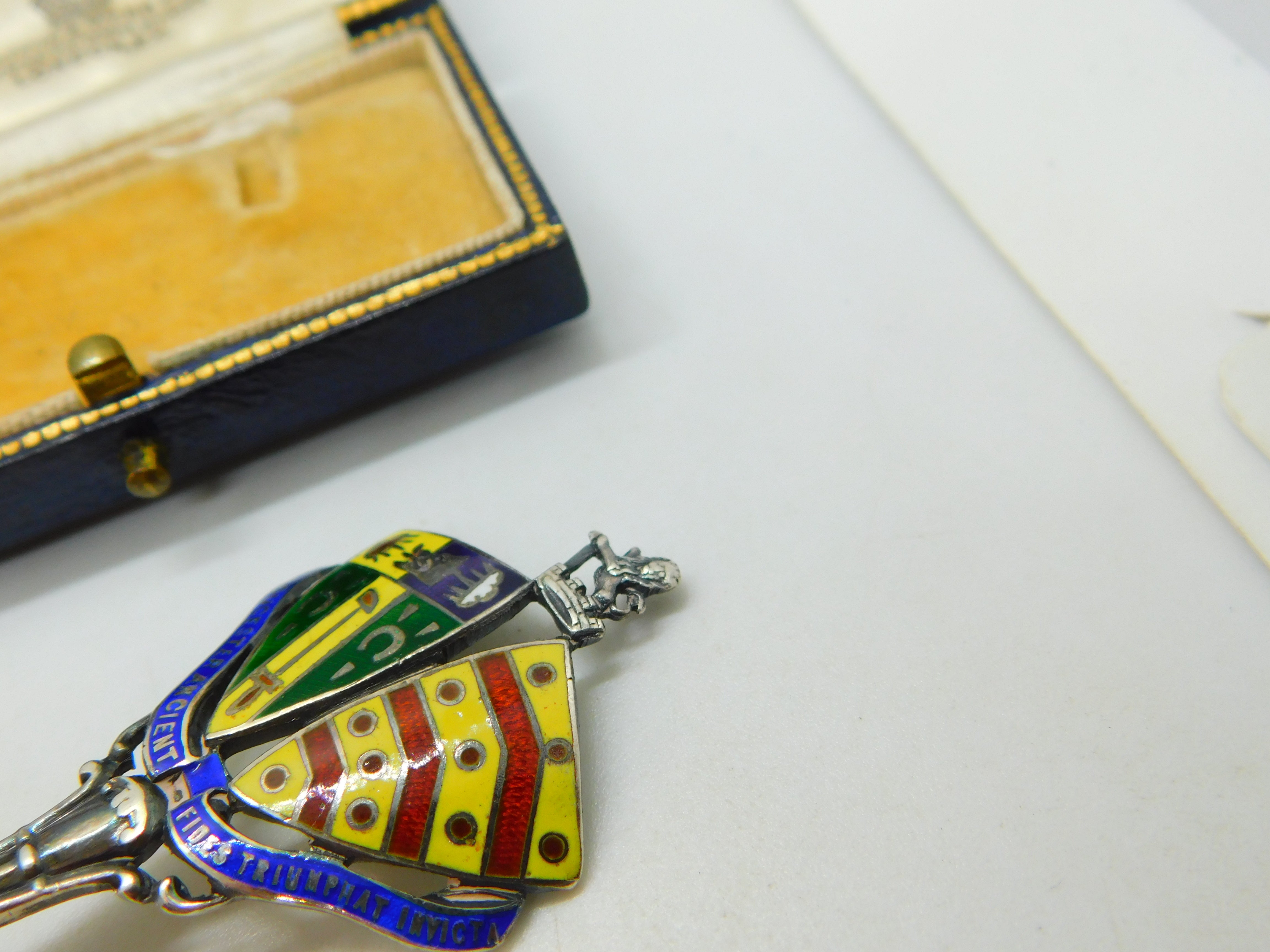 Sterling Silver & Enamel Gloucester Souvenir Spoon Antique 1912 Birmingham