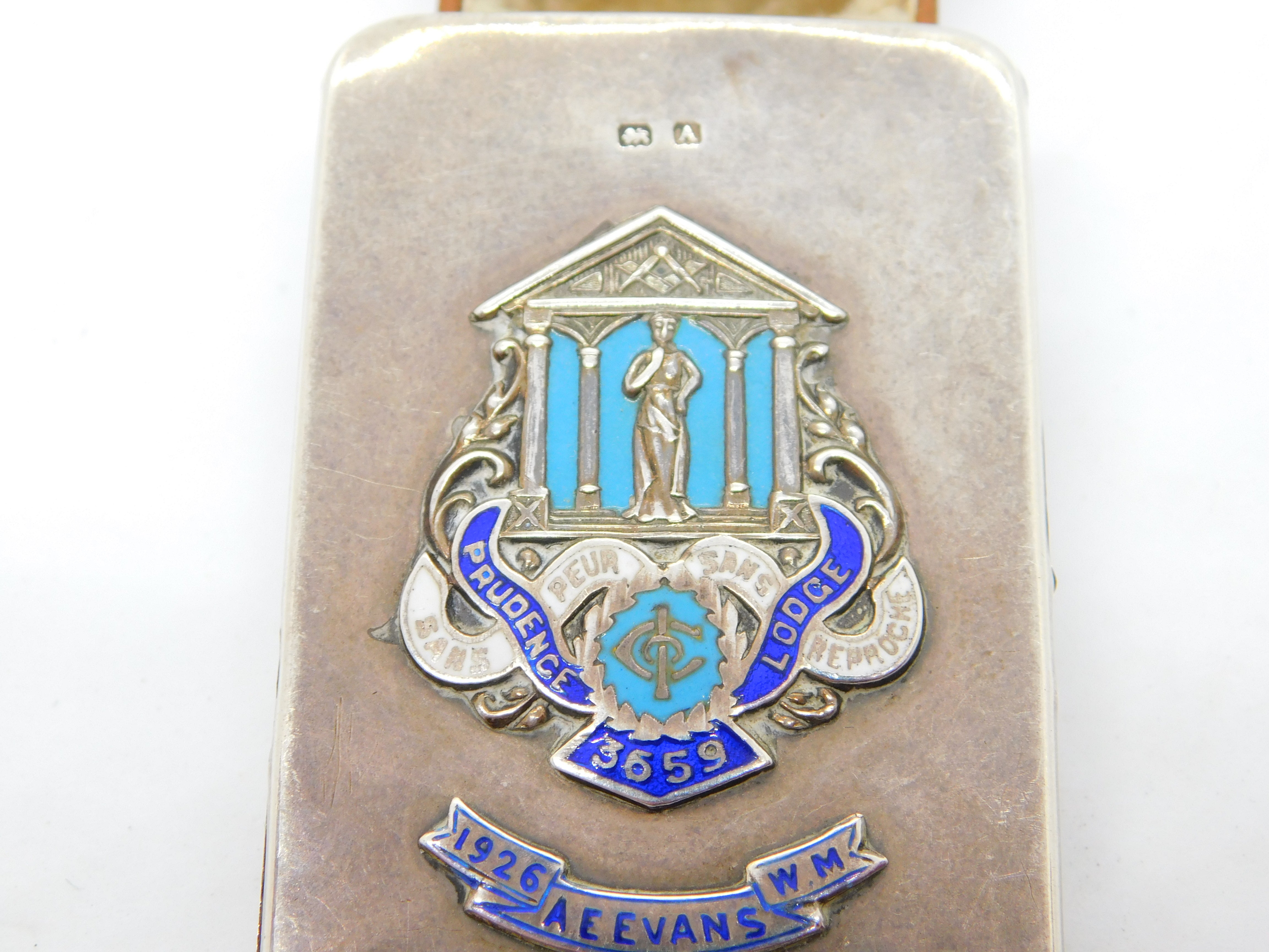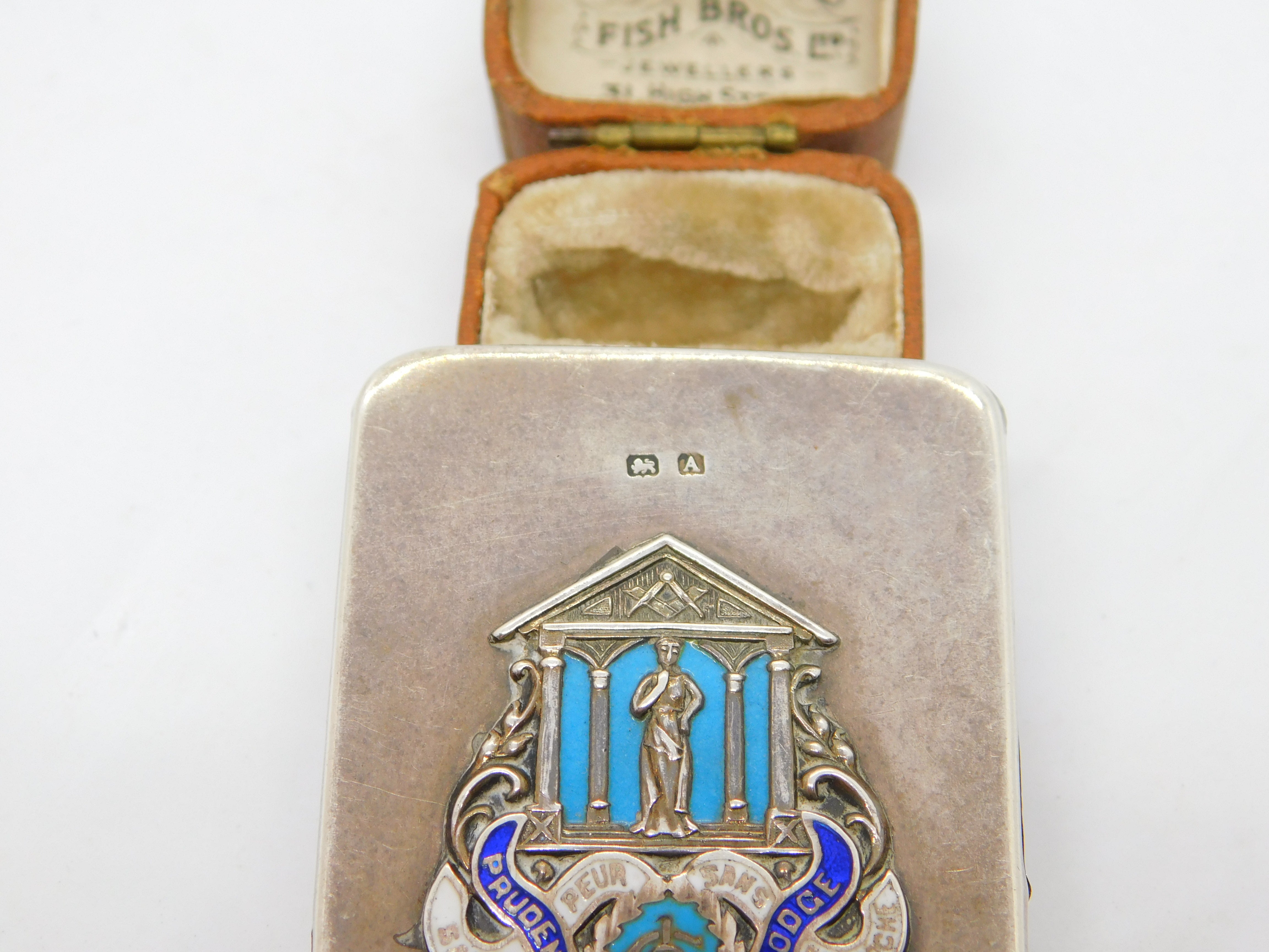 Sterling Silver Enamel Masonic Secret Double Sided Card Holder Case Antique 1925