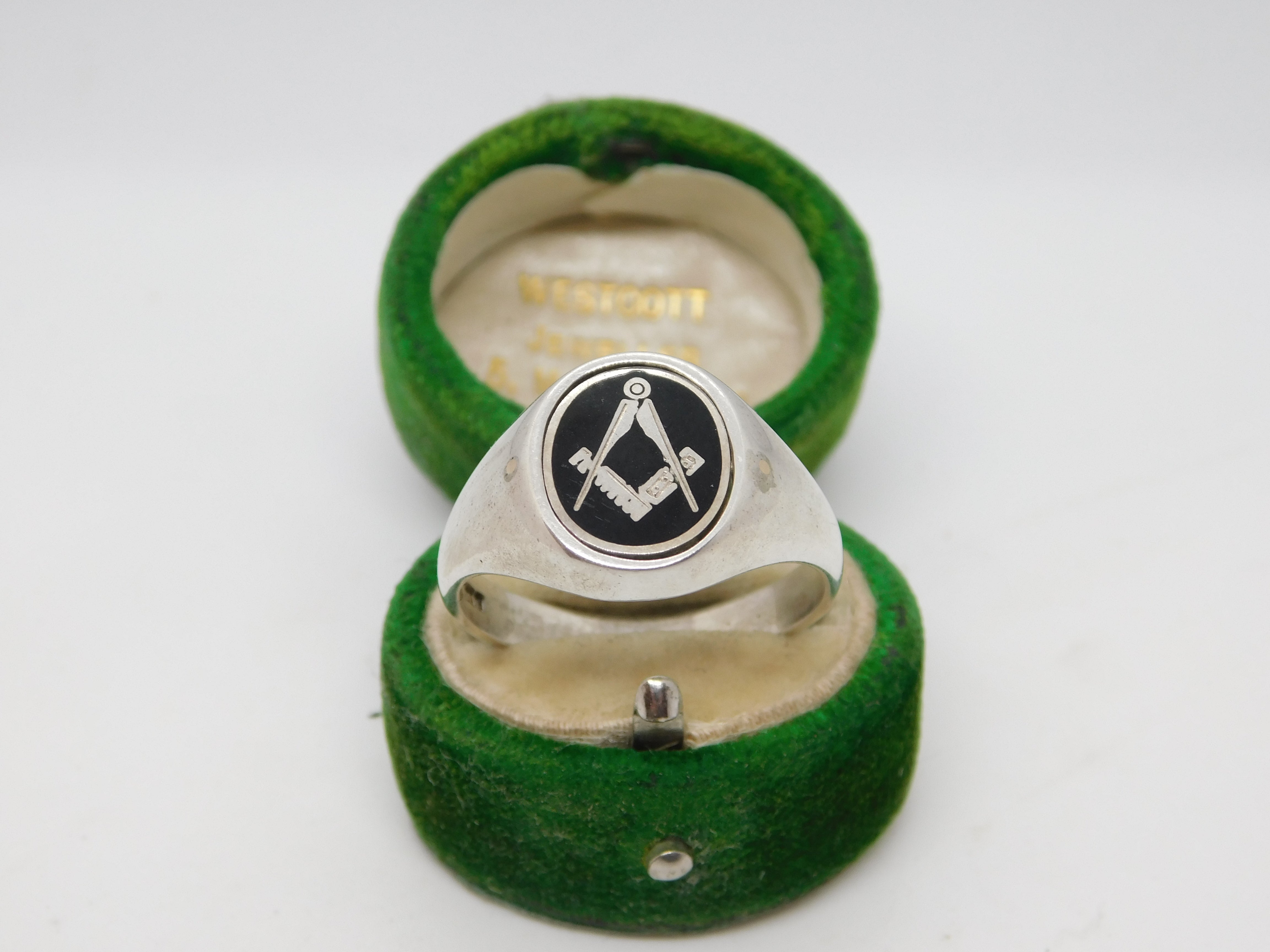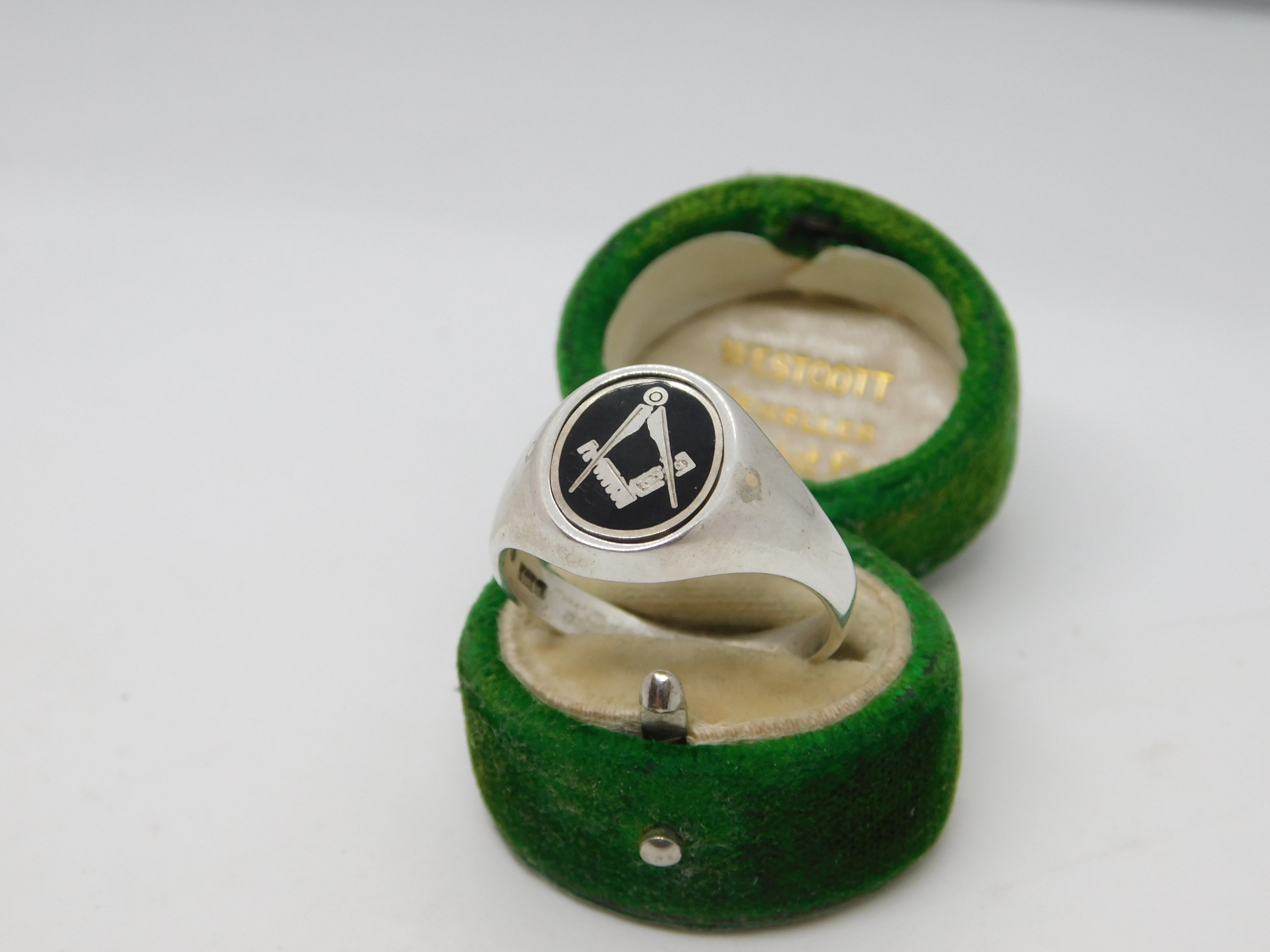 Details: A fantastic and wonderfully designed vintage sterling silver & black enamel masonic swivel spinner signet ring hallmarked Birmingham 1987 to the interior band. This is a wonderful item that would make a perfect gift or addition to any collection. The BOX pictured is for PRESENTATION ONLY and is NOT included in the listings but used to frame the pictures unless specifically stated otherwise.