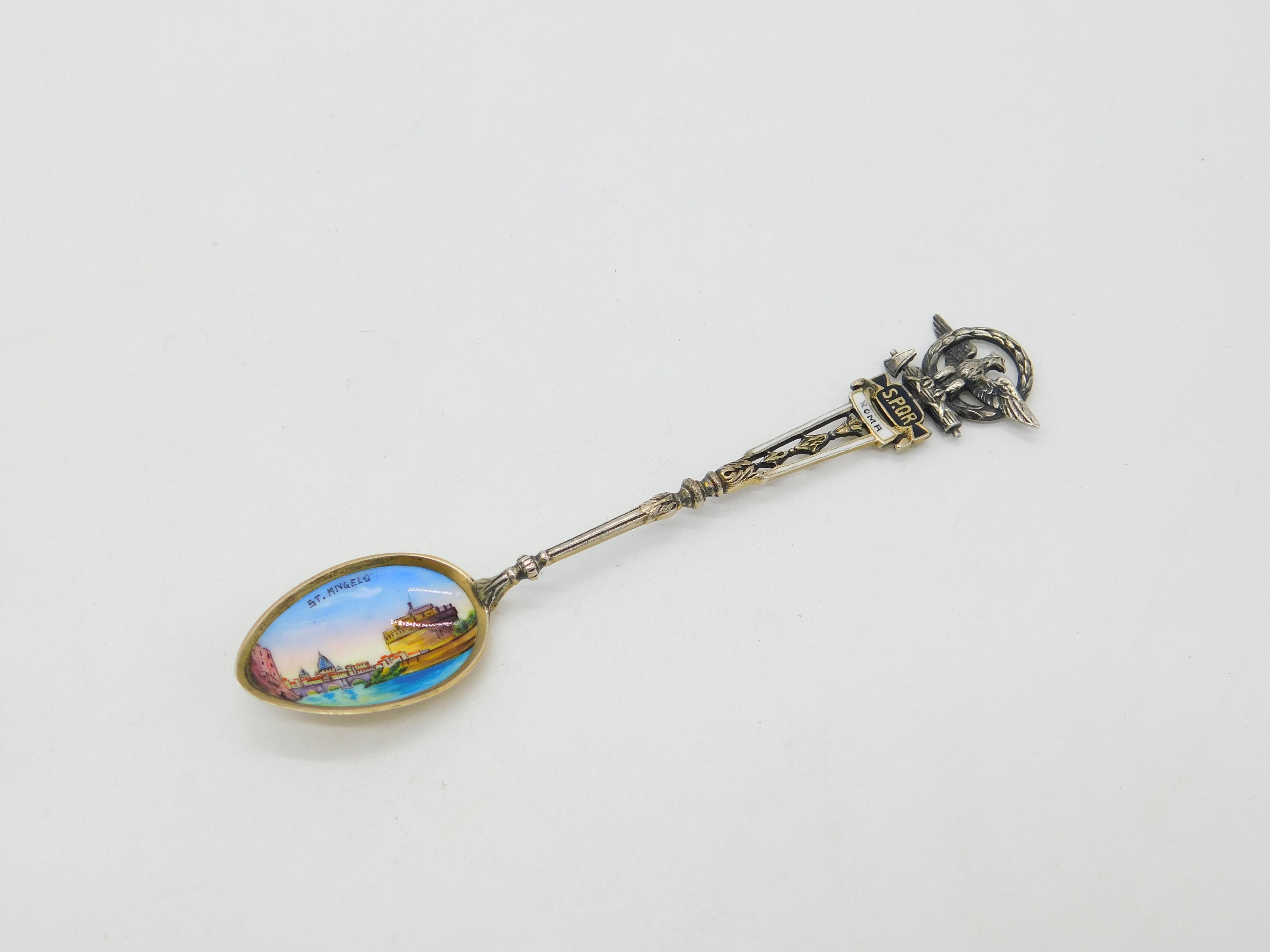 Sterling Silver Enamel St. Angelo Rome Souvenir Spoon Antique c1920