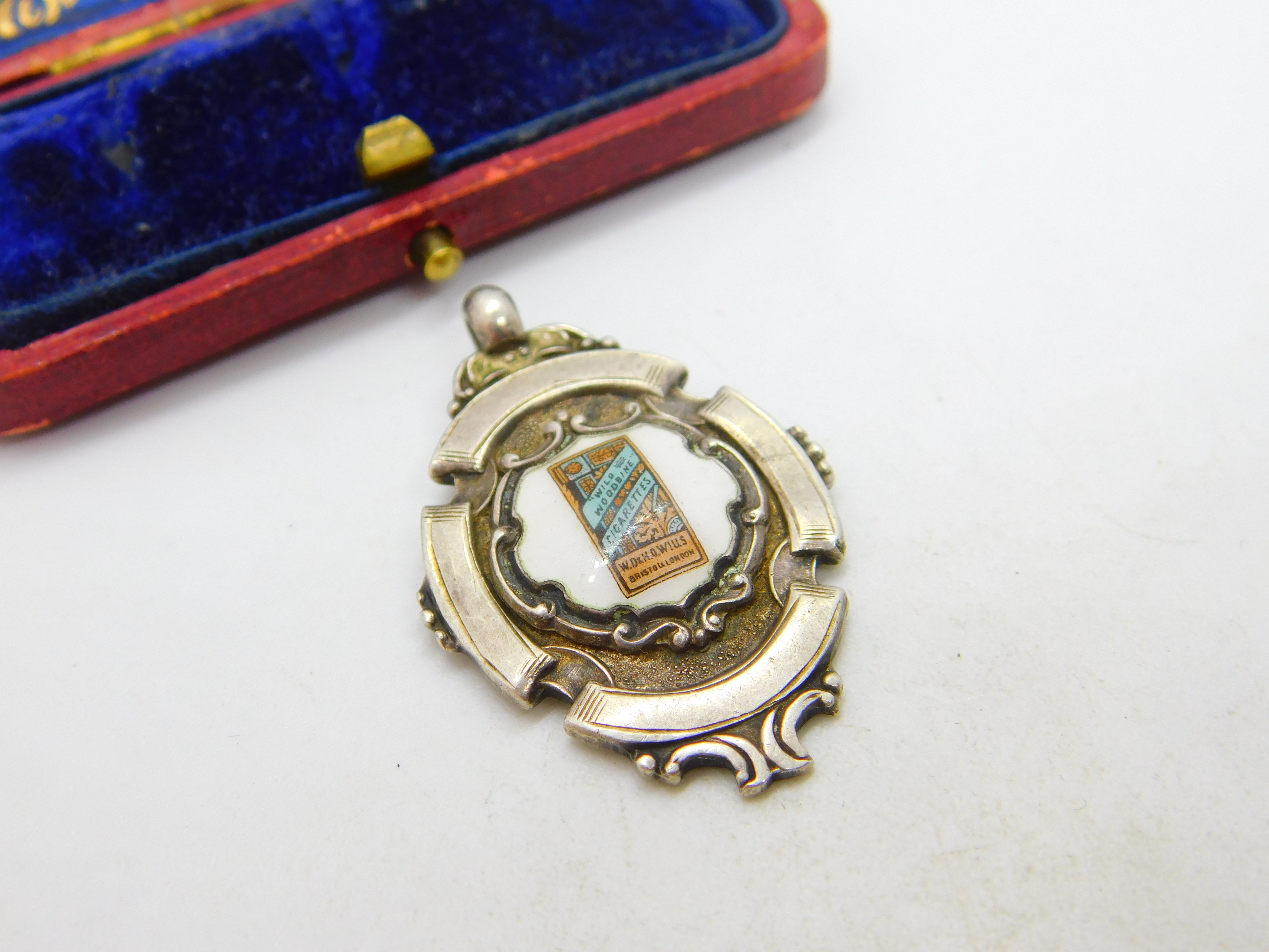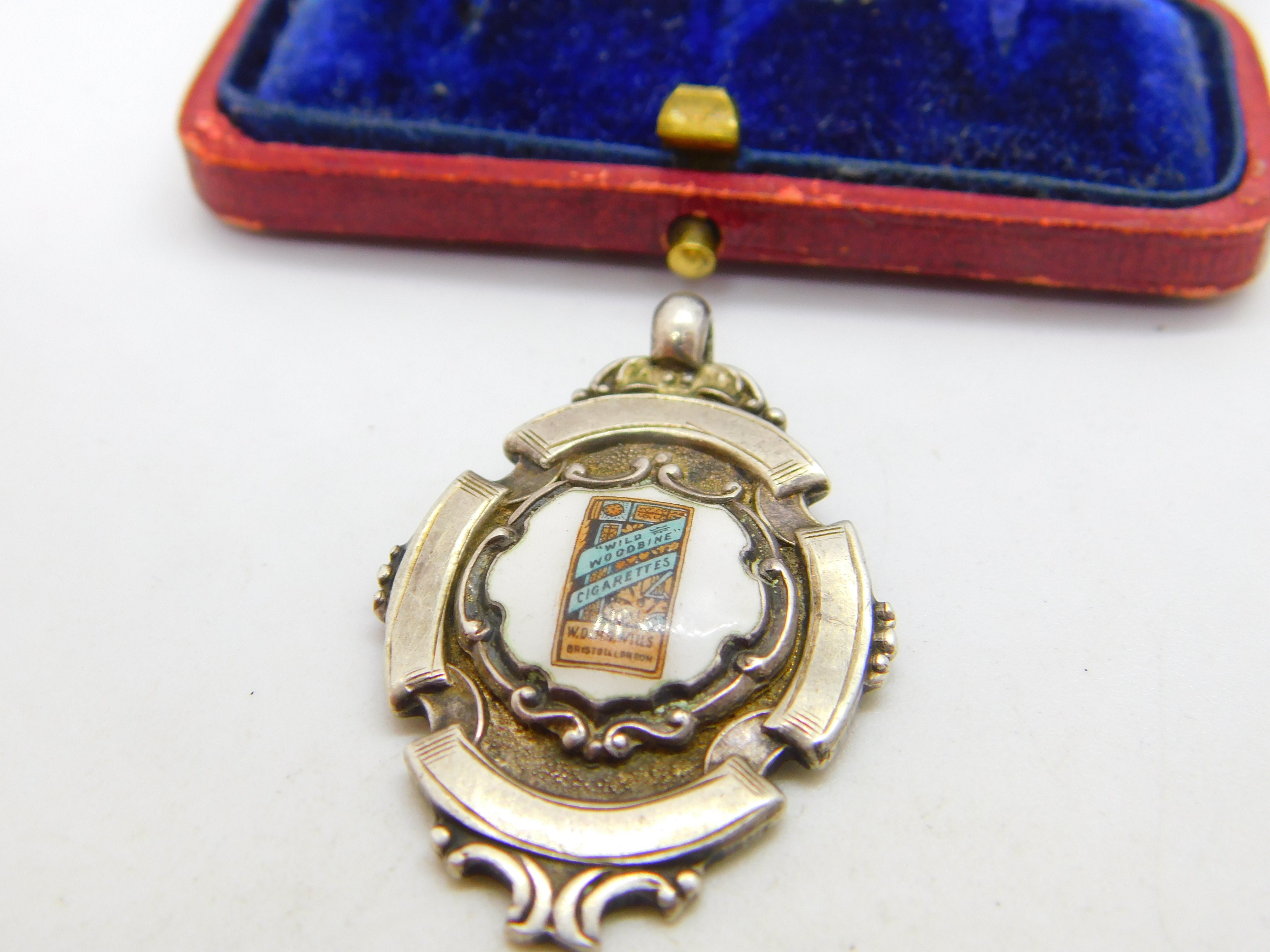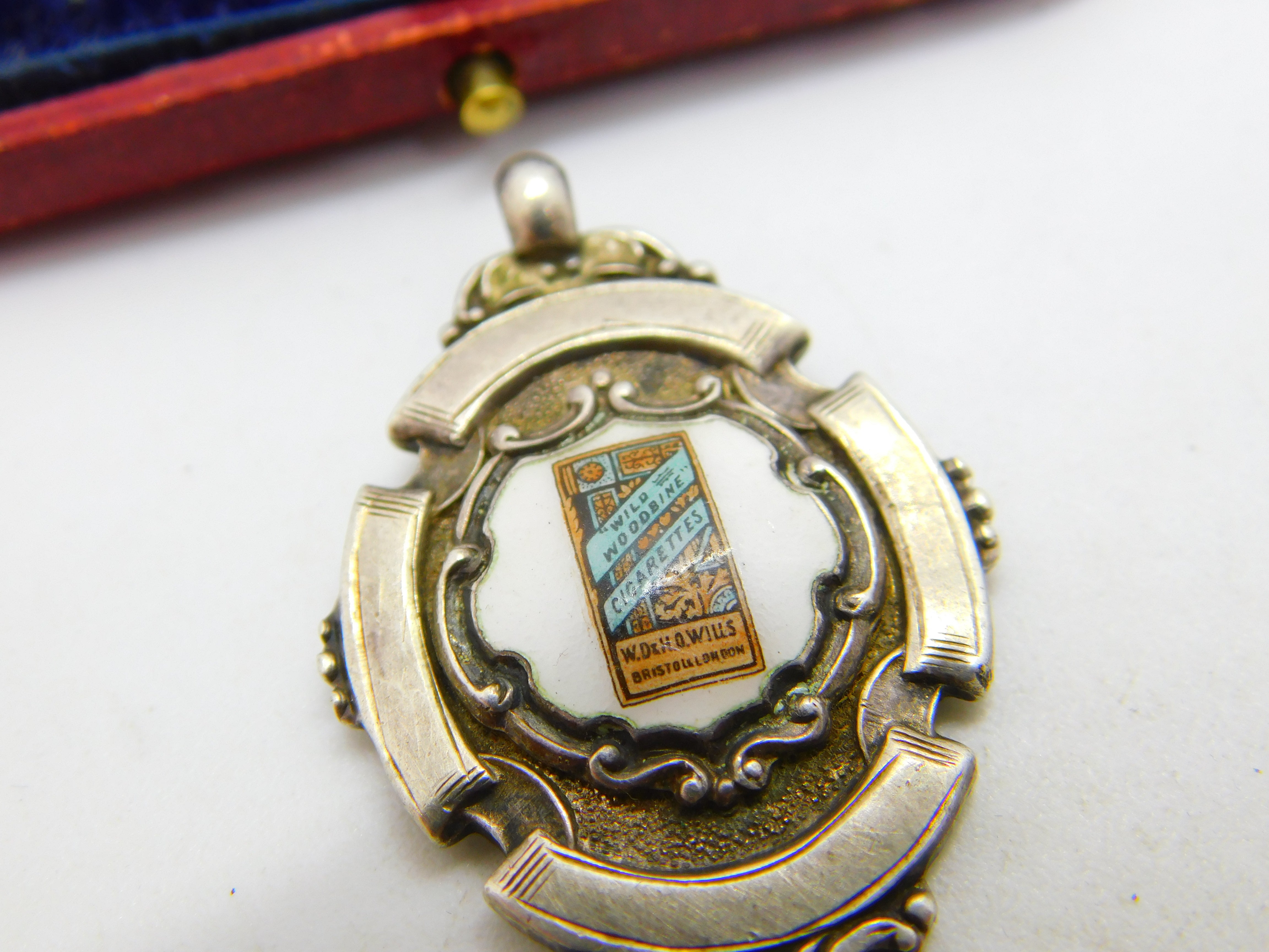 Sterling Silver Enamel Woodbine Cigarette Cup Fob Medal 1937 Chester Antique