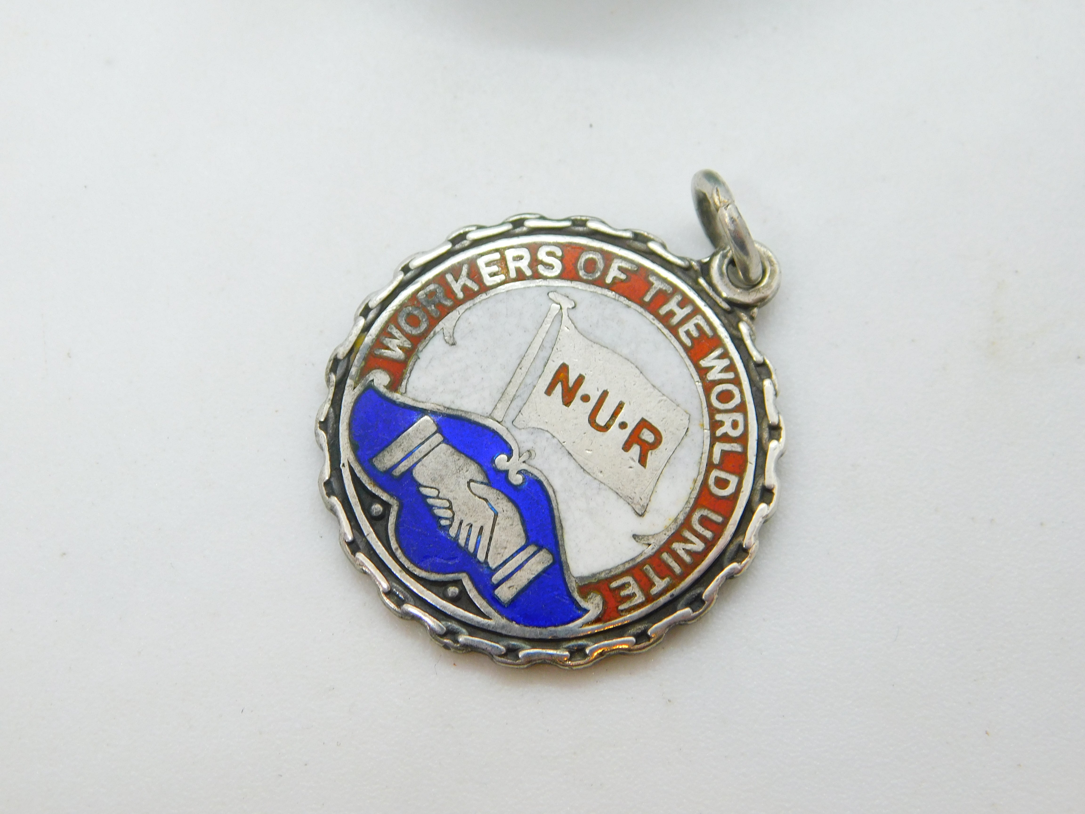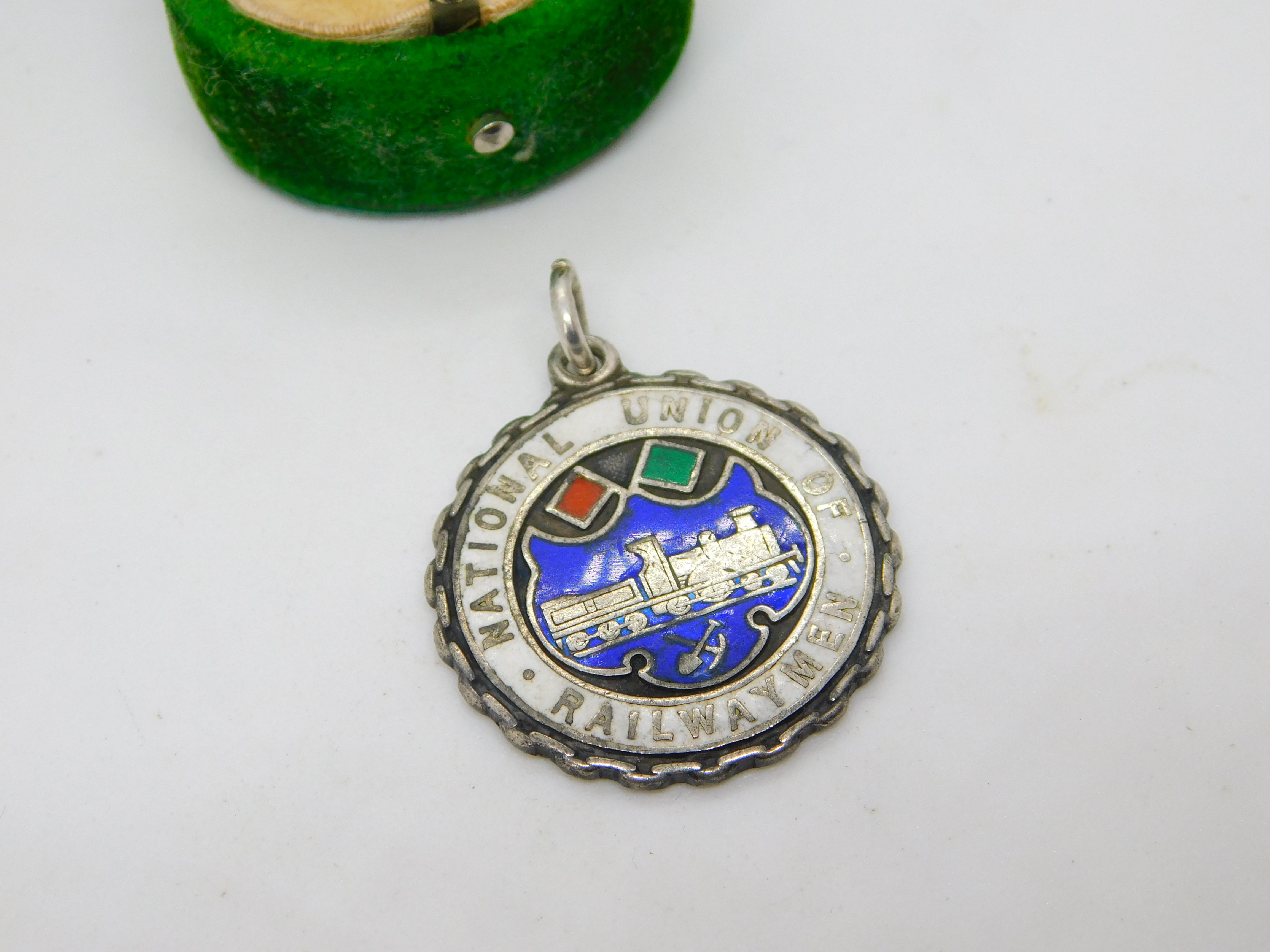 Sterling Silver Enamelled 'National Union of Railwaymen' Fob Medal Antique c1930