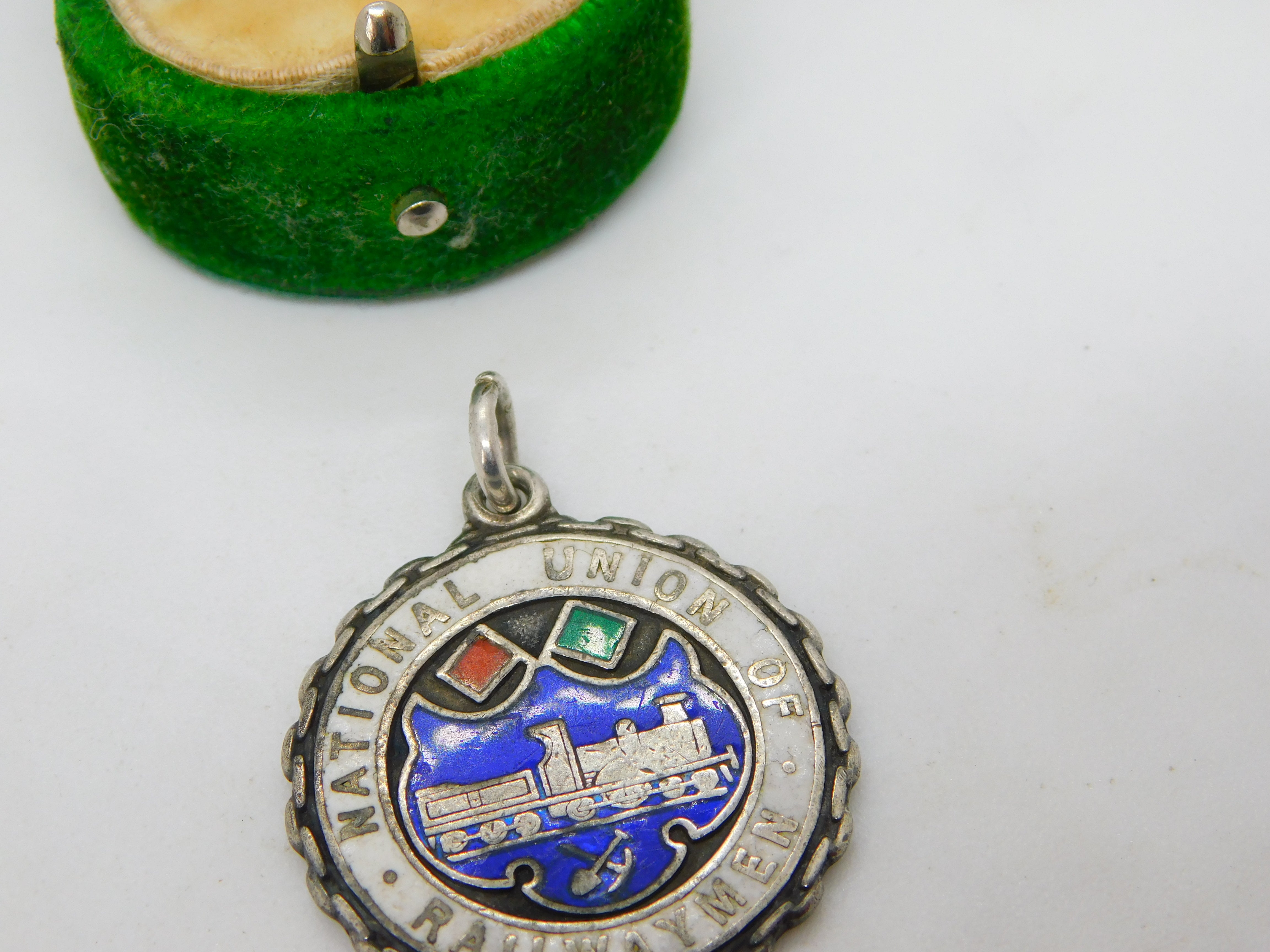 Details: A fantastic and wonderfully designed antique art deco sterling silver & colourful enamel National Union of Railwaymen fob medal c1930, the silver has been tested, minor enamel nibbles. This is a wonderful item that would make a perfect gift or addition to any collection. The BOX pictured is for PRESENTATION ONLY and is NOT included in the listings but used to frame the pictures unless specifically stated otherwise.