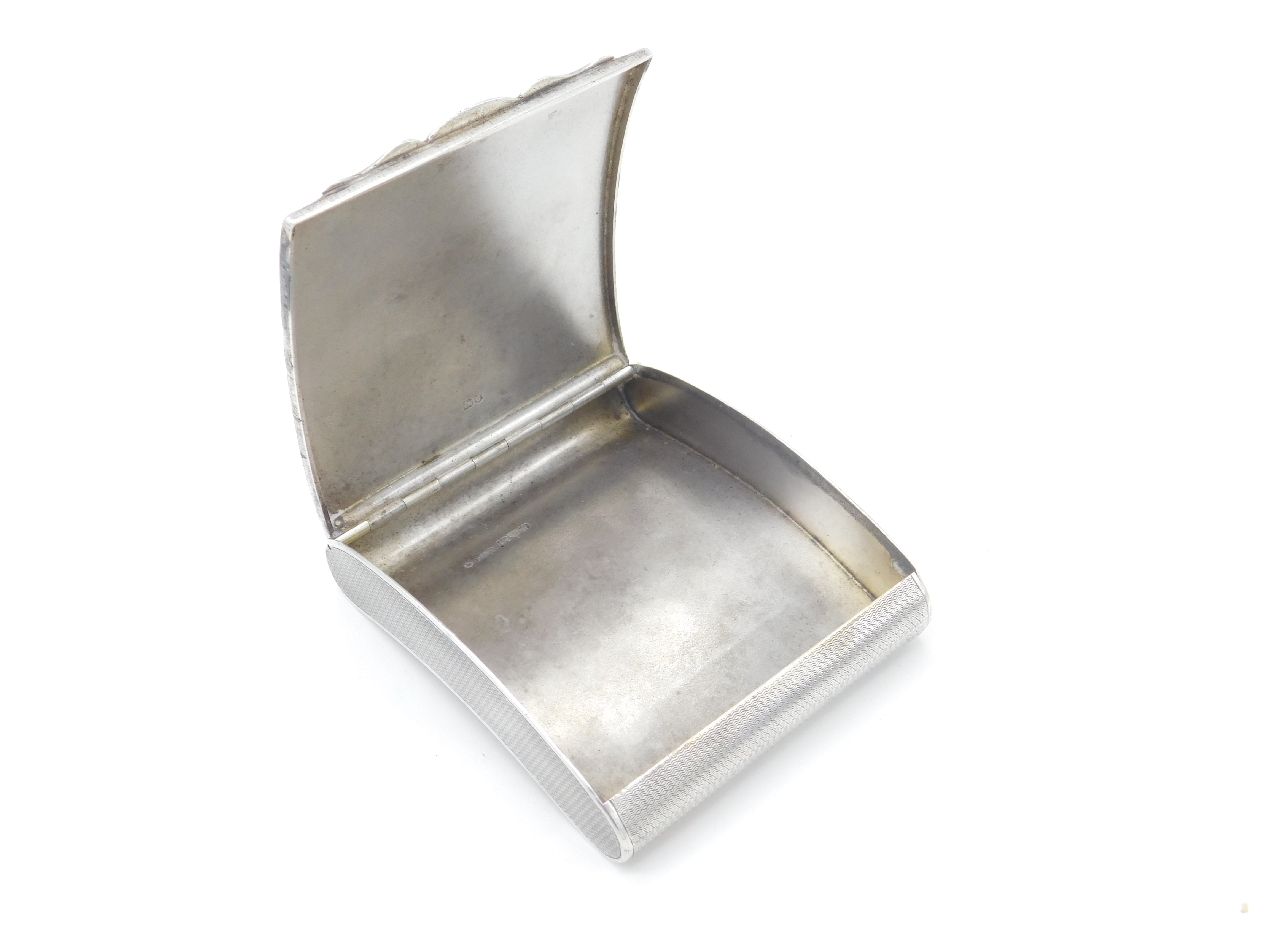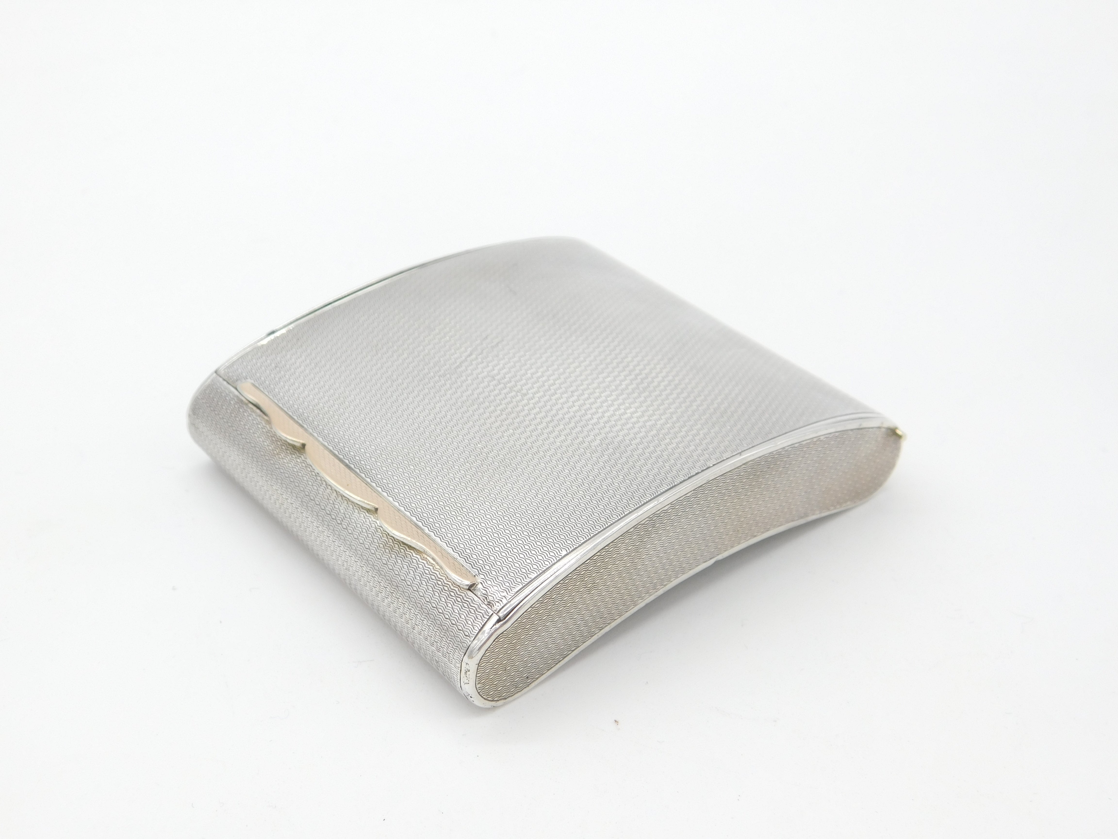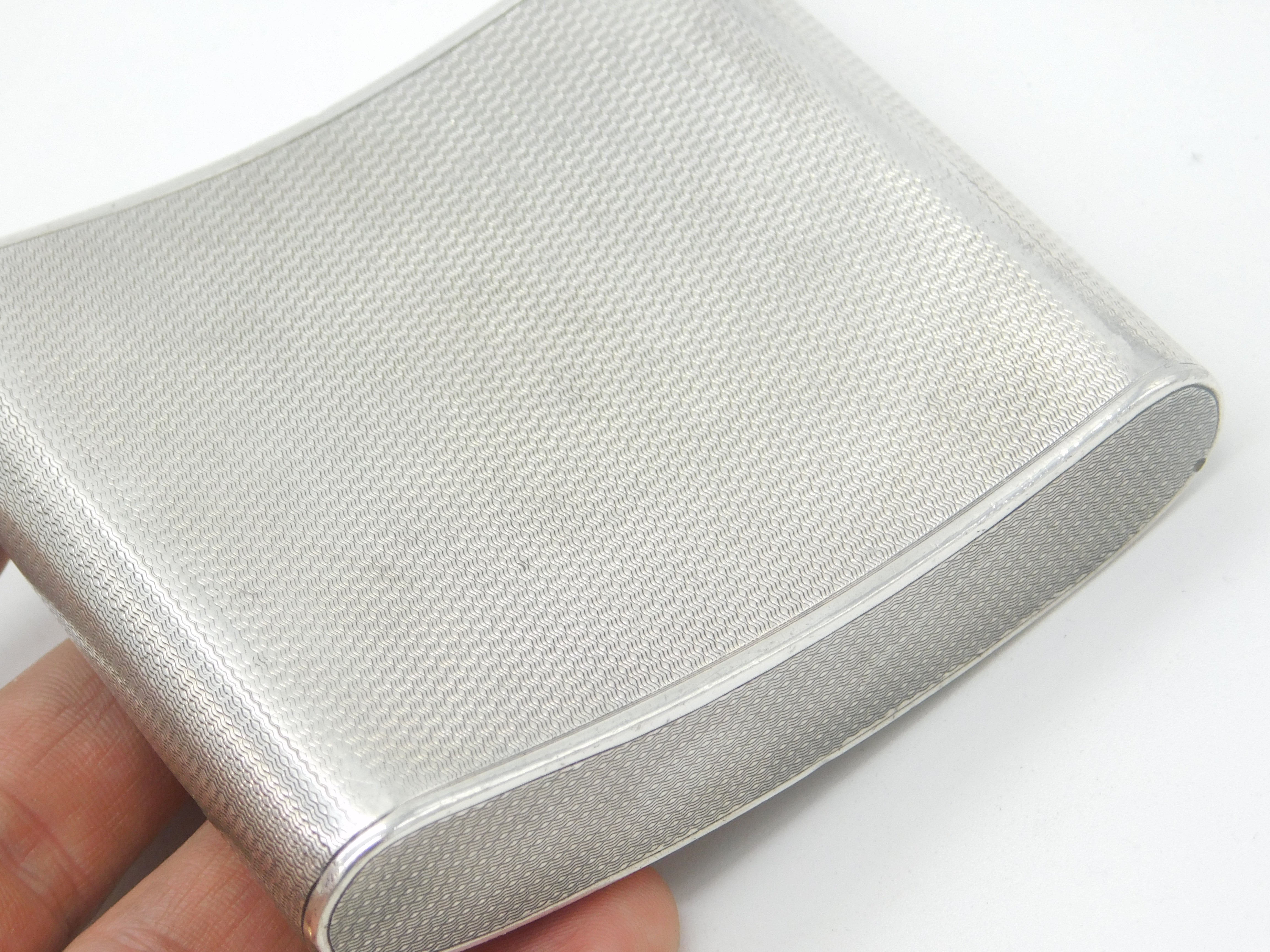 Details: A fantastic and wonderfully designed antique art deco curved form sterling silver engine turned cigarette or card case with 9ct rose gold clip hallmarked Chester 1929 by E J Trevitt & Sons. An excellent heavy guage quality example. This is a wonderful item that would make a perfect gift or addition to any collection. The BOX pictured is for PRESENTATION ONLY and is NOT included in the listings but used to frame the pictures unless specifically stated otherwise.