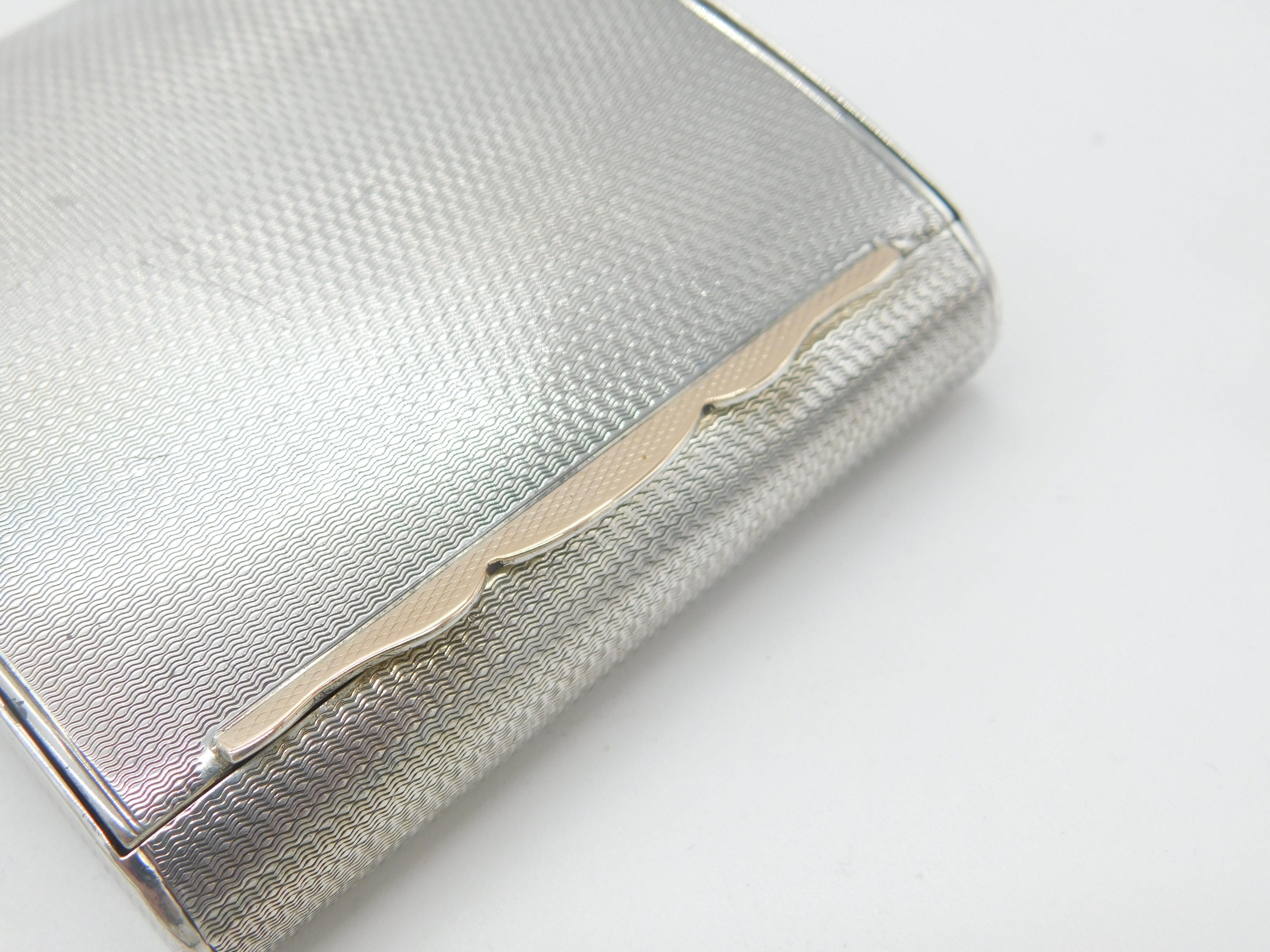 Sterling Silver Engine Turned Cigarette Case with Rose Gold Clip 1931 Chester