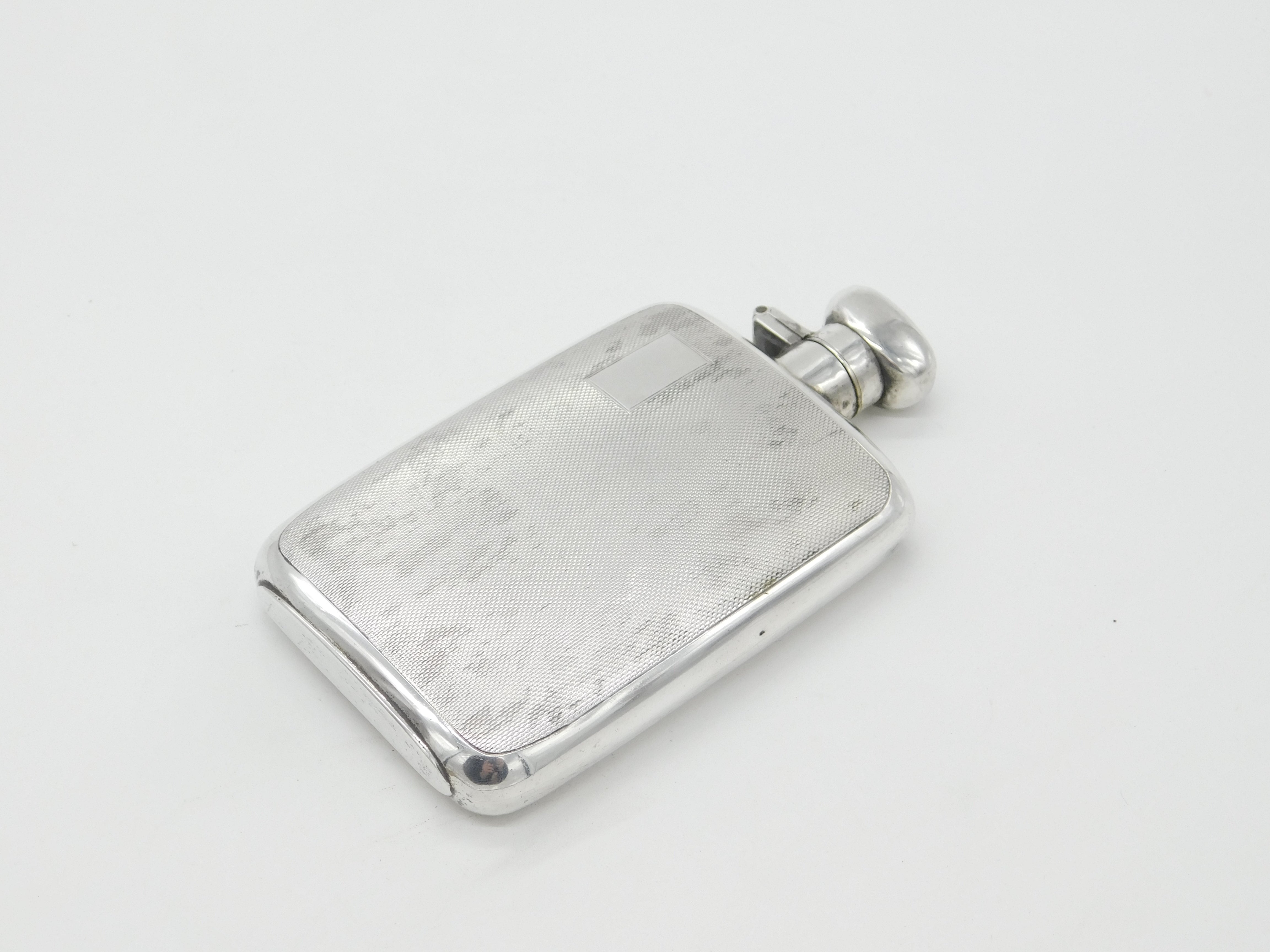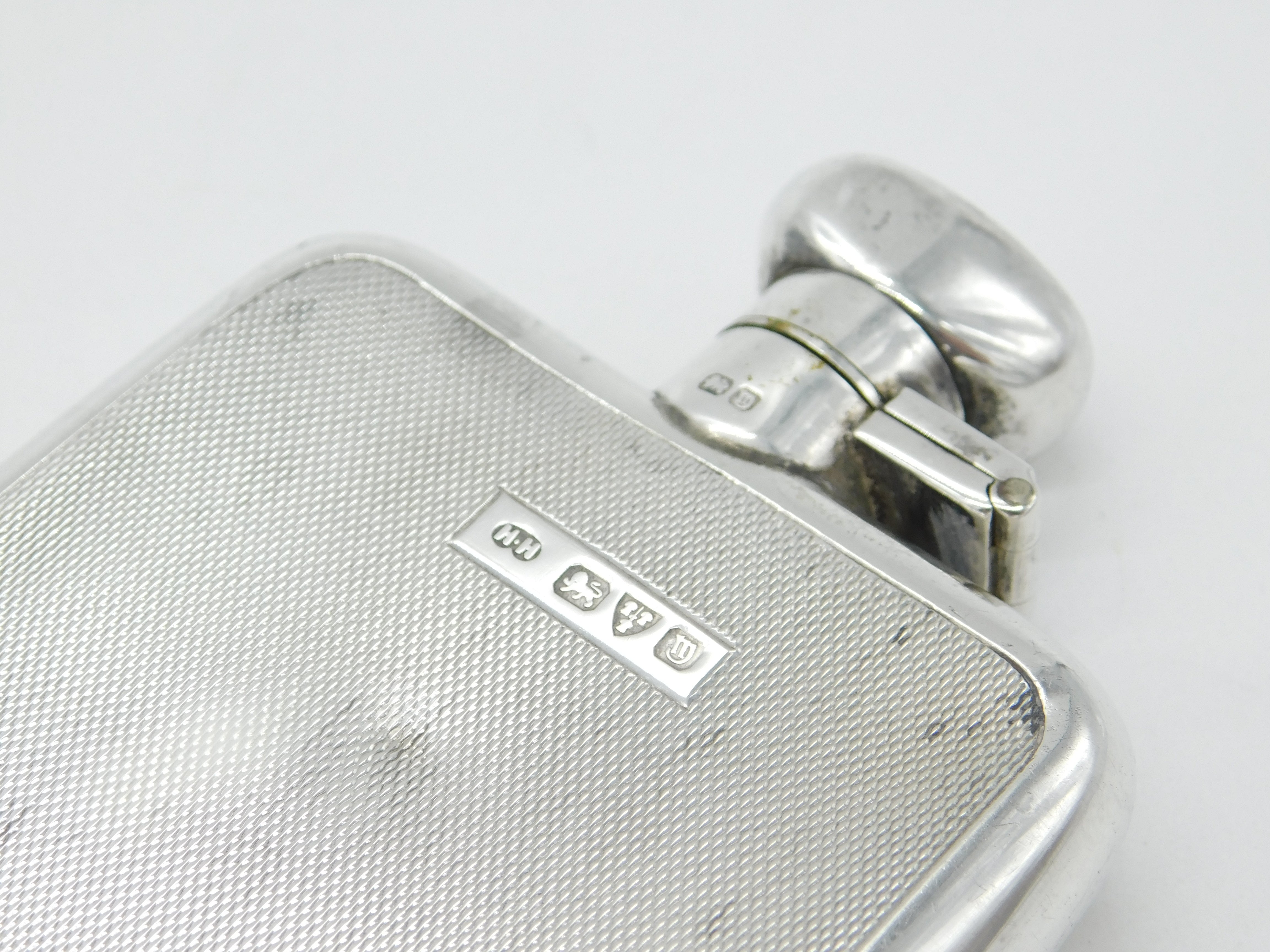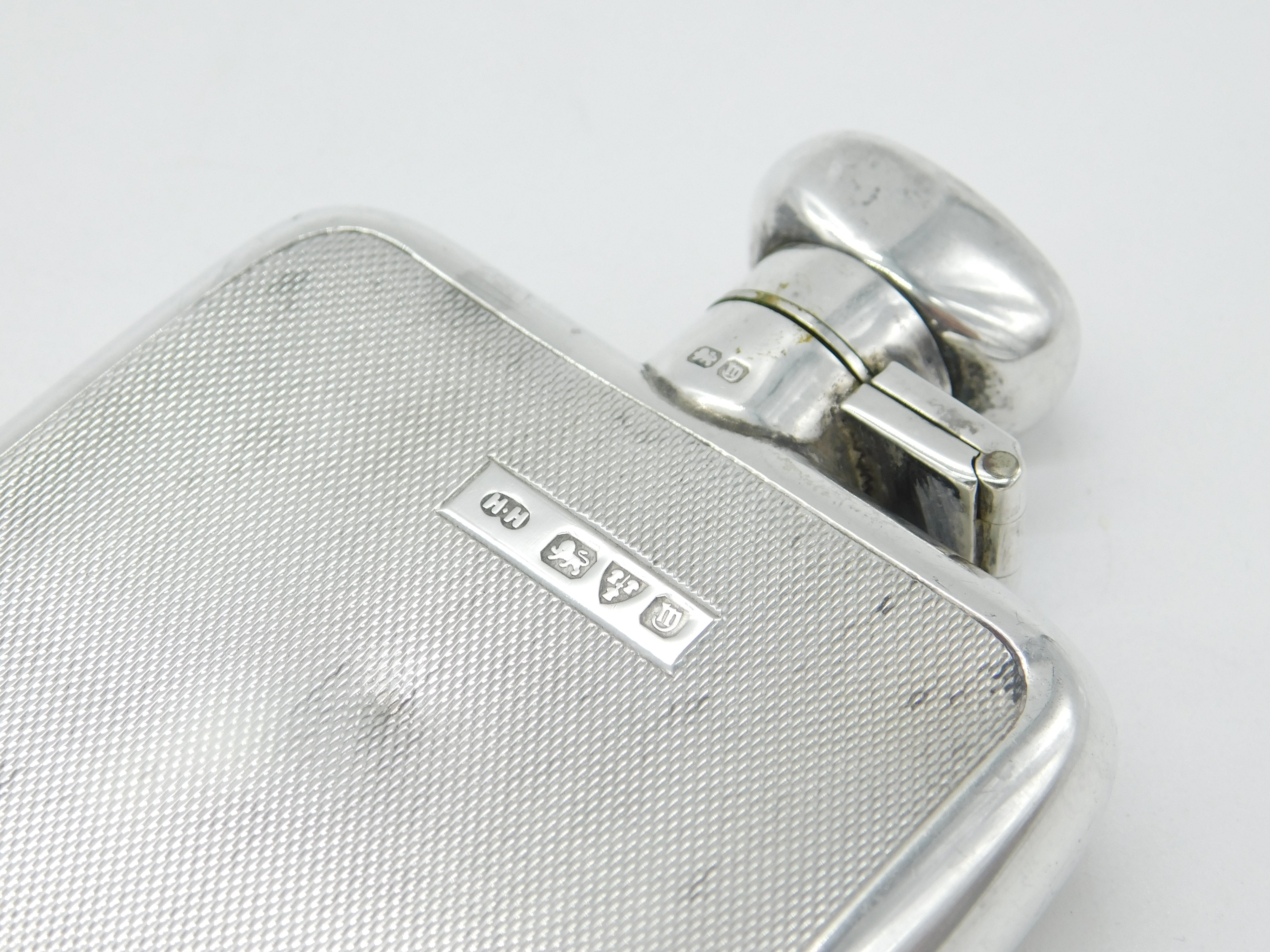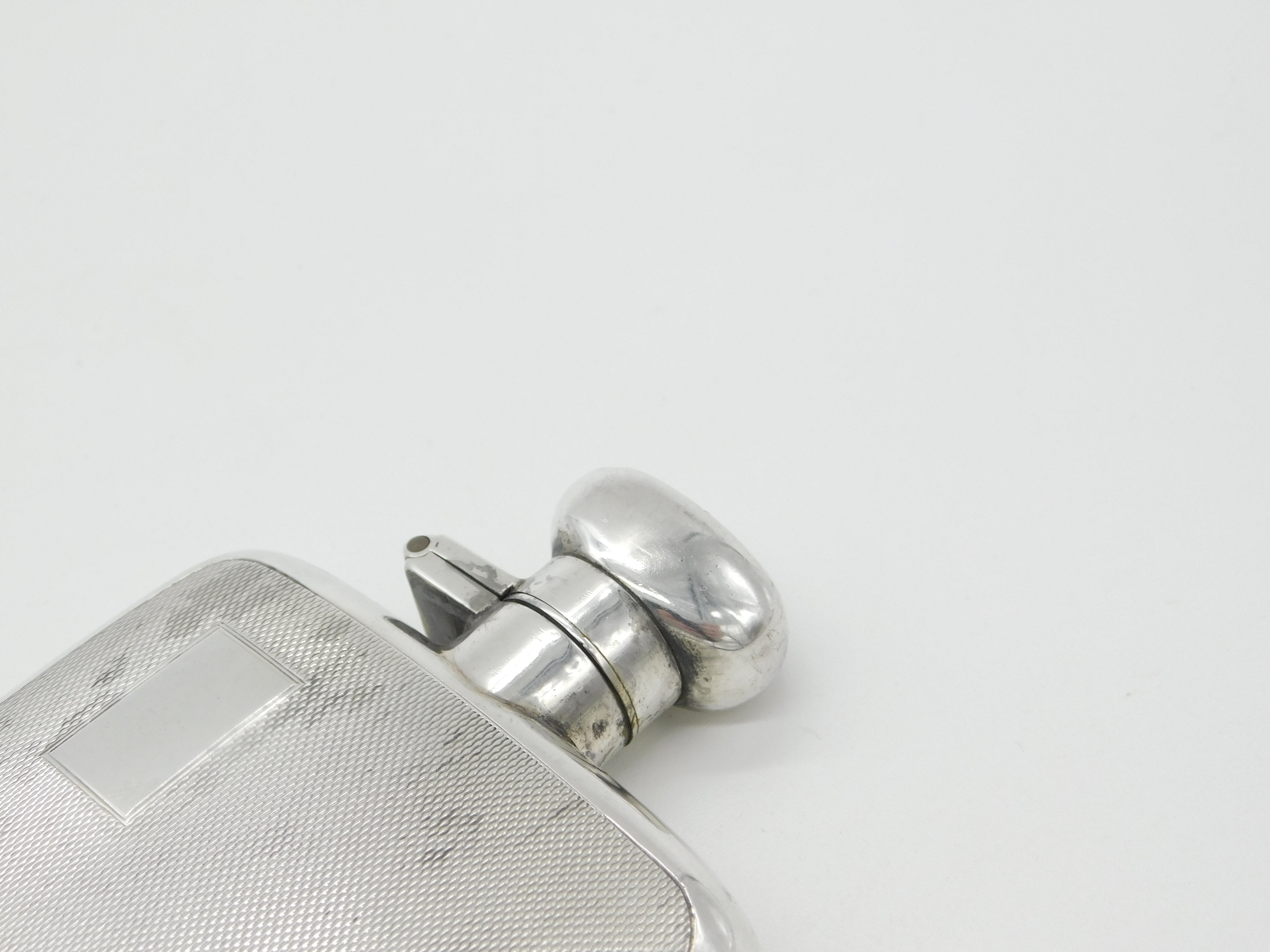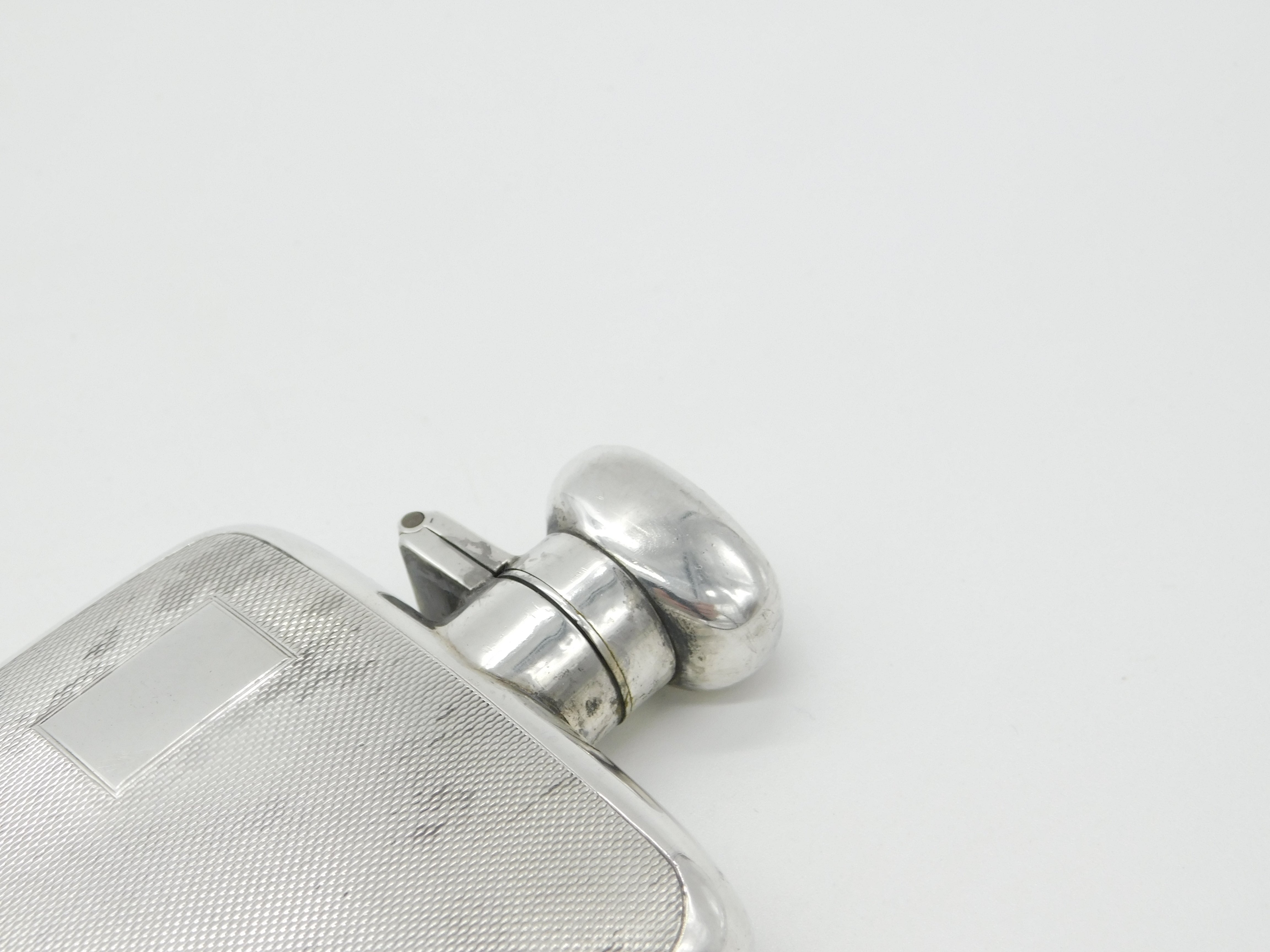 Sterling Silver Engine Turned Spirit Hip Flask Chester 1937 Hubert Hall Antique