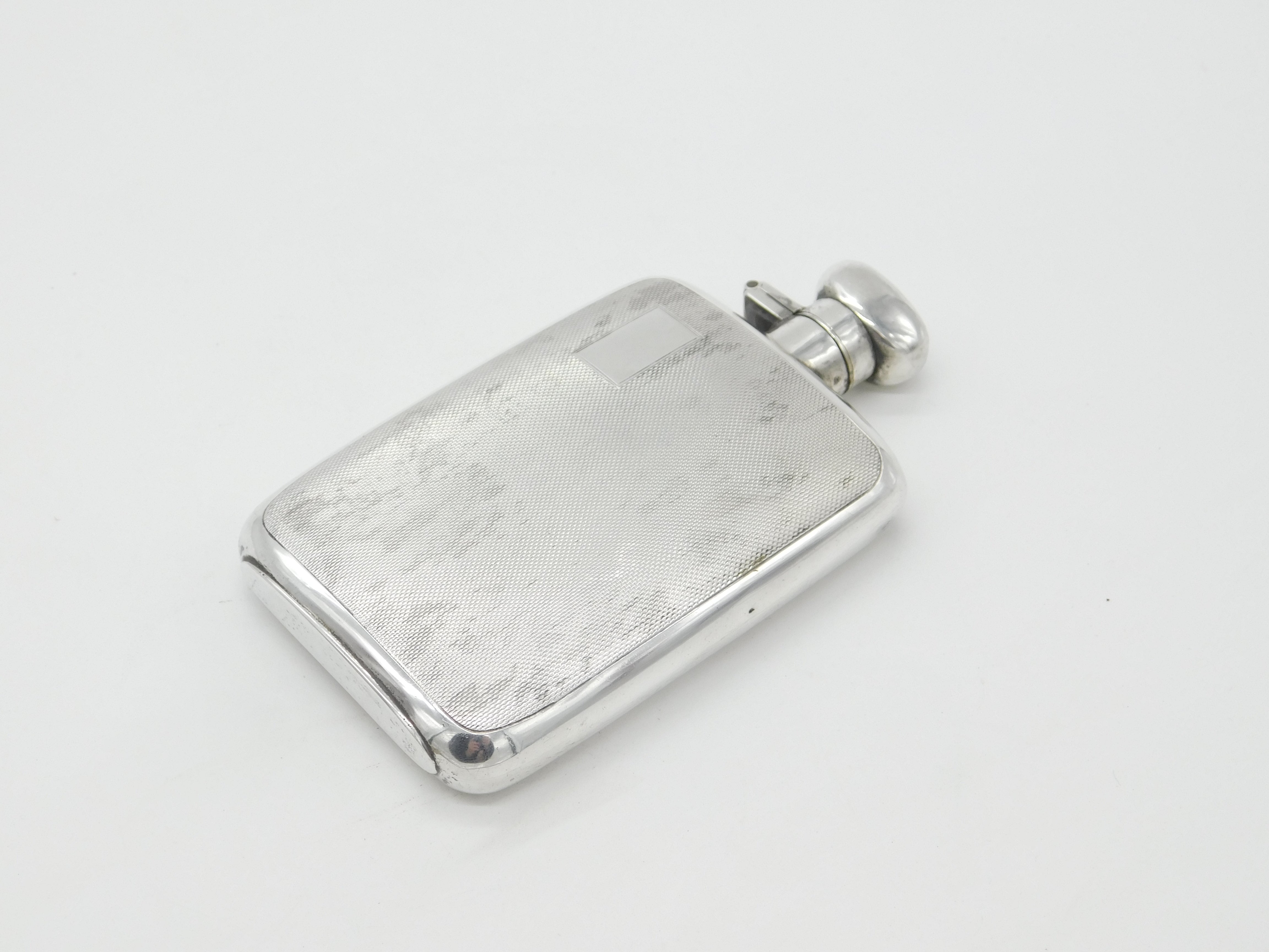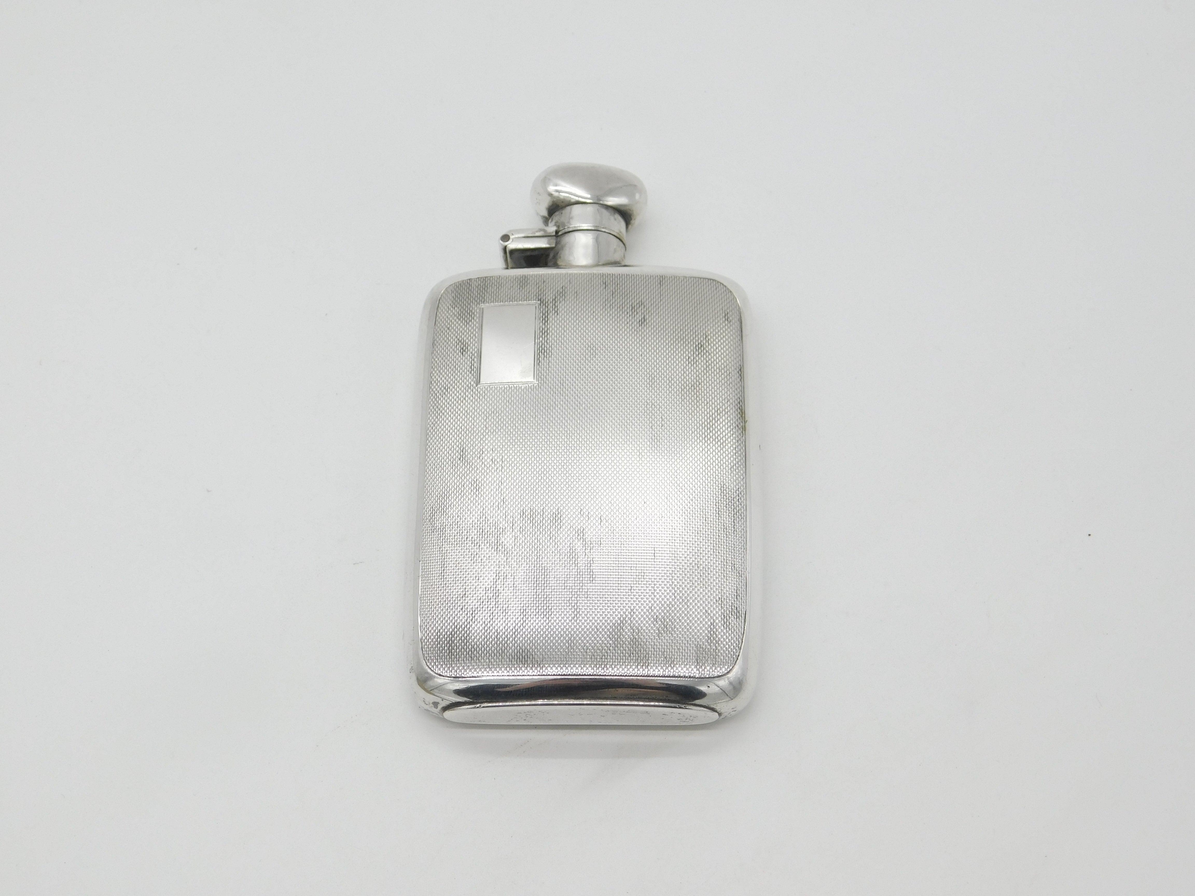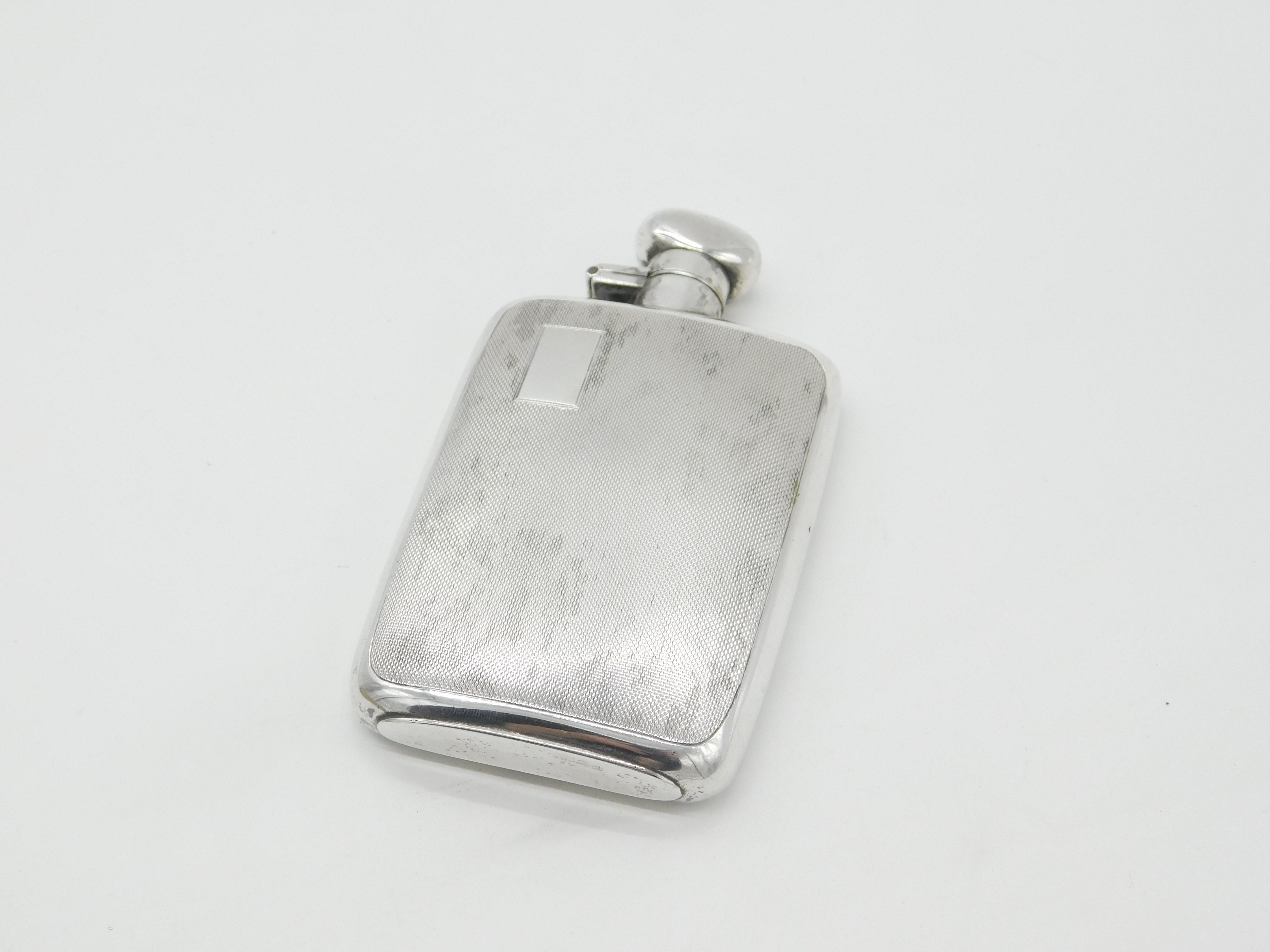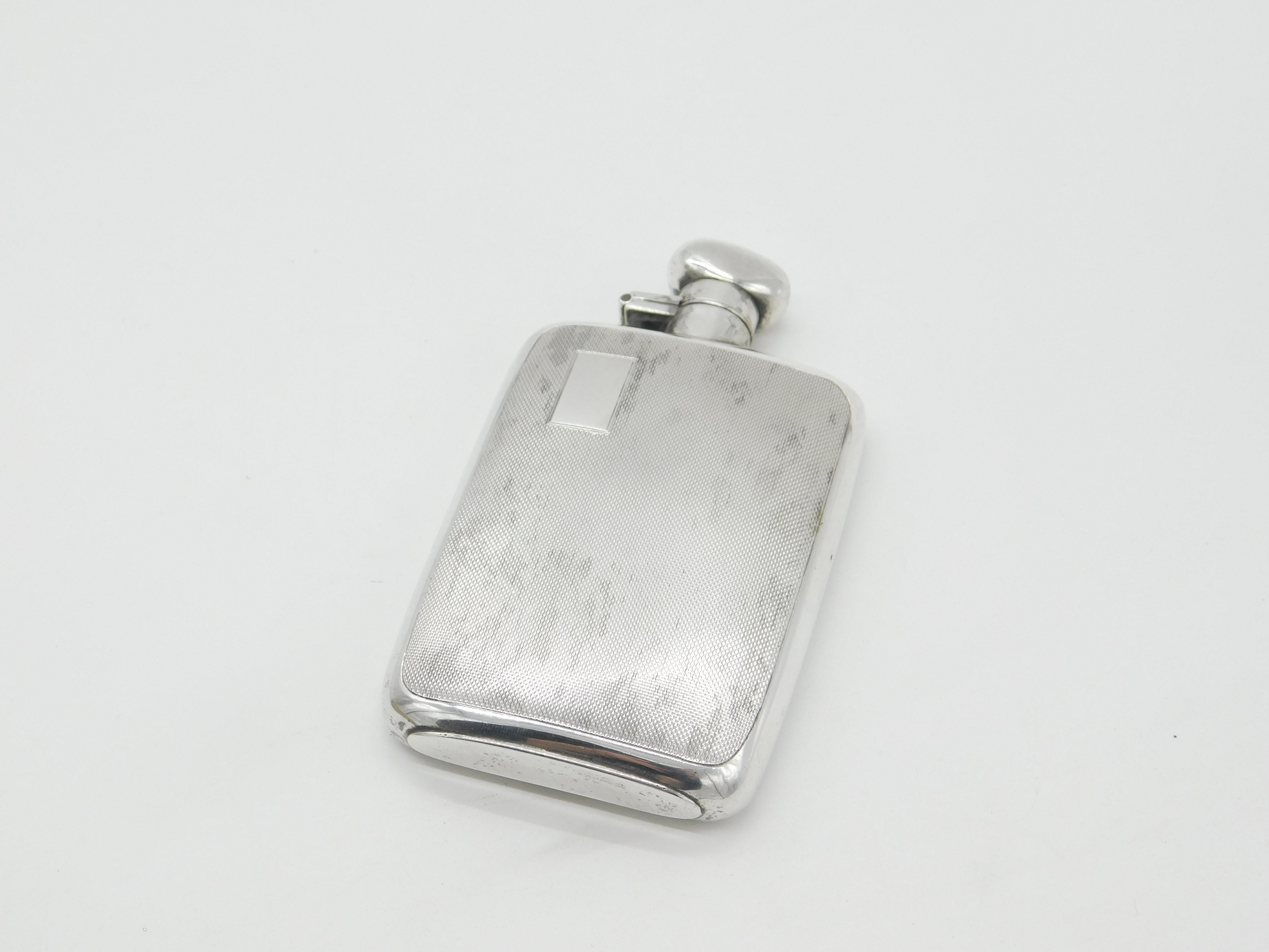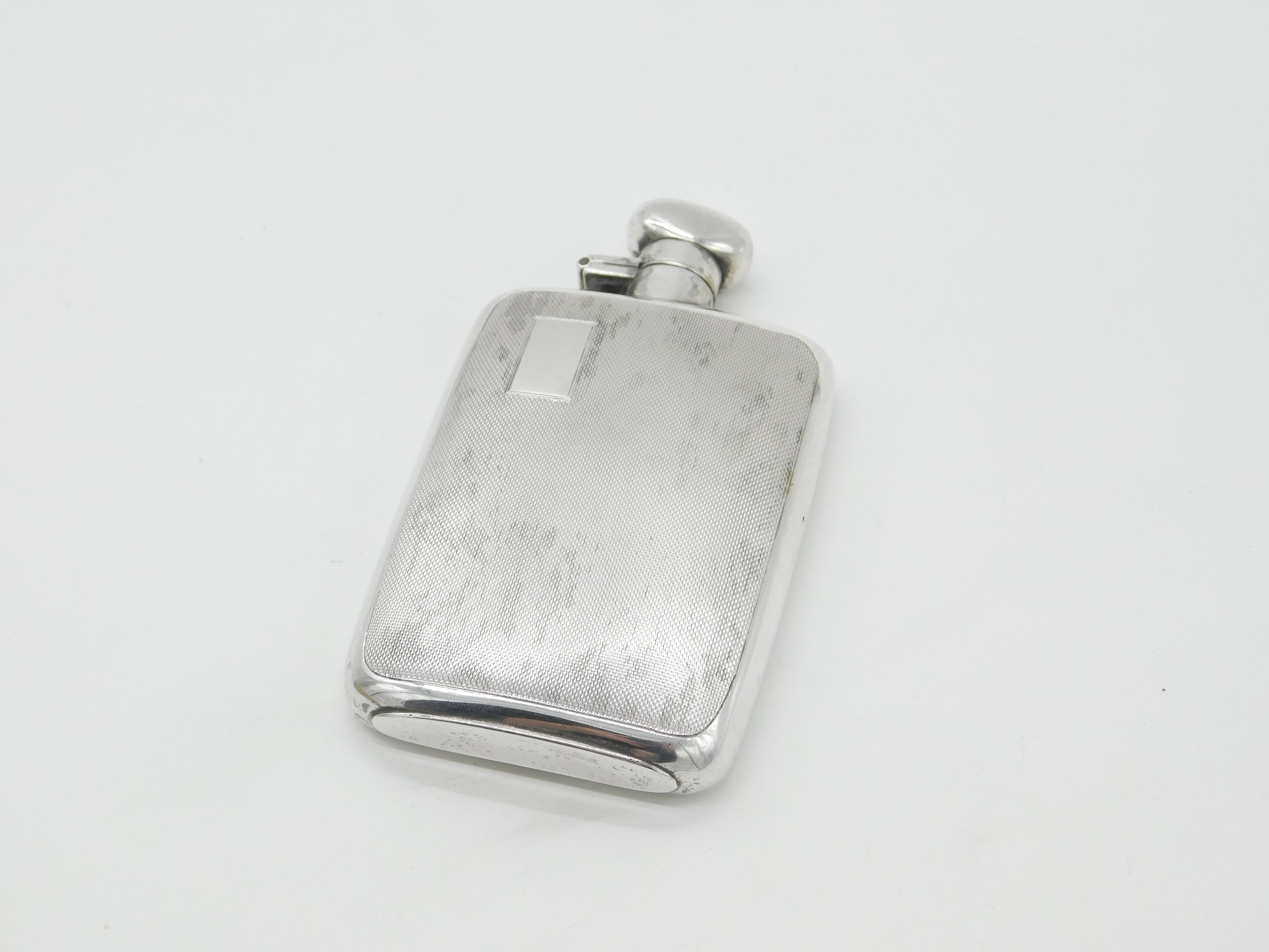 Sterling Silver Engine Turned Spirit Hip Flask Chester 1937 Hubert Hall Antique