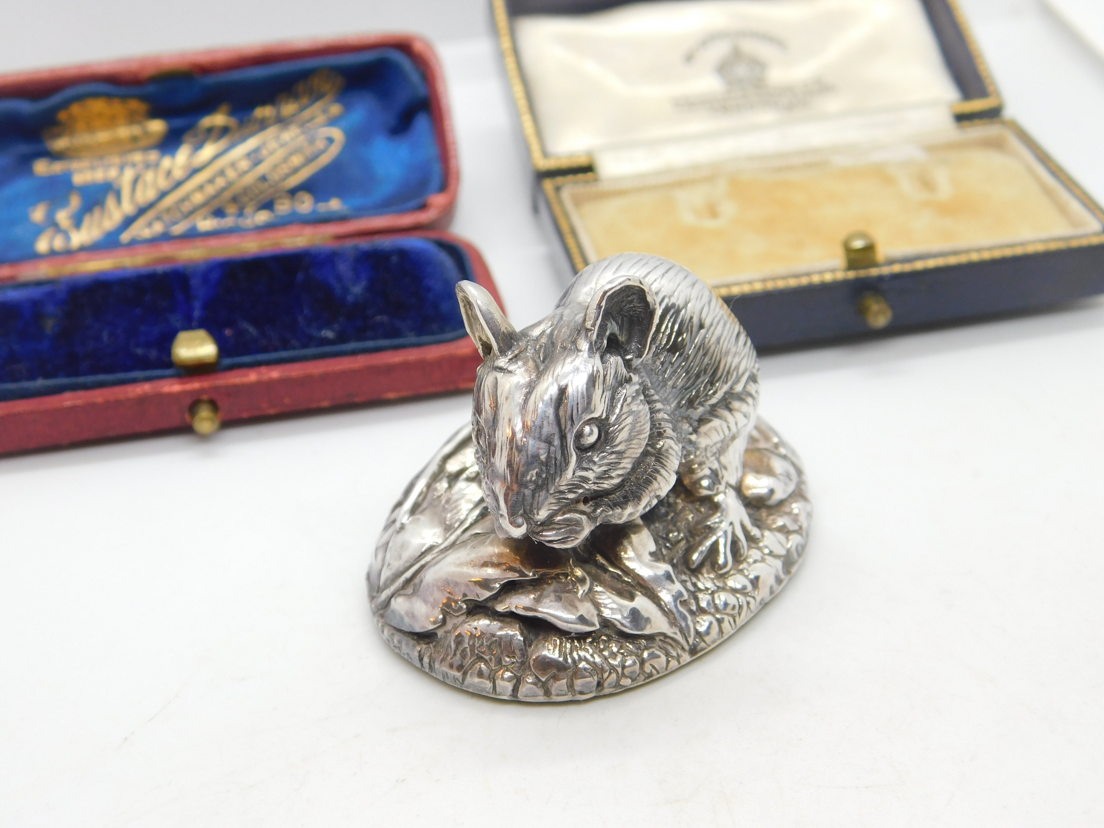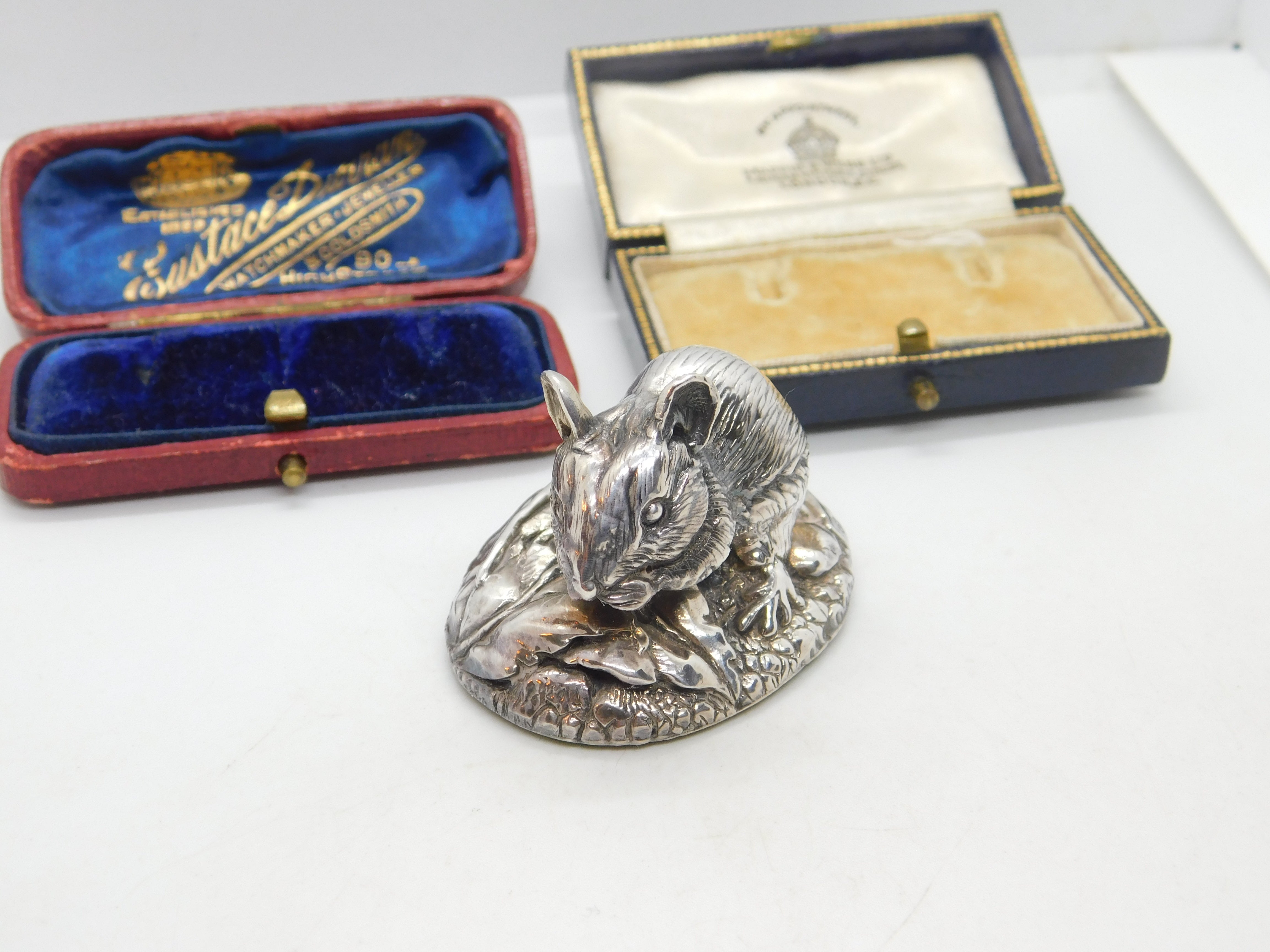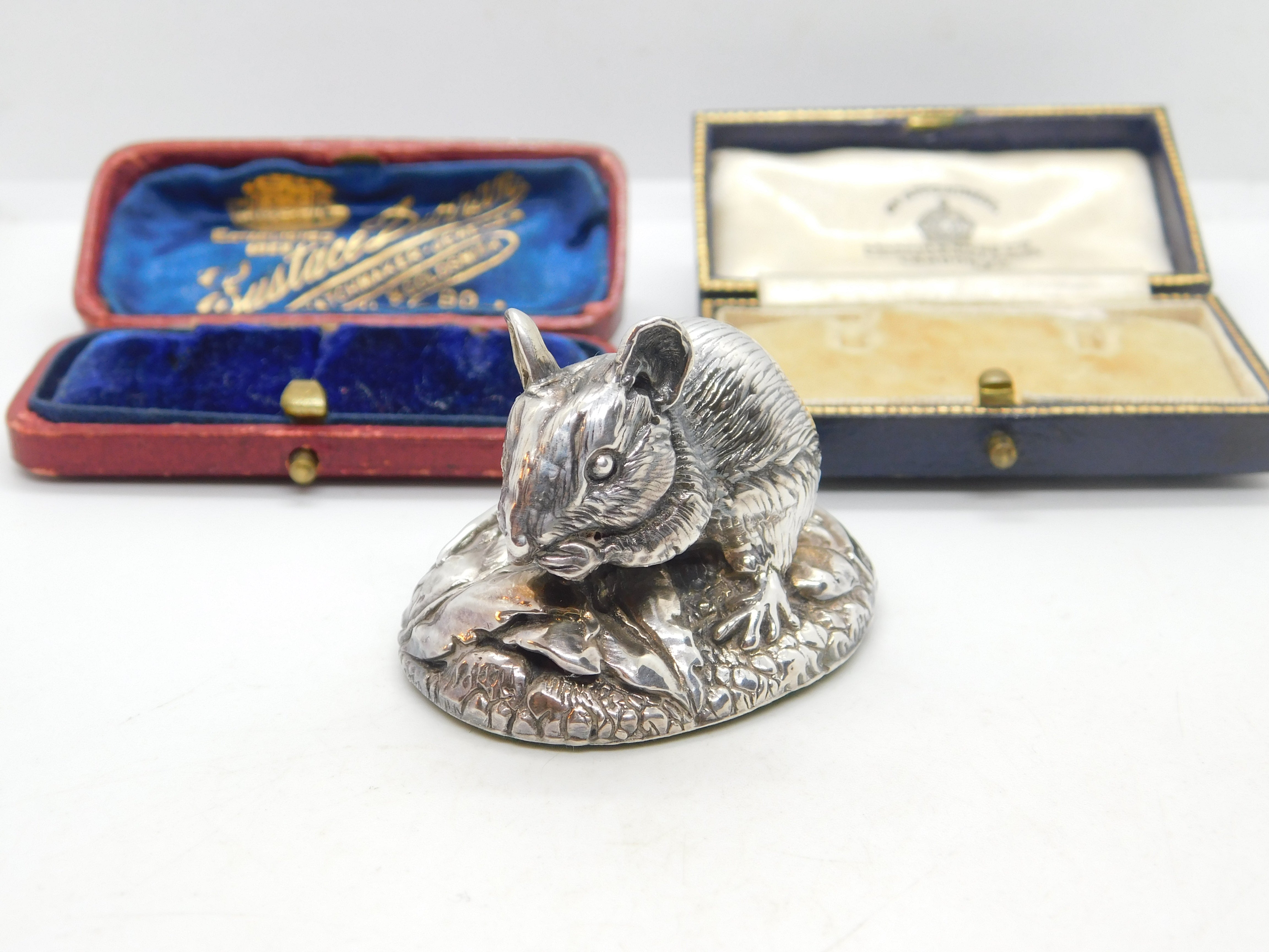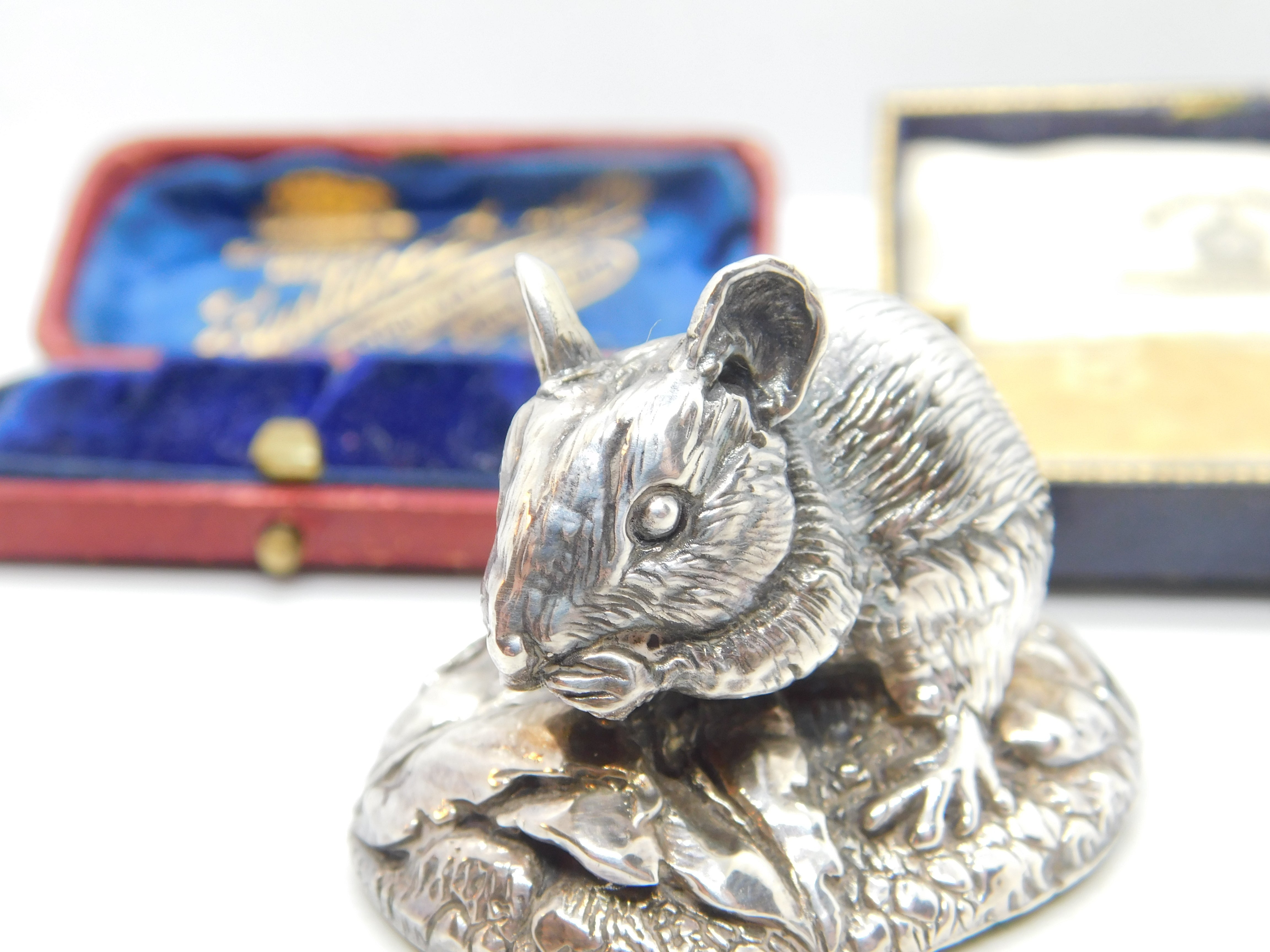 Details: A fantastic and fun vintage sterling silver field mouse figurine sculpture with charming detail hallmarked Birmingham 1998 to the edge. The silver is weighted. This is a wonderful item that would make a perfect gift or addition to any collection. The BOX pictured is for PRESENTATION ONLY and is NOT included in the listings but used to frame the pictures unless specifically stated otherwise.