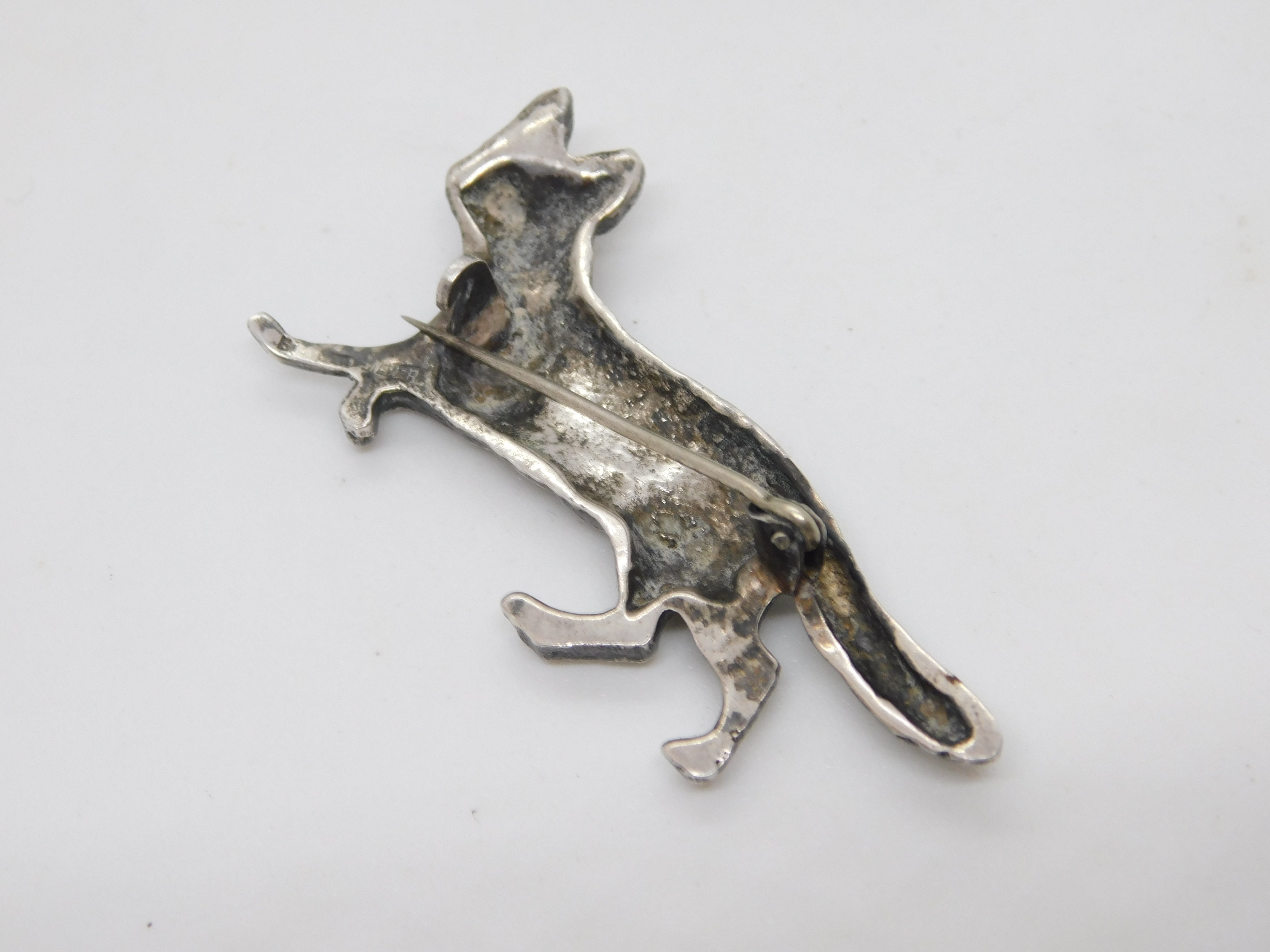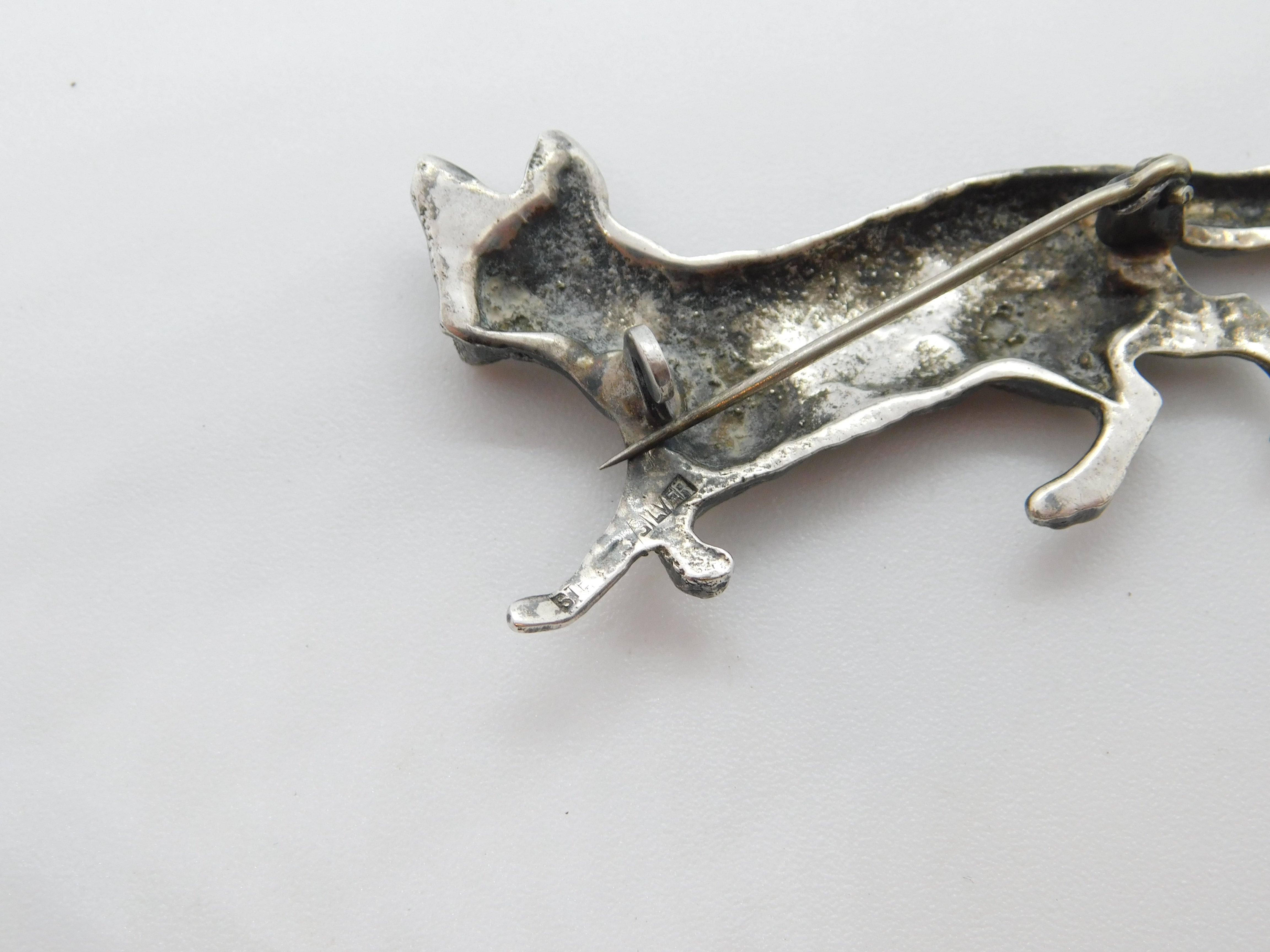 Sterling Silver Figurative Running Fox Brooch Stock Pin Vintage c1970