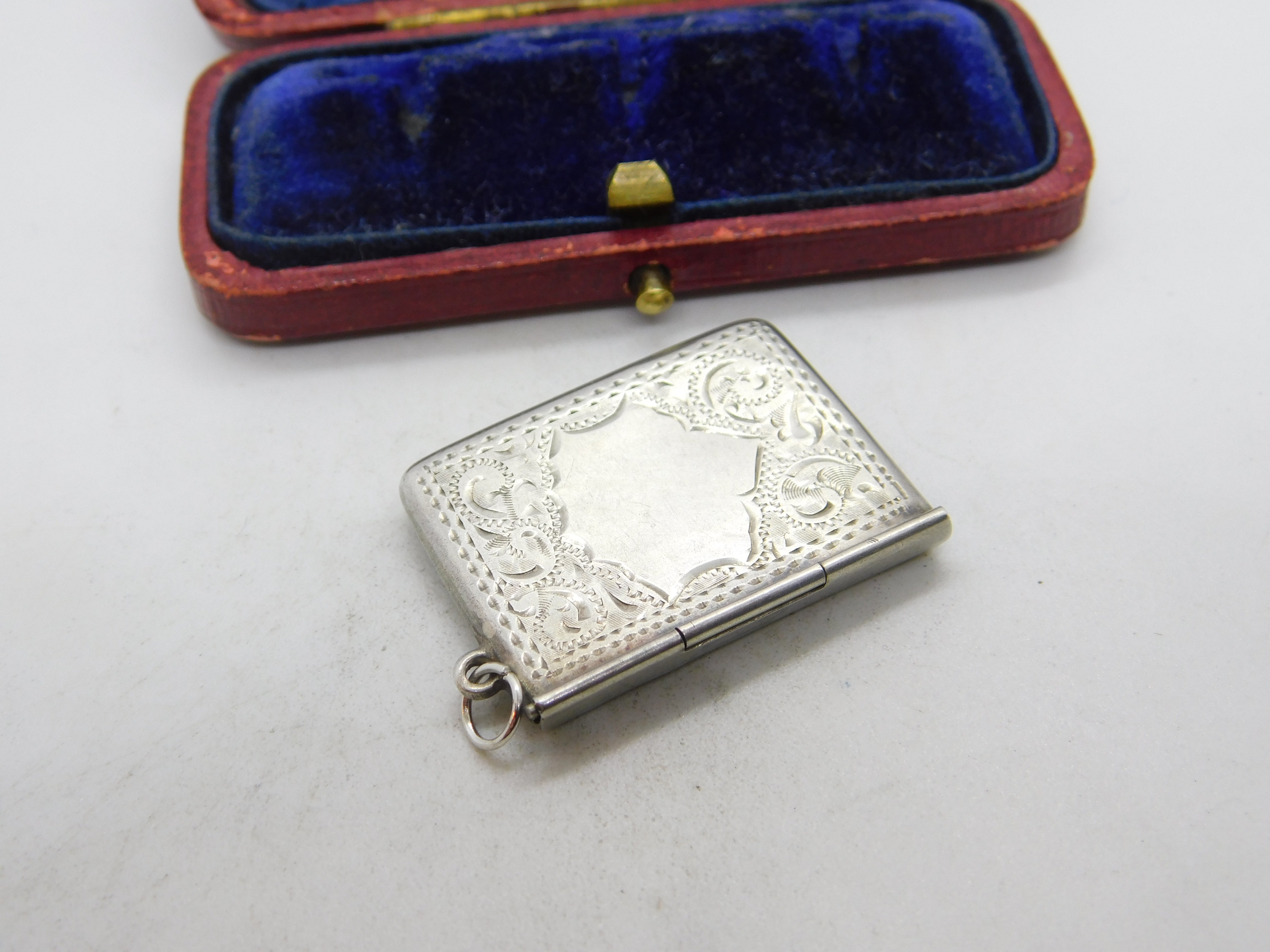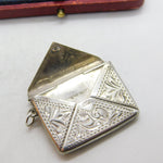 Sterling Silver Floral Pattern Envelope Form Stamp Case Fob Pendant Antique