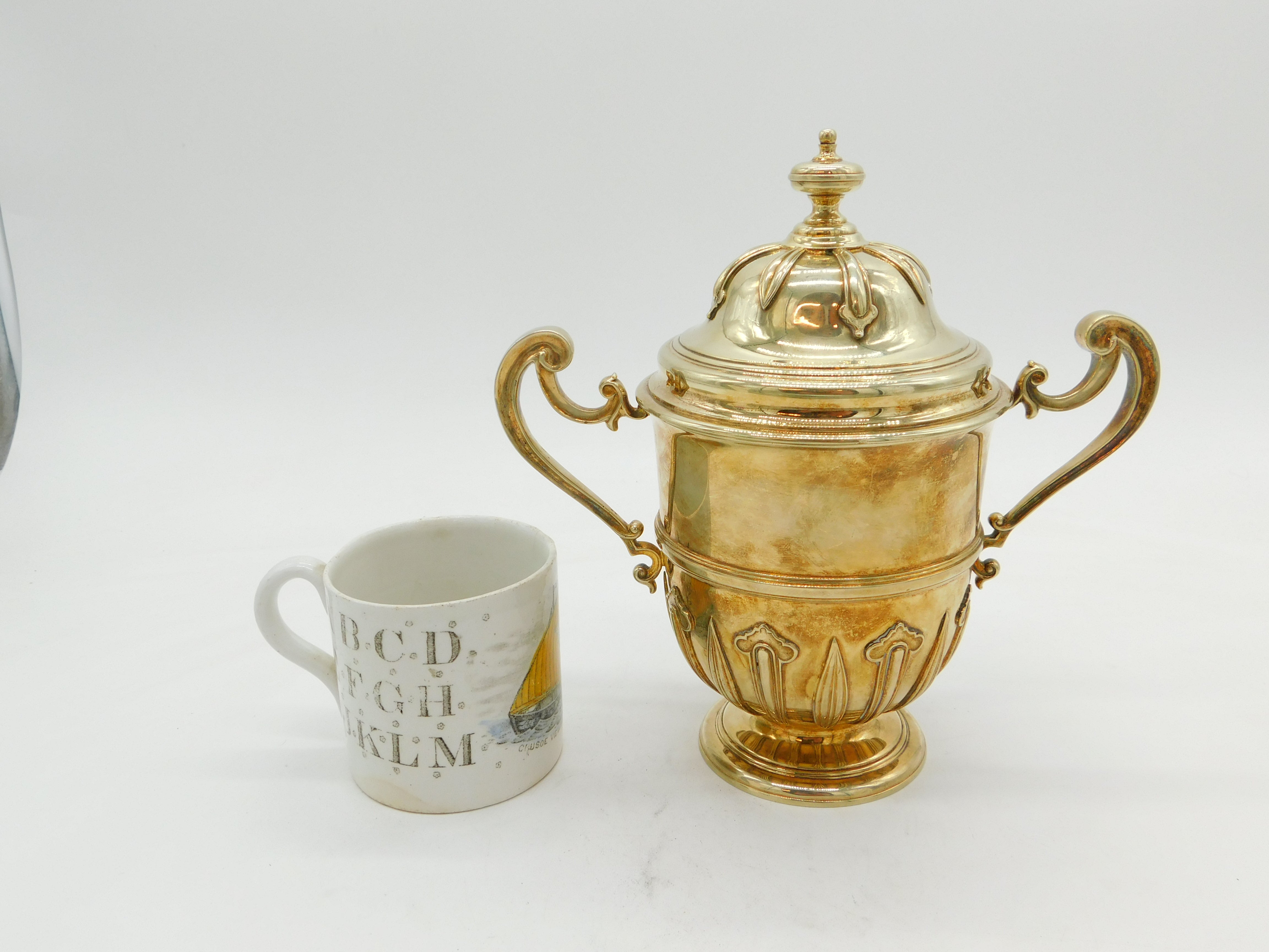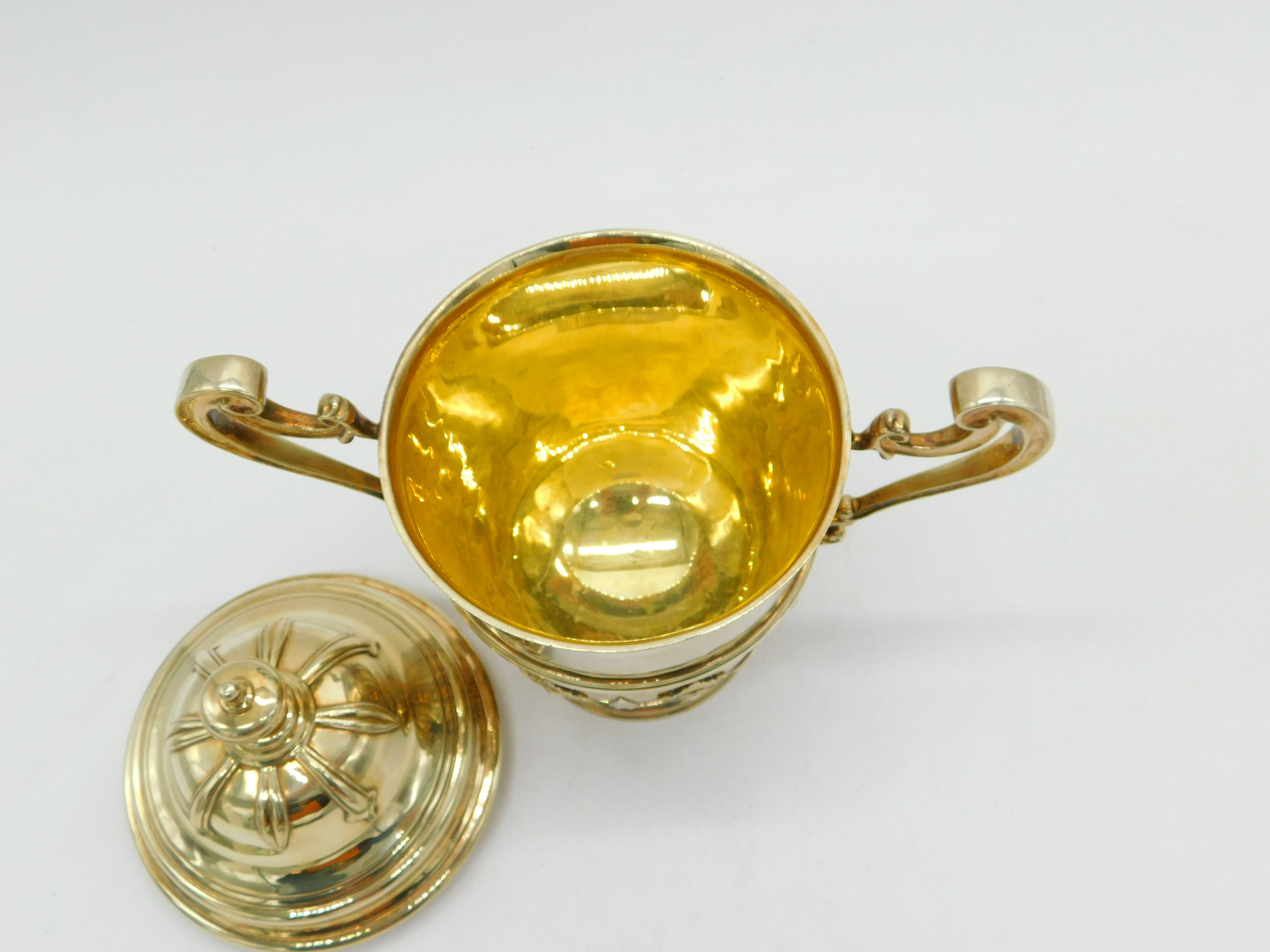 Sterling Silver Gilded Nouveau Pattern Lidded Trophy Cup Antique 1911 London