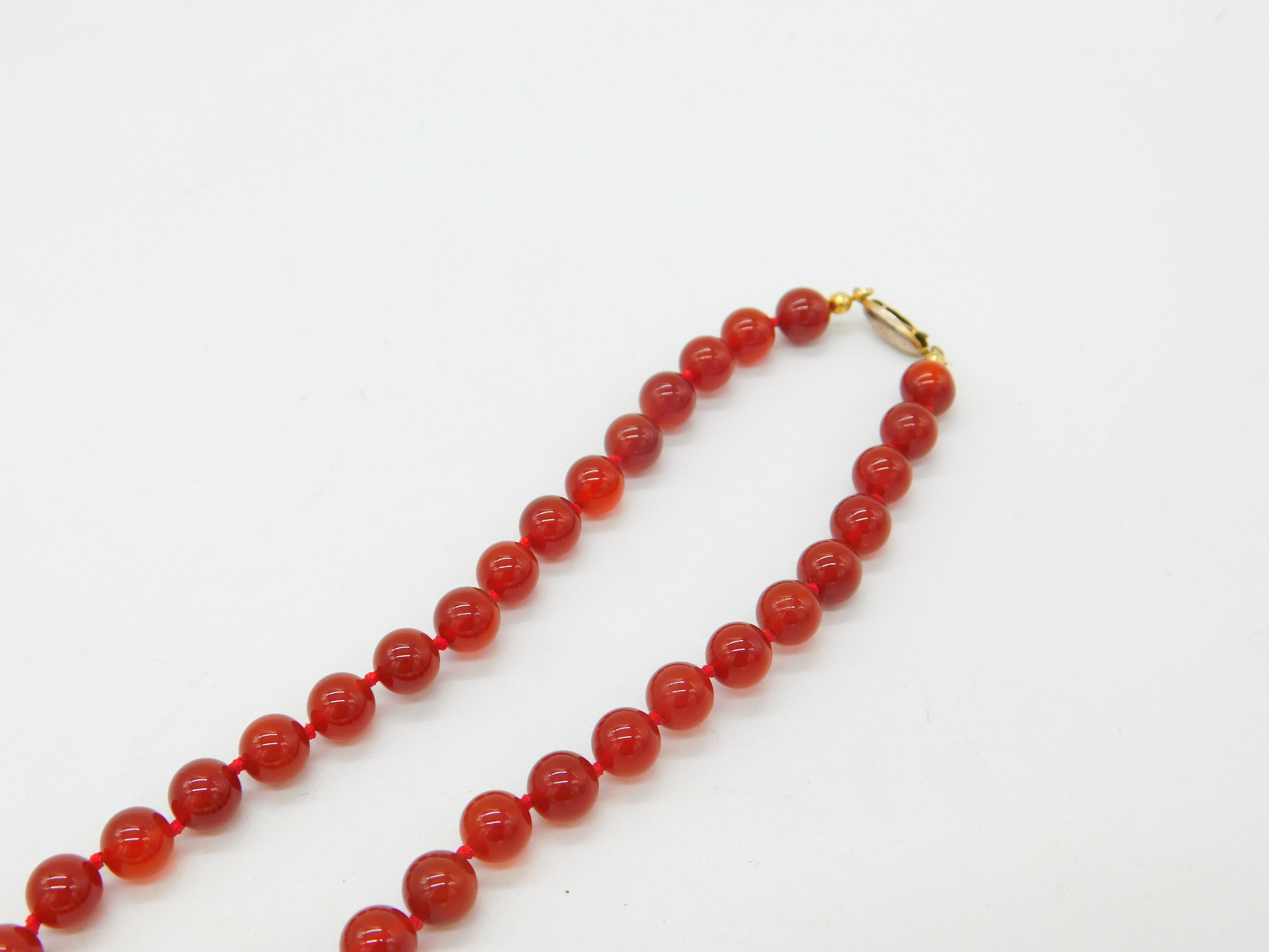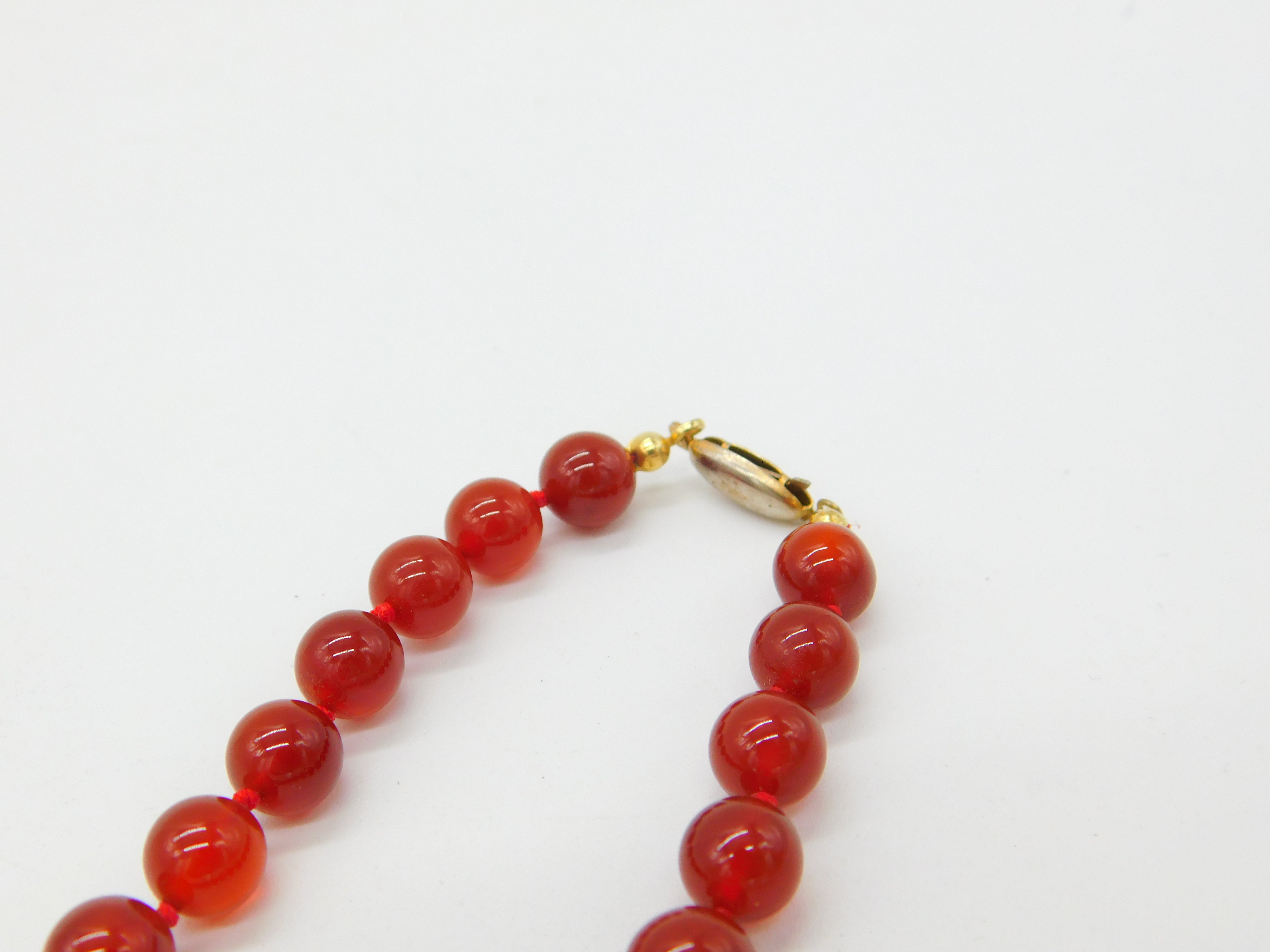 Sterling Silver Gilt Clasp & Red Hardstone Bead Necklace Antique c1920