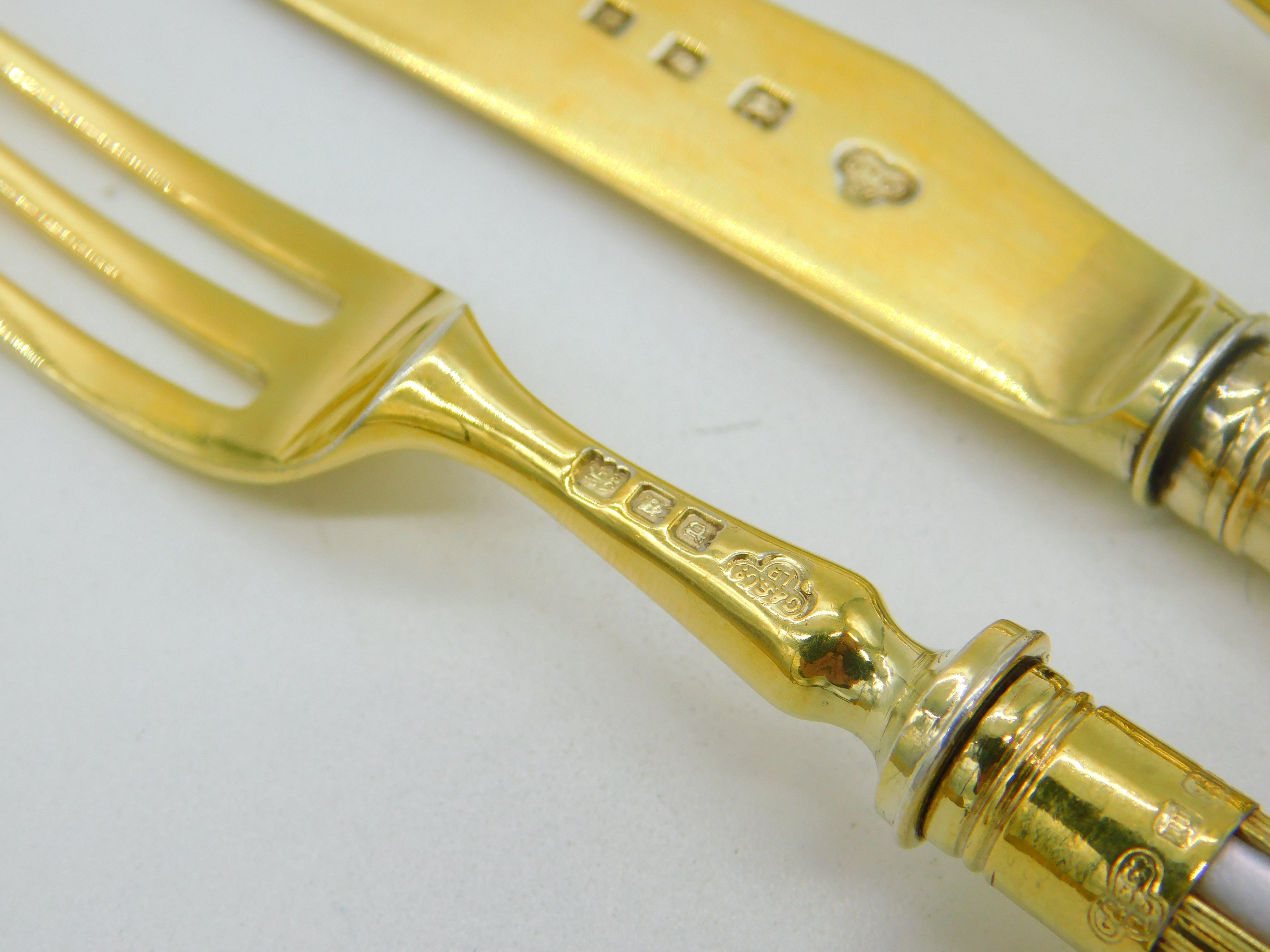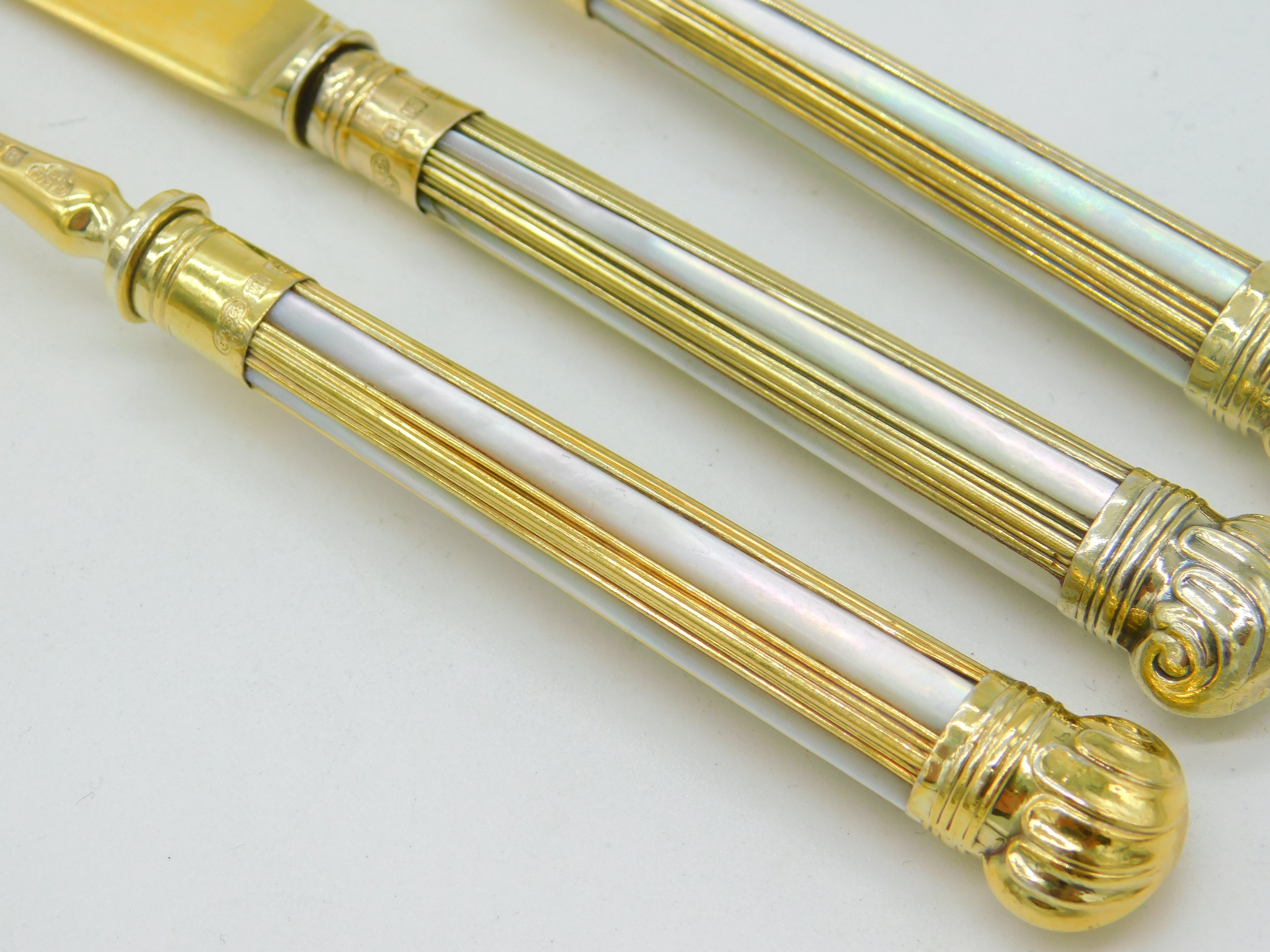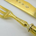 Sterling Silver Gilt & Mother of Pearl Fish Cutlery Set Antique 1930 London