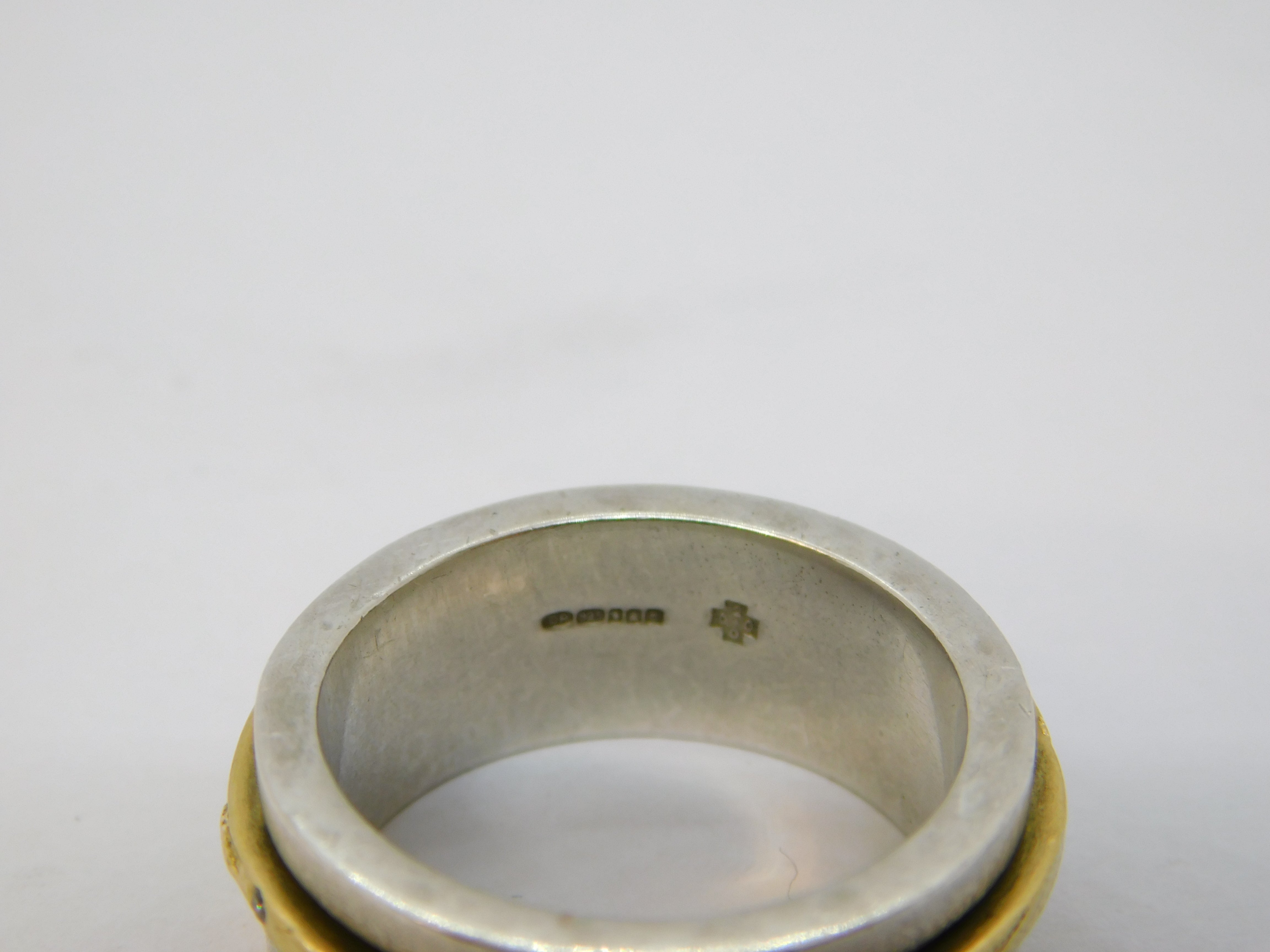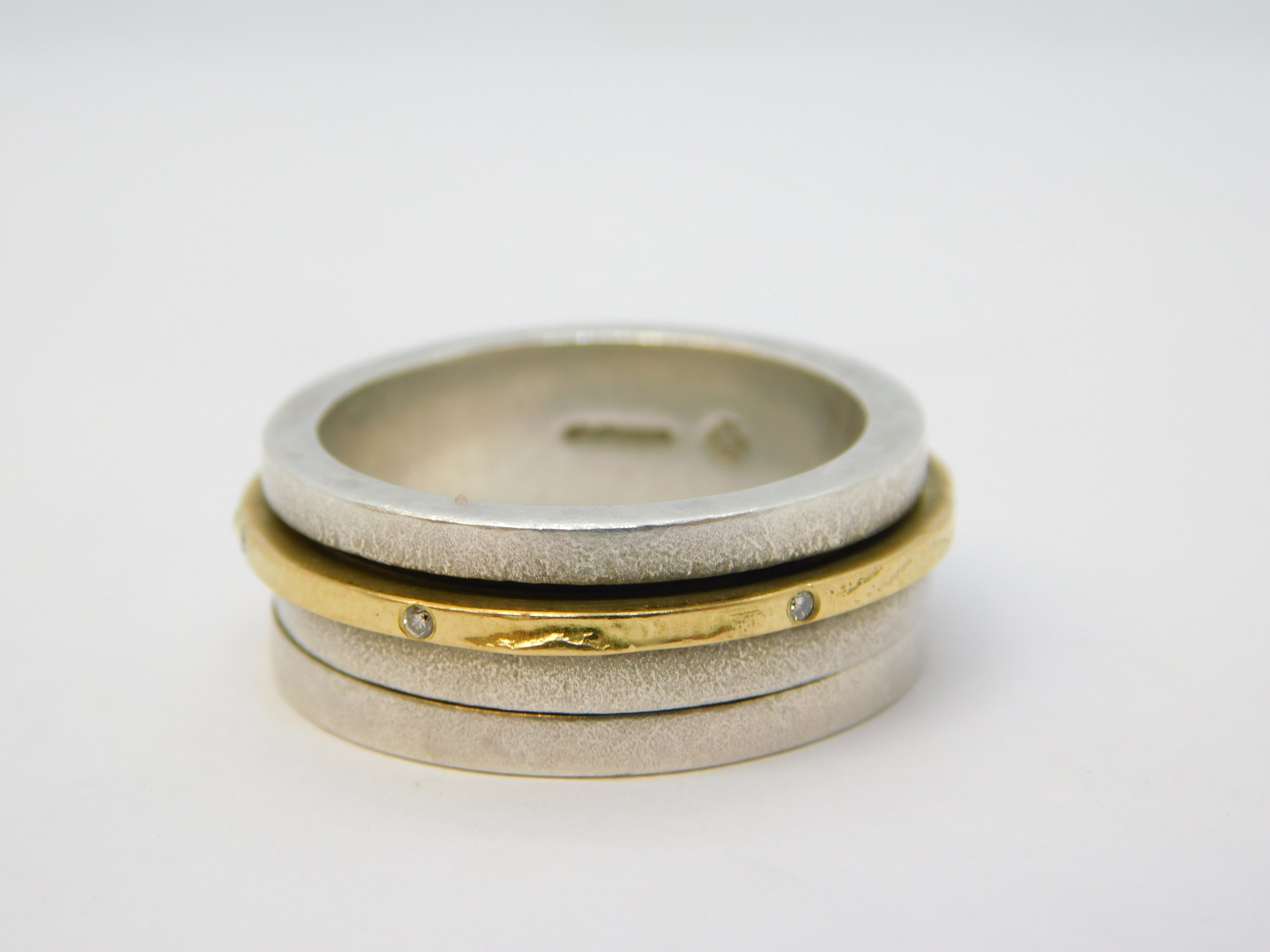 Sterling Silver, Gold & Diamond Set Spinner Ring Vintage 2000 Edinburgh