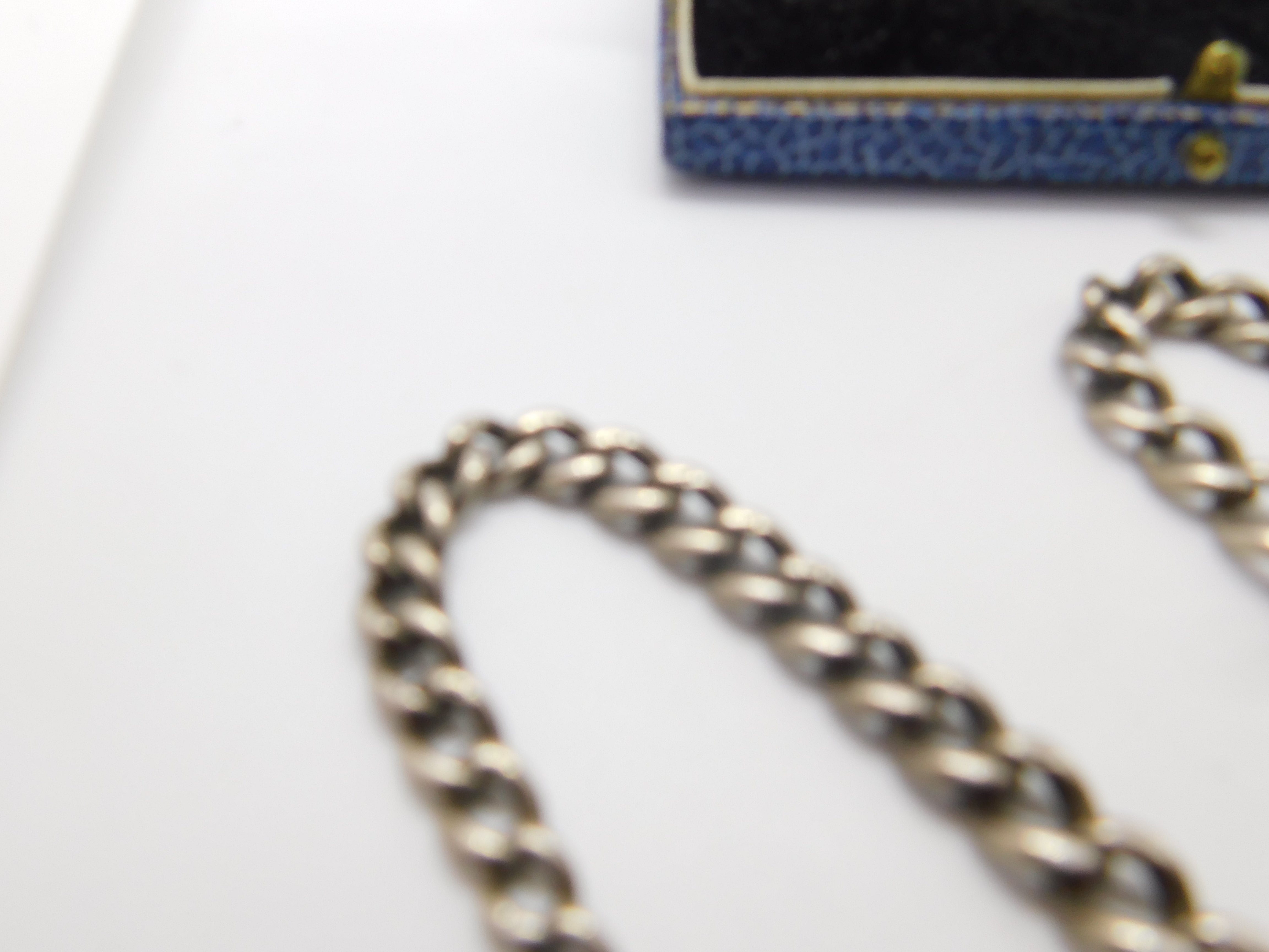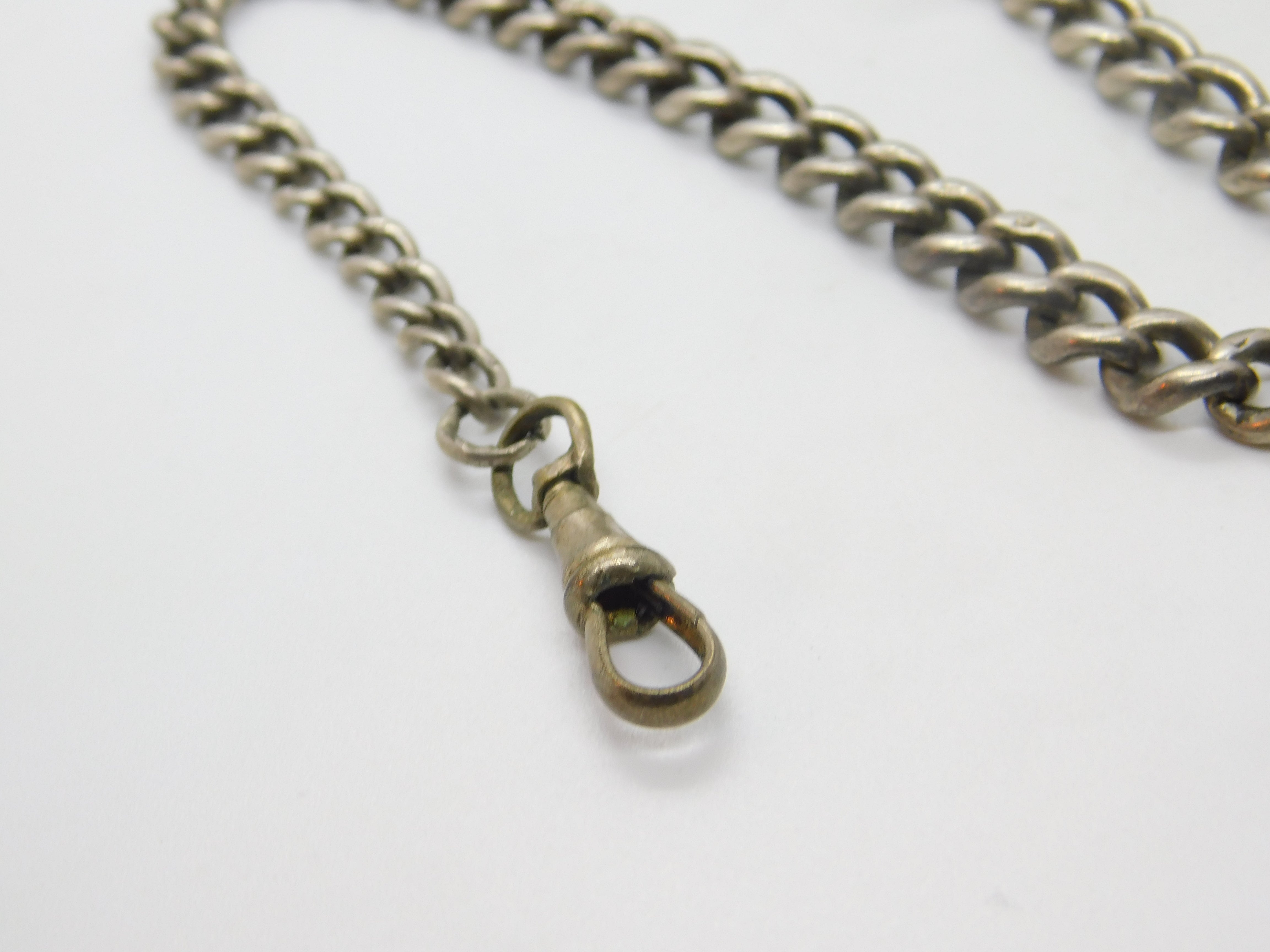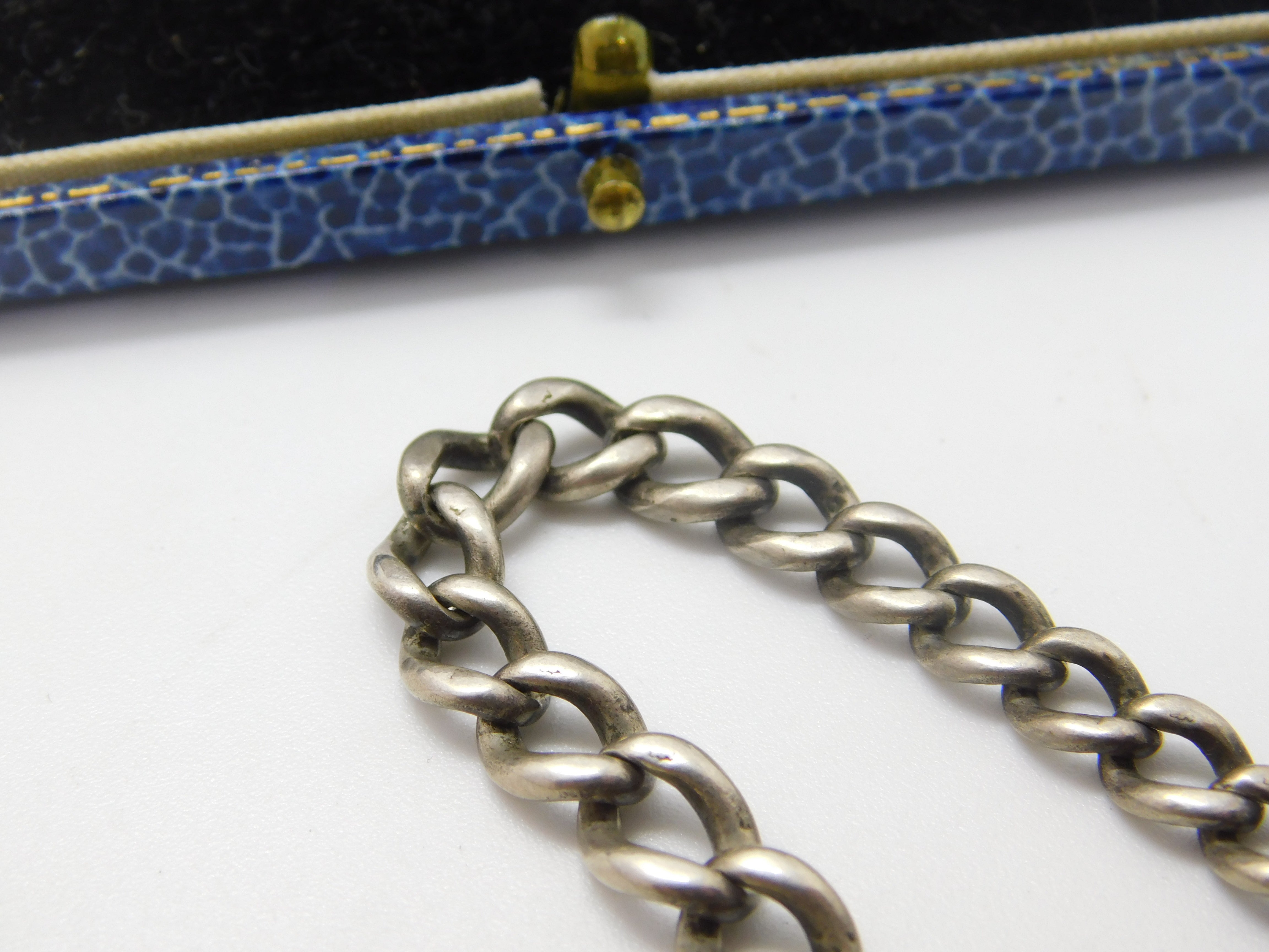 Details: A fantastic and wonderfully designed antique art deco sterling silver graduating albert watch chain with t-bar and dog clip clasp hallmarked to every link of the chain and to the t-bar for Birmingham 1912. The dog clip is brass please note. This is a wonderful item that would make a perfect gift or addition to any collection. The BOX pictured is for PRESENTATION ONLY and is NOT included in the listings but used to frame the pictures unless specifically stated otherwise.