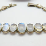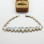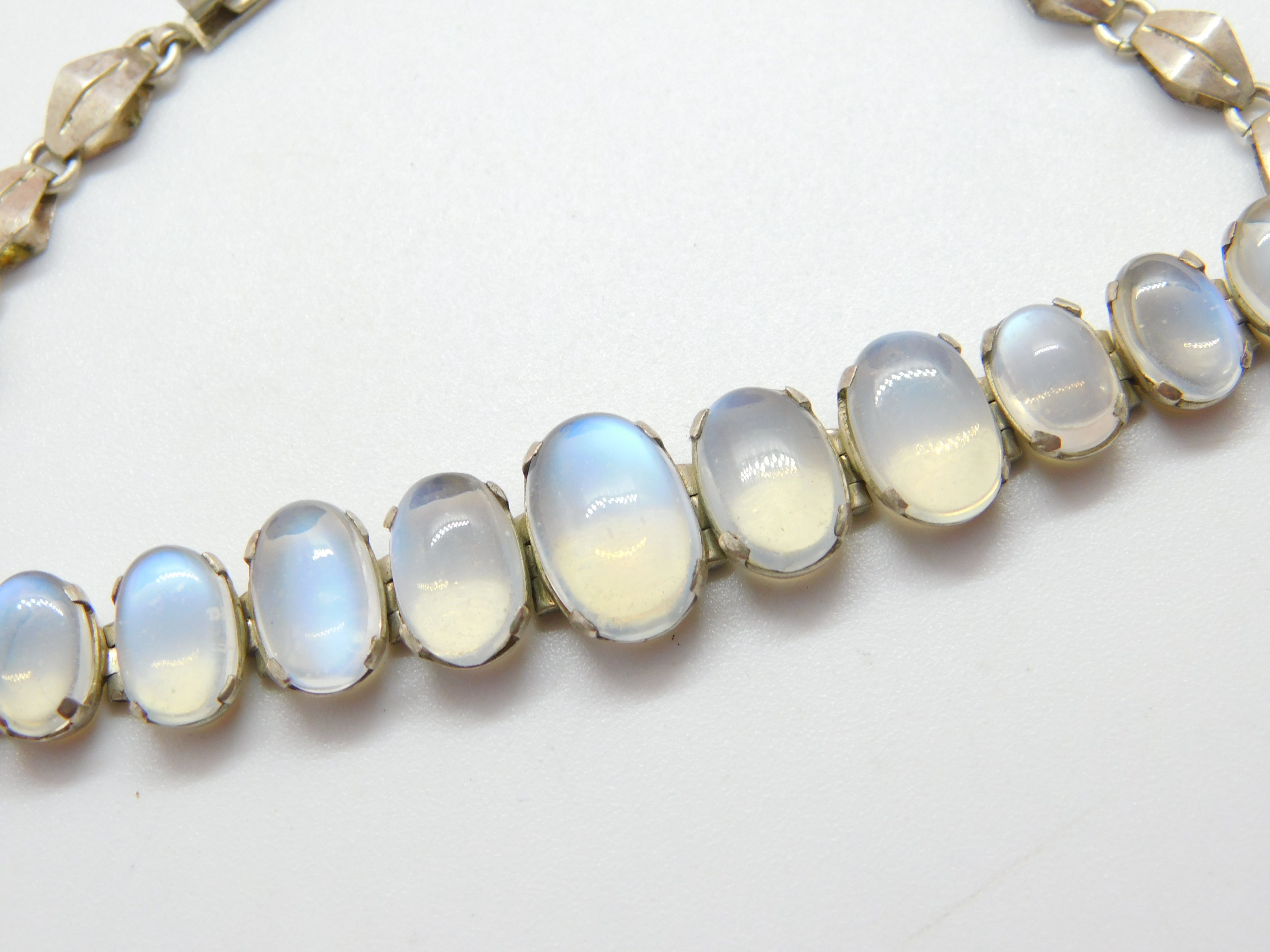 Sterling Silver Graduating Cabochon Moonstone Set Bracelet Antique c1920 Deco