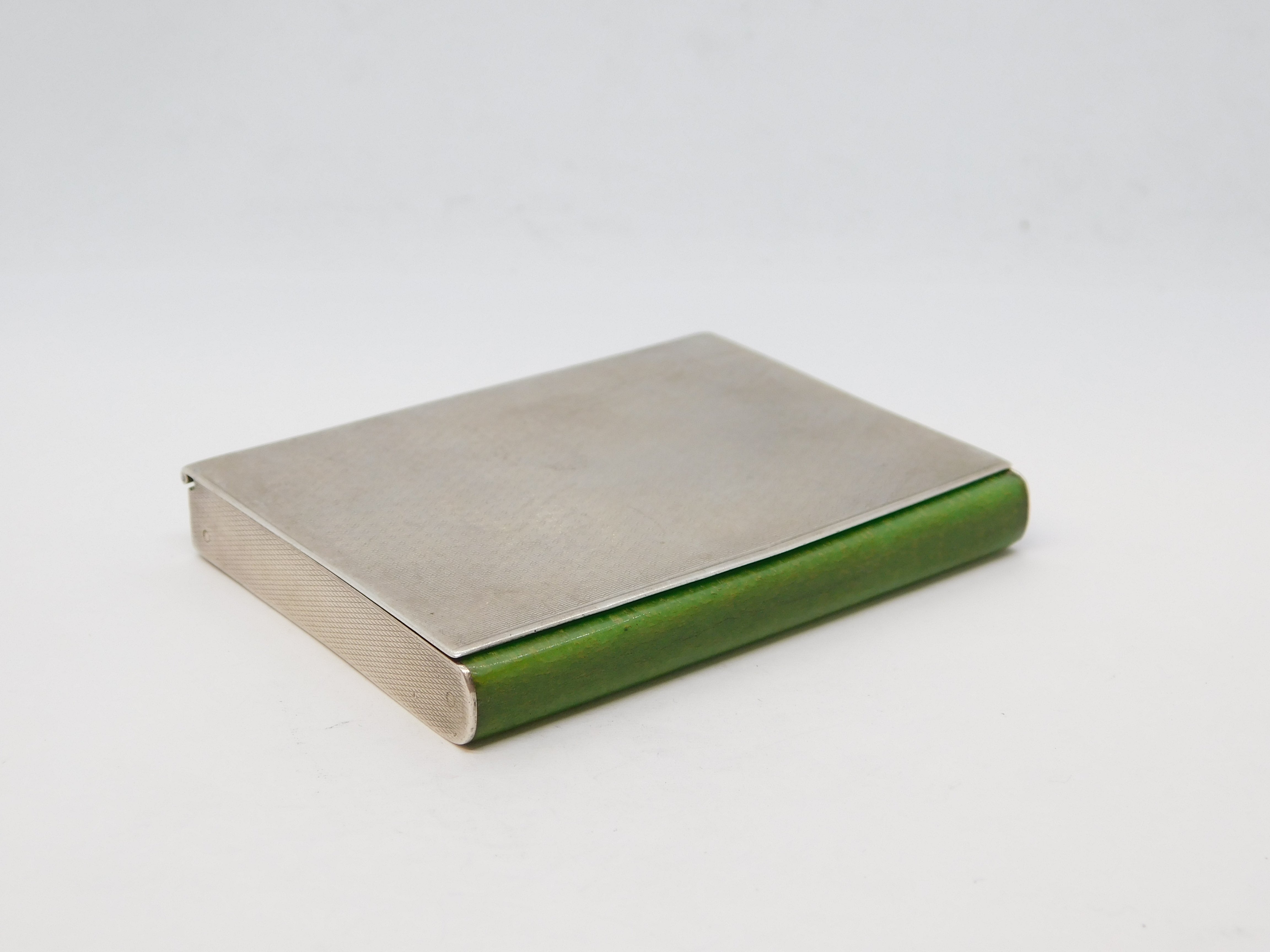 Details: A fantastic and wonderfully designed antique art deco sterling silver & green bakelite cigarette case or pill box with sprung lid hallmarked London 1928 by Cohen & Charles, unusual combination of silver and bakelite. This is a wonderful item that would make a perfect gift or addition to any collection.