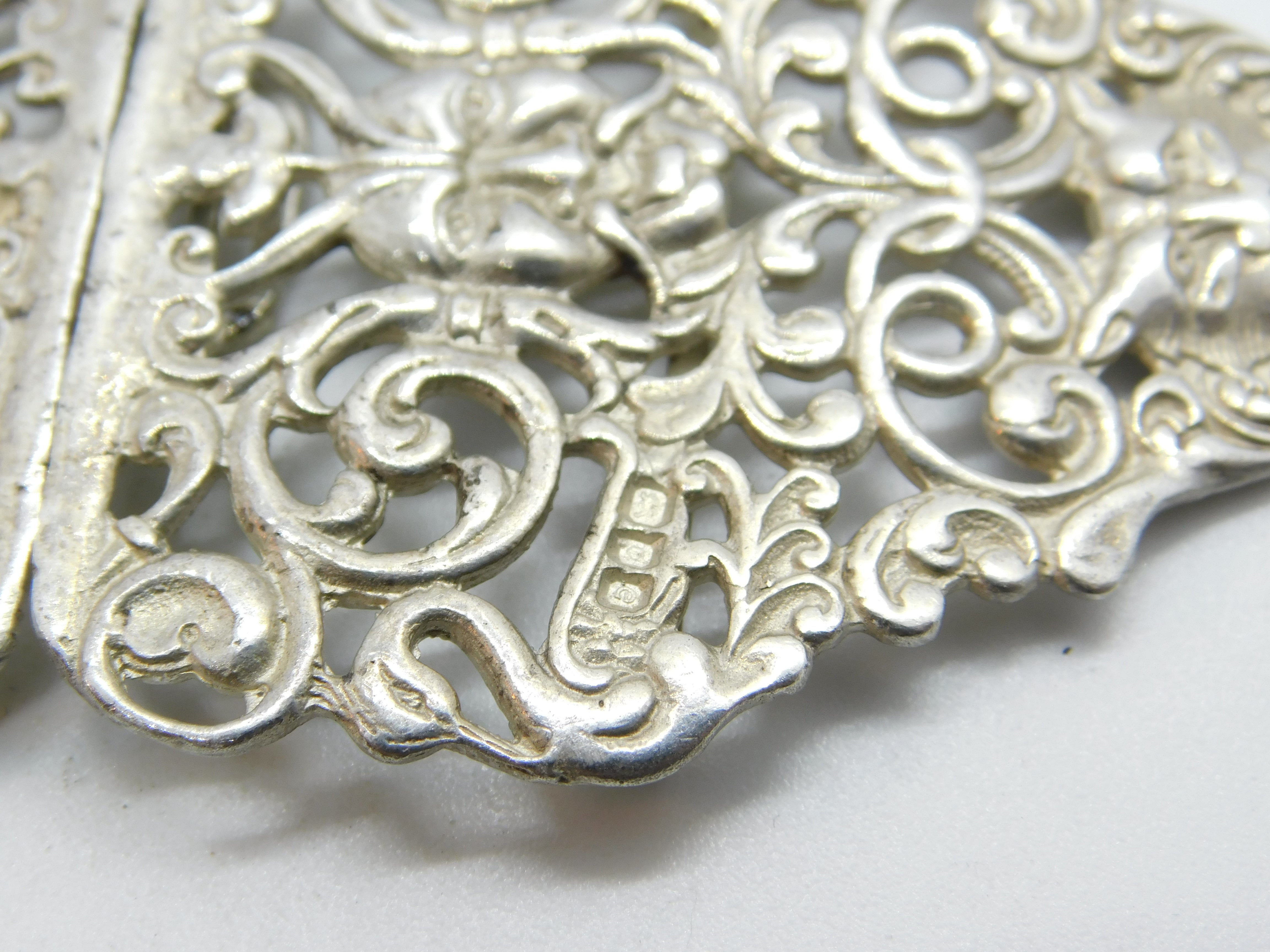 Sterling Silver Green Man & Cat Pattern Nurses Buckle Vintage 1960 London