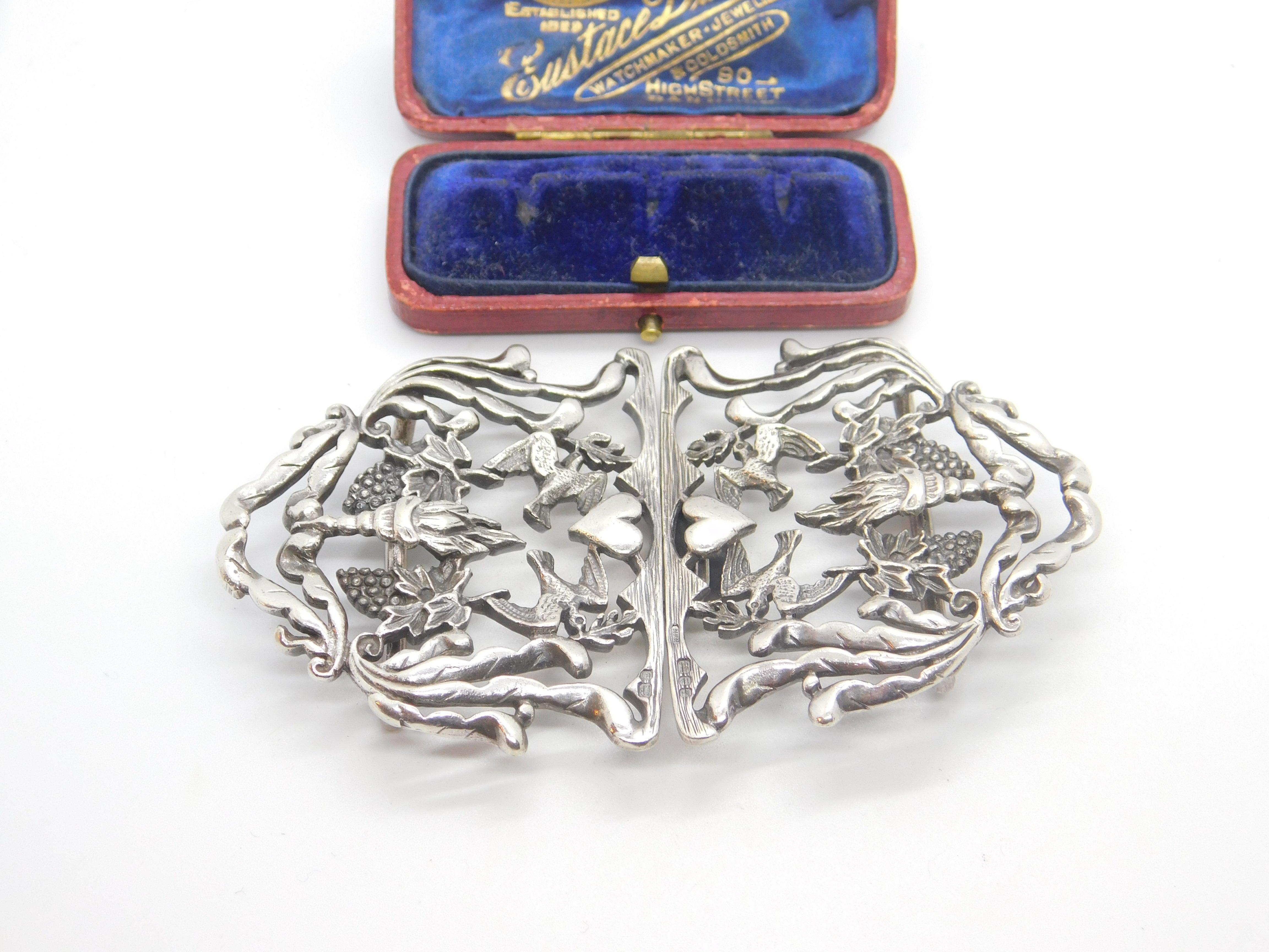 Sterling Silver Heart & Swallow Sweetheart Nurses Buckle 1993 London Vintage