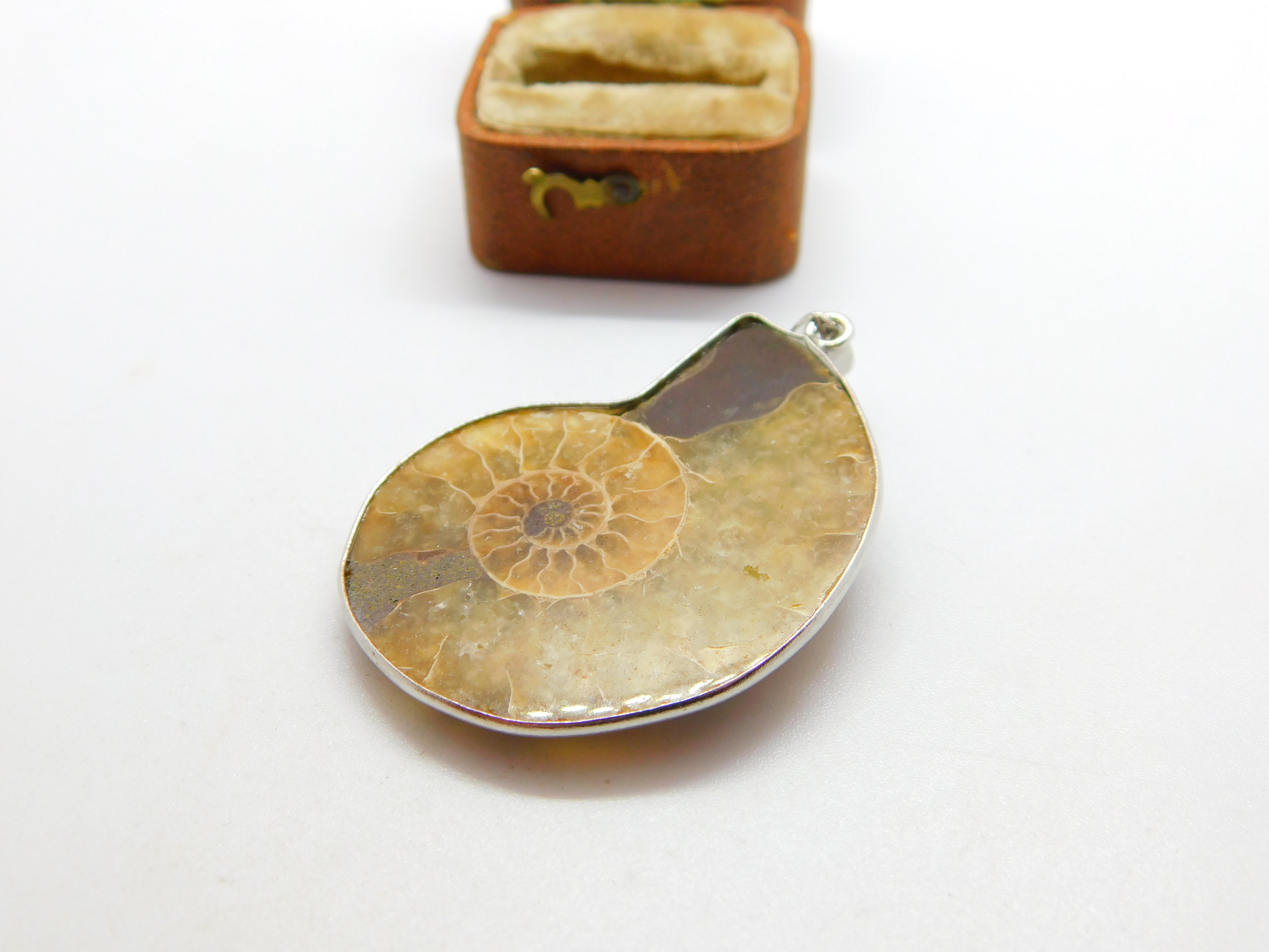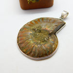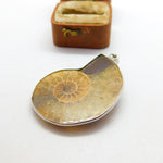 Sterling Silver Large Ammonite Fossil Set Drop Pendant Vintage c1970