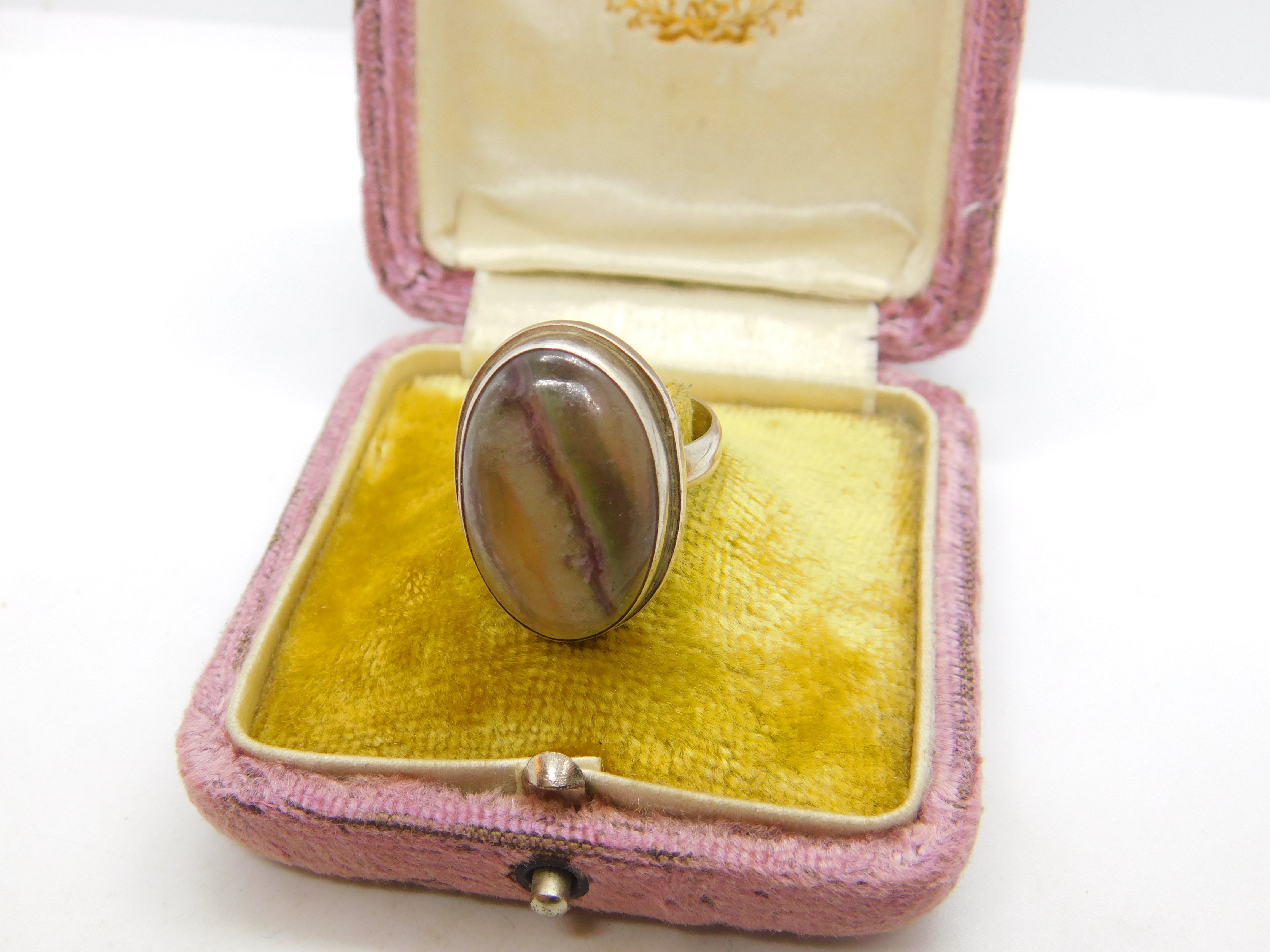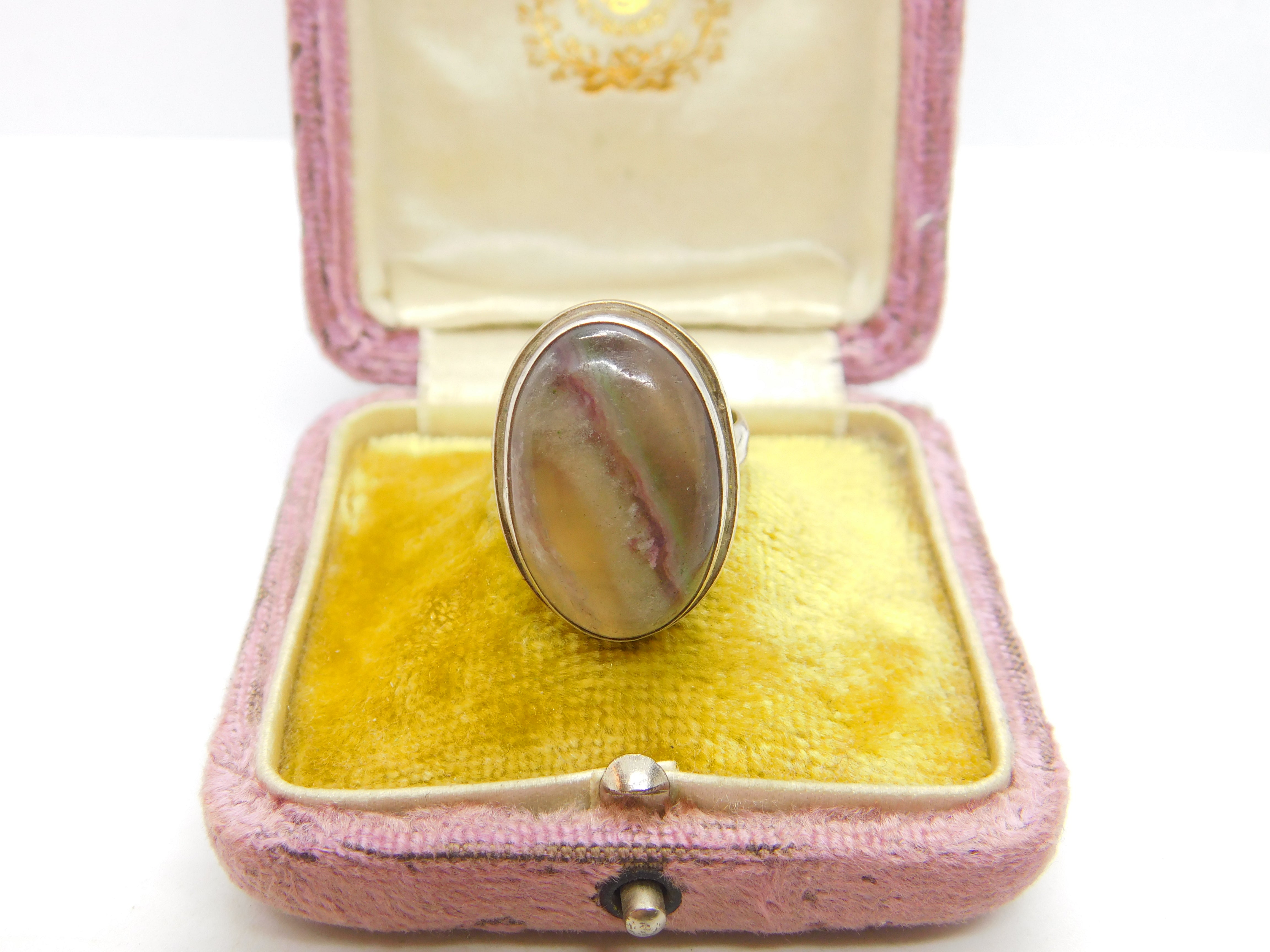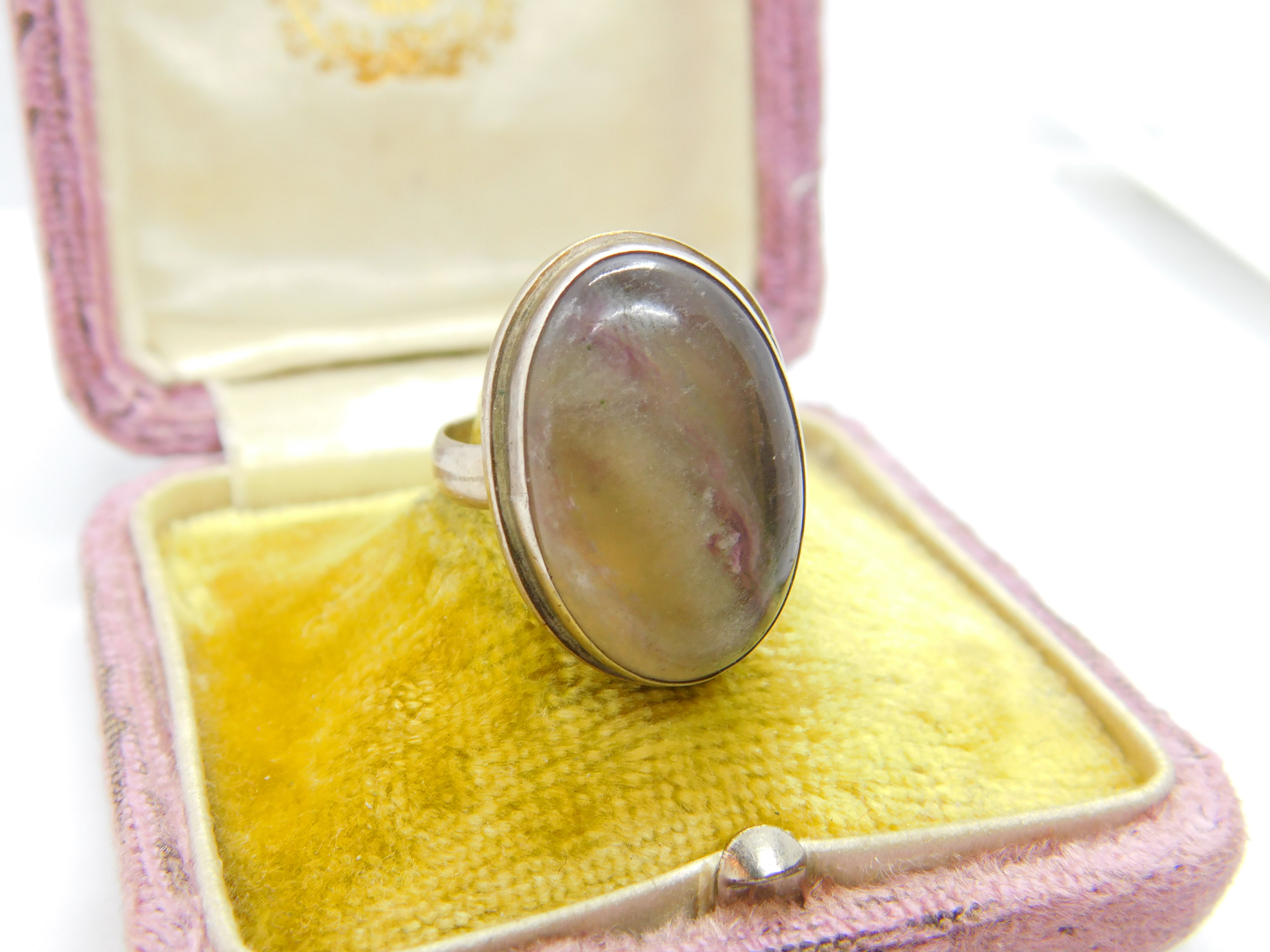 Sterling Silver Large Cabochon Derbyshire Blue John Signet Ring c1930 Antique