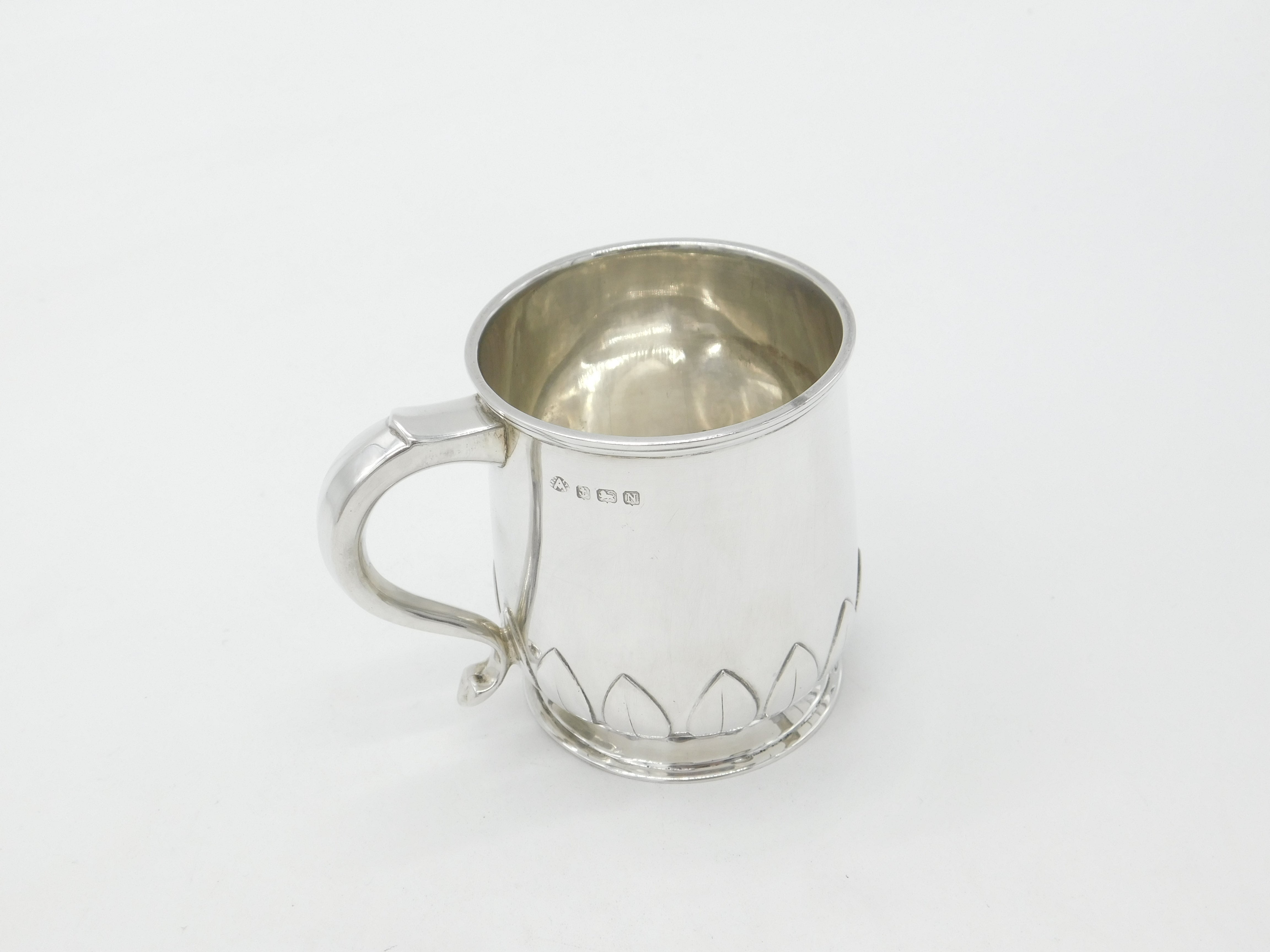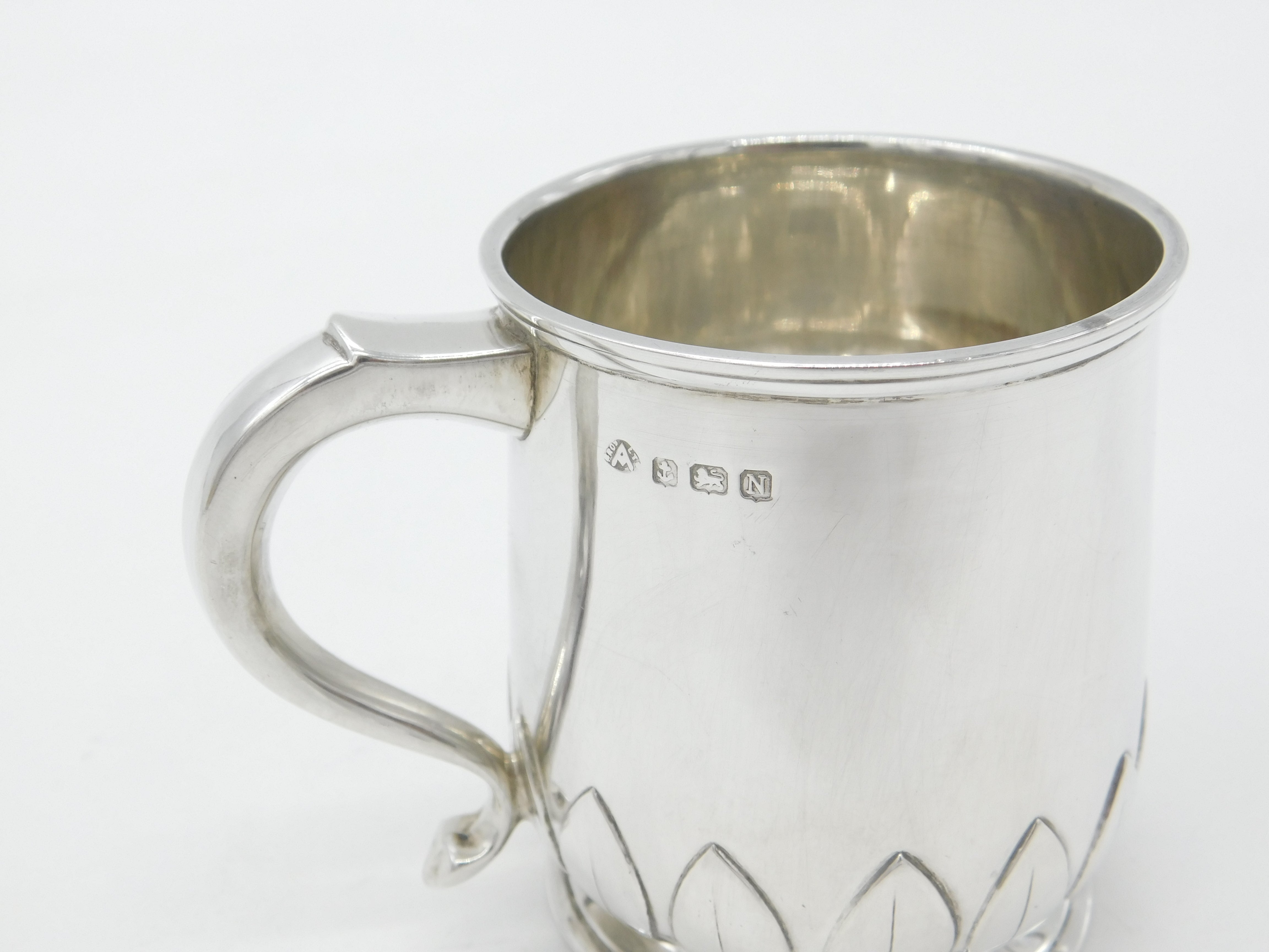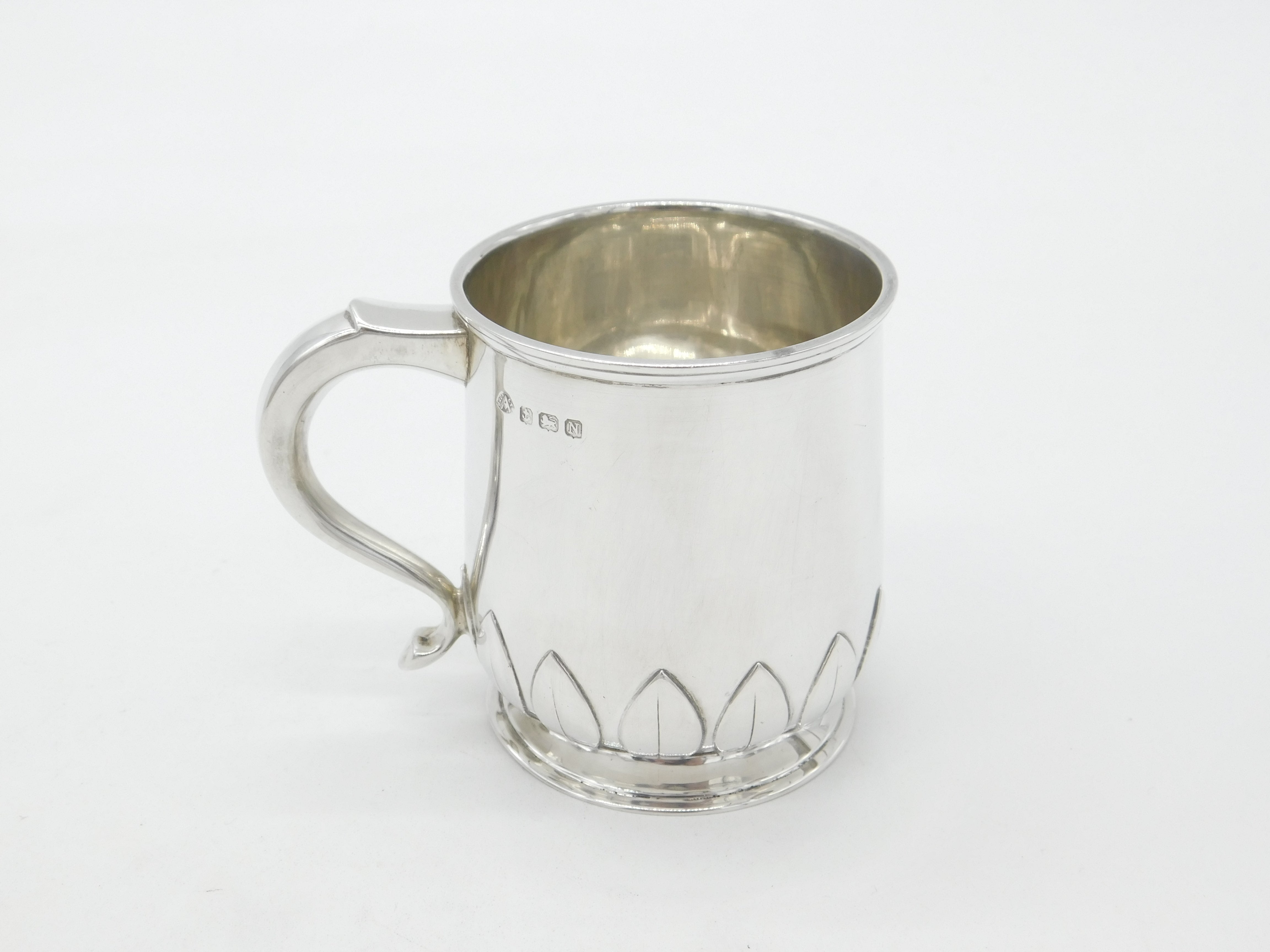 Sterling Silver Leaf Pattern Christening Mug 1937 Birmingham Adie Bros. Antique