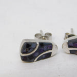 Sterling Silver Modernist Derbyshire Blue John Stud Earrings Vintage c1970