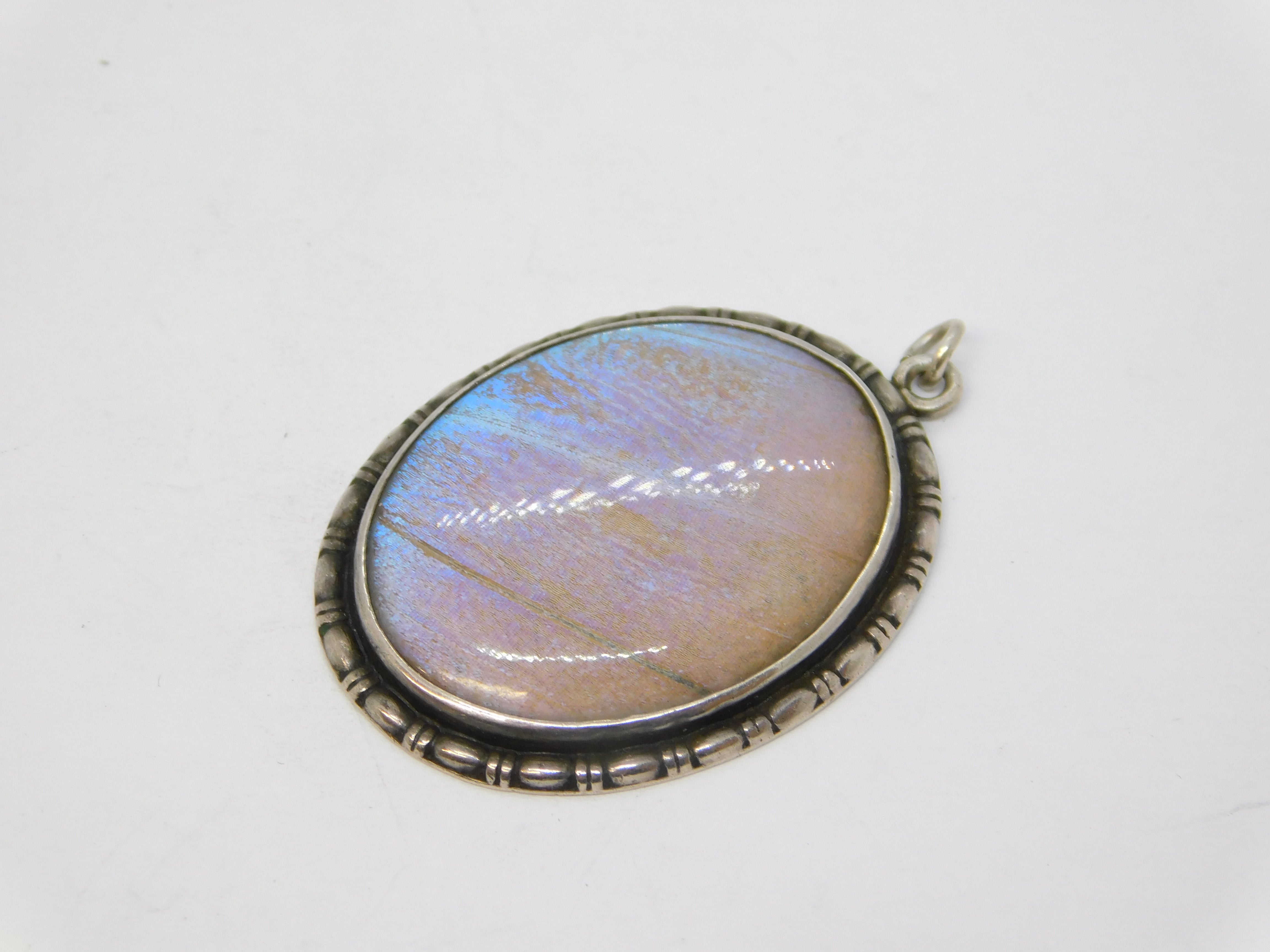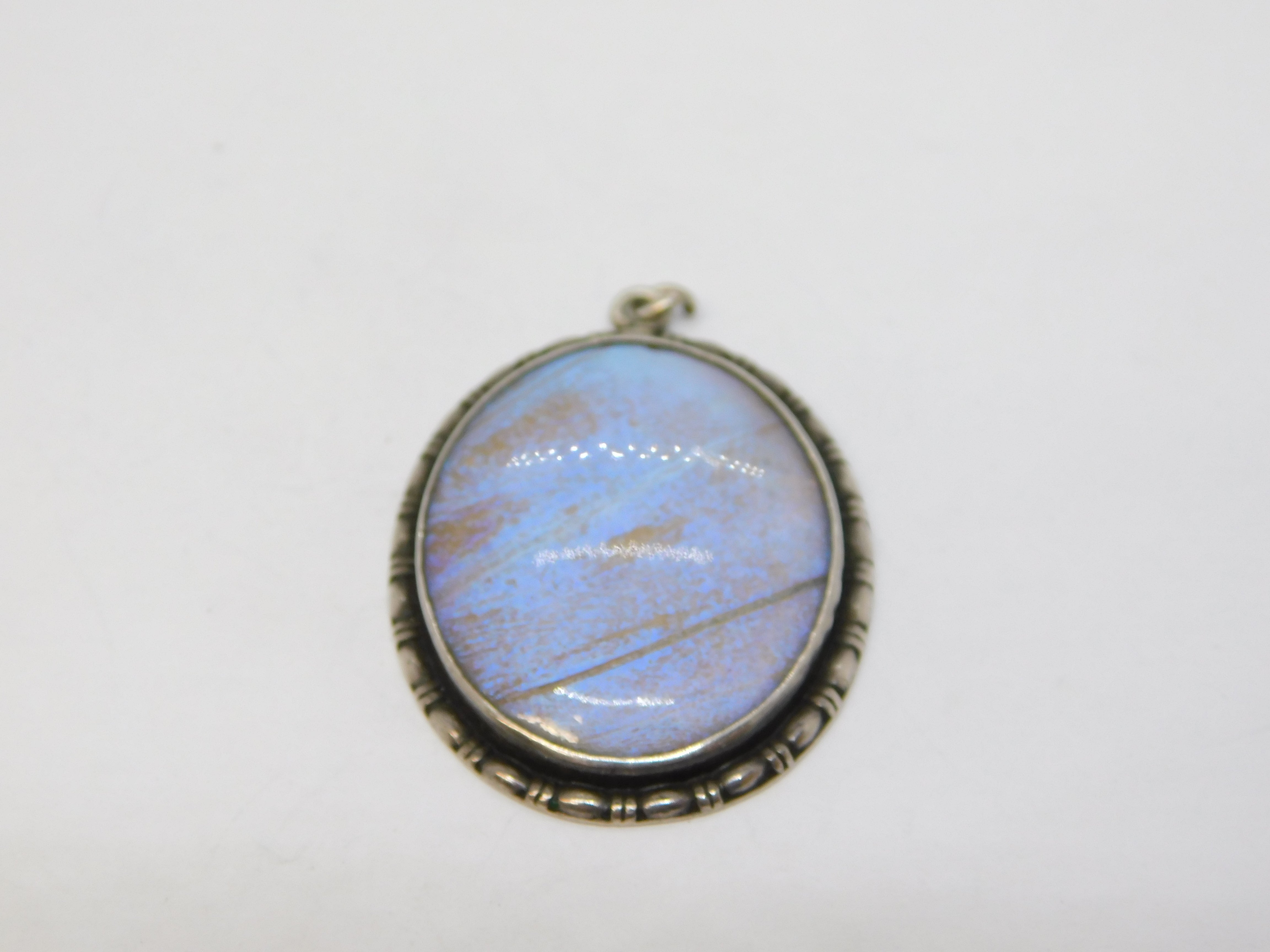 Sterling Silver Morpho Butterfly Wing Drop Pendant Antique 1921 Birmingham