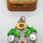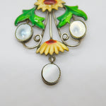 Sterling Silver, Mother of Pearl & Enamel Sunflower Pendant Antique c1920 Deco
