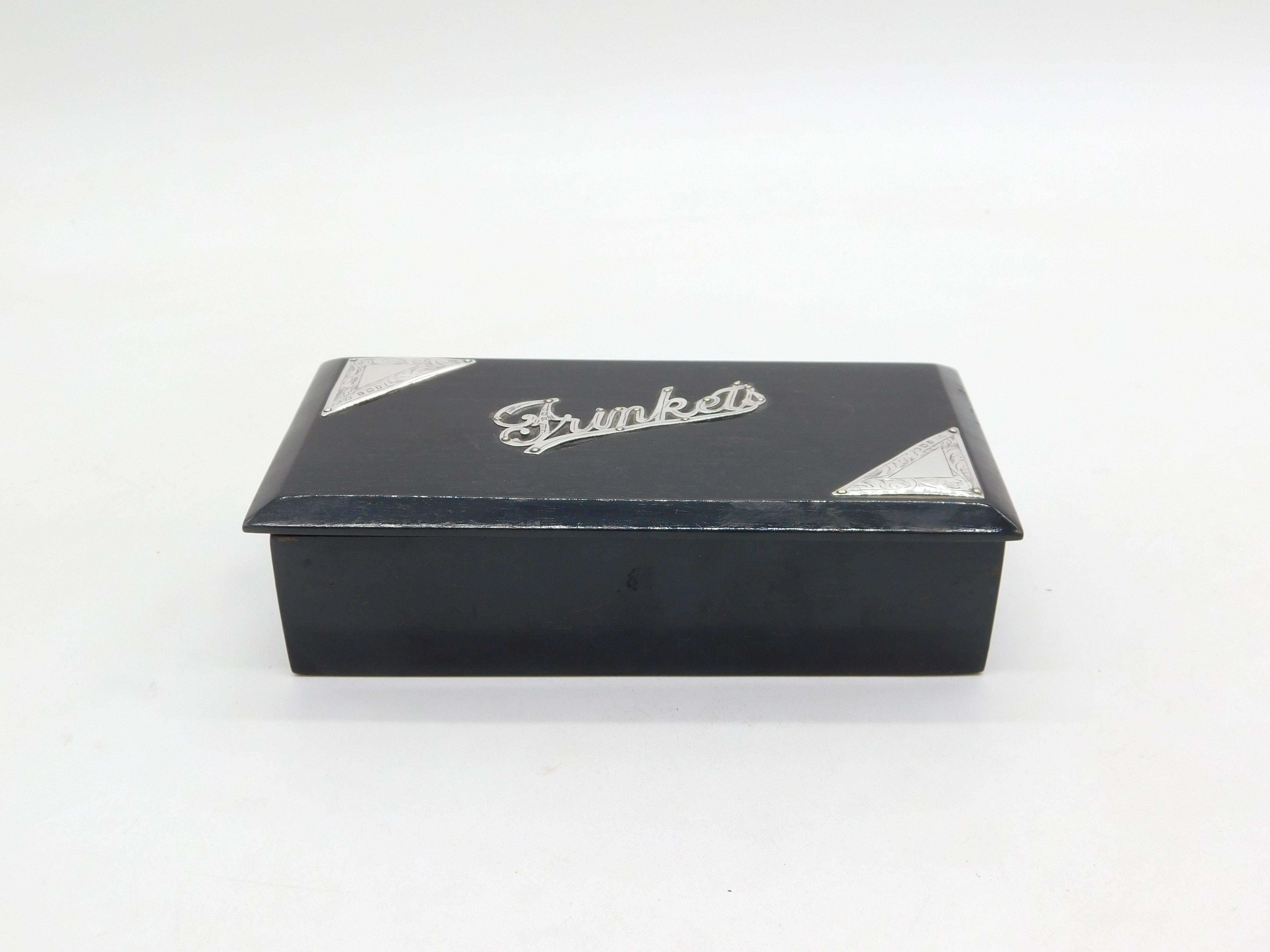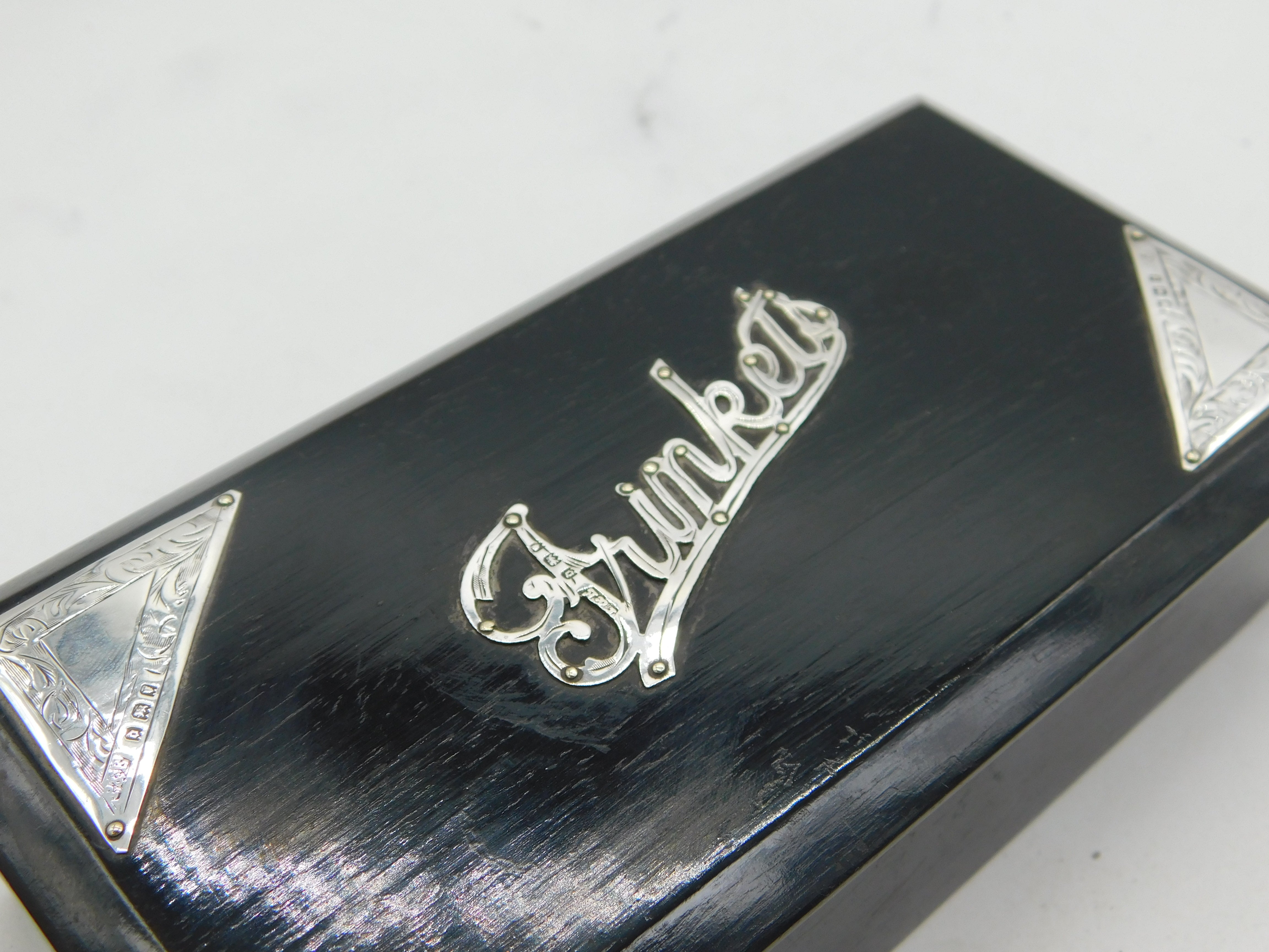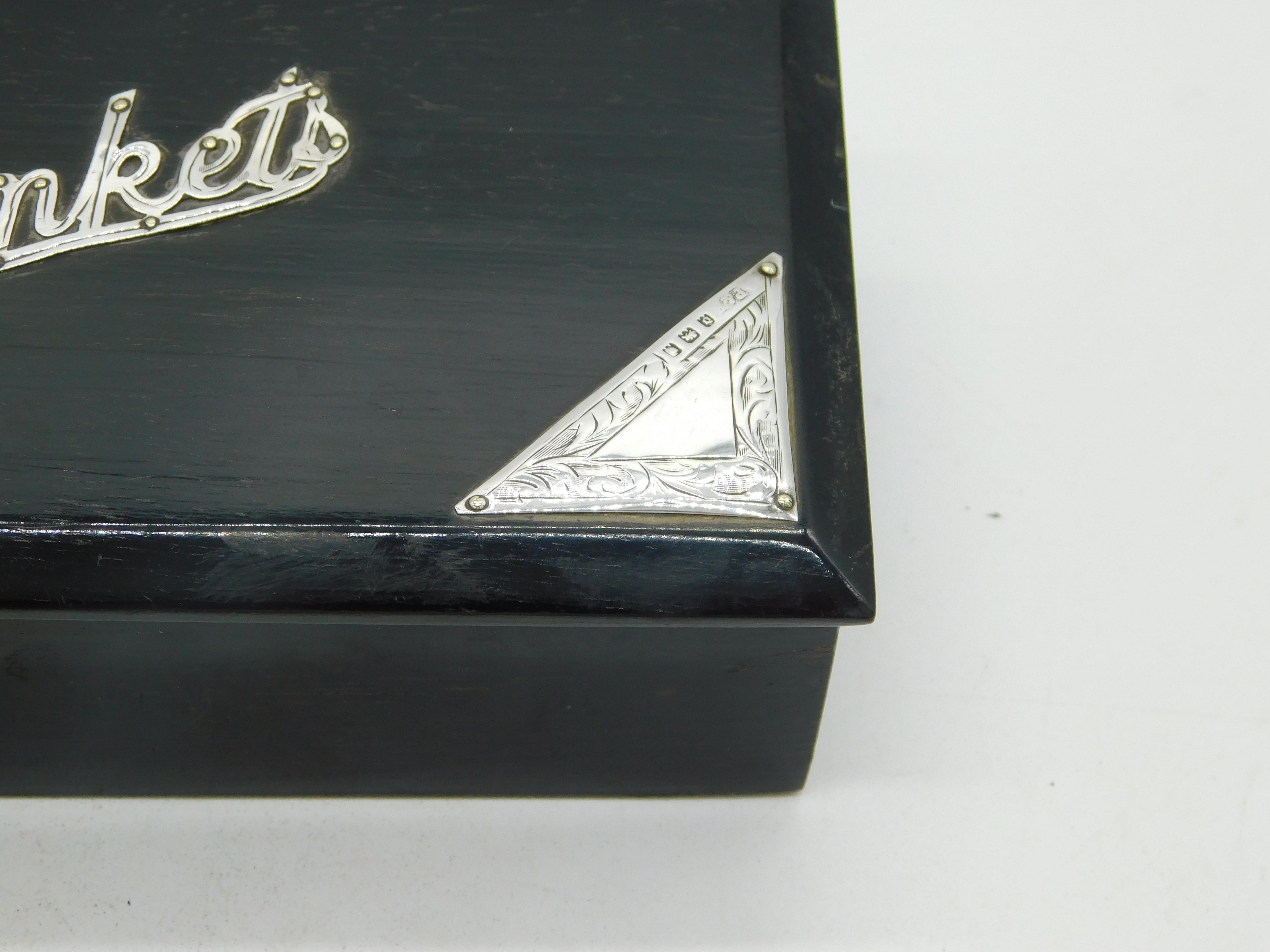 Sterling Silver Mounted Ebony Wood 'Trinkets' Jewellery Box Antique 1919 London