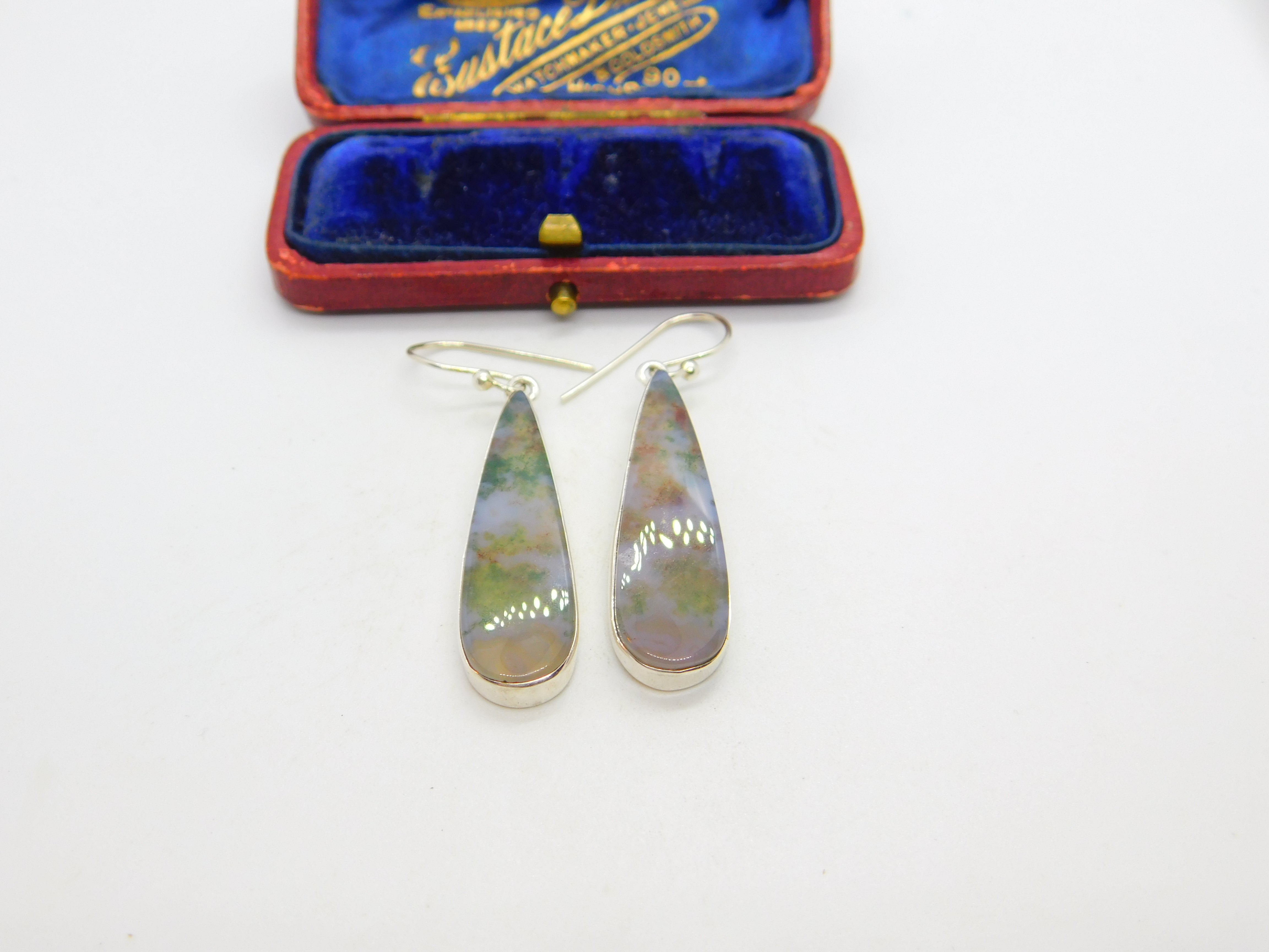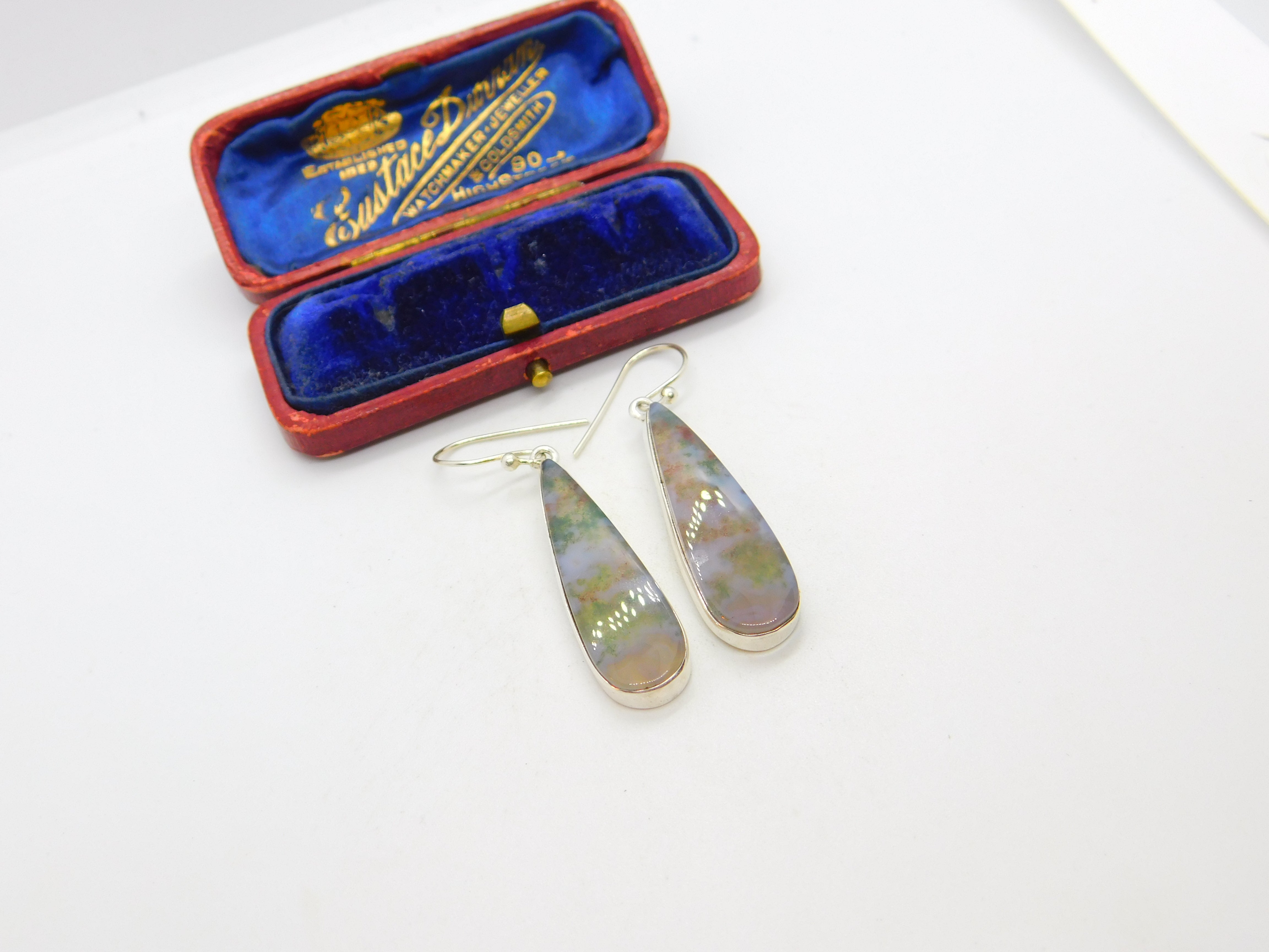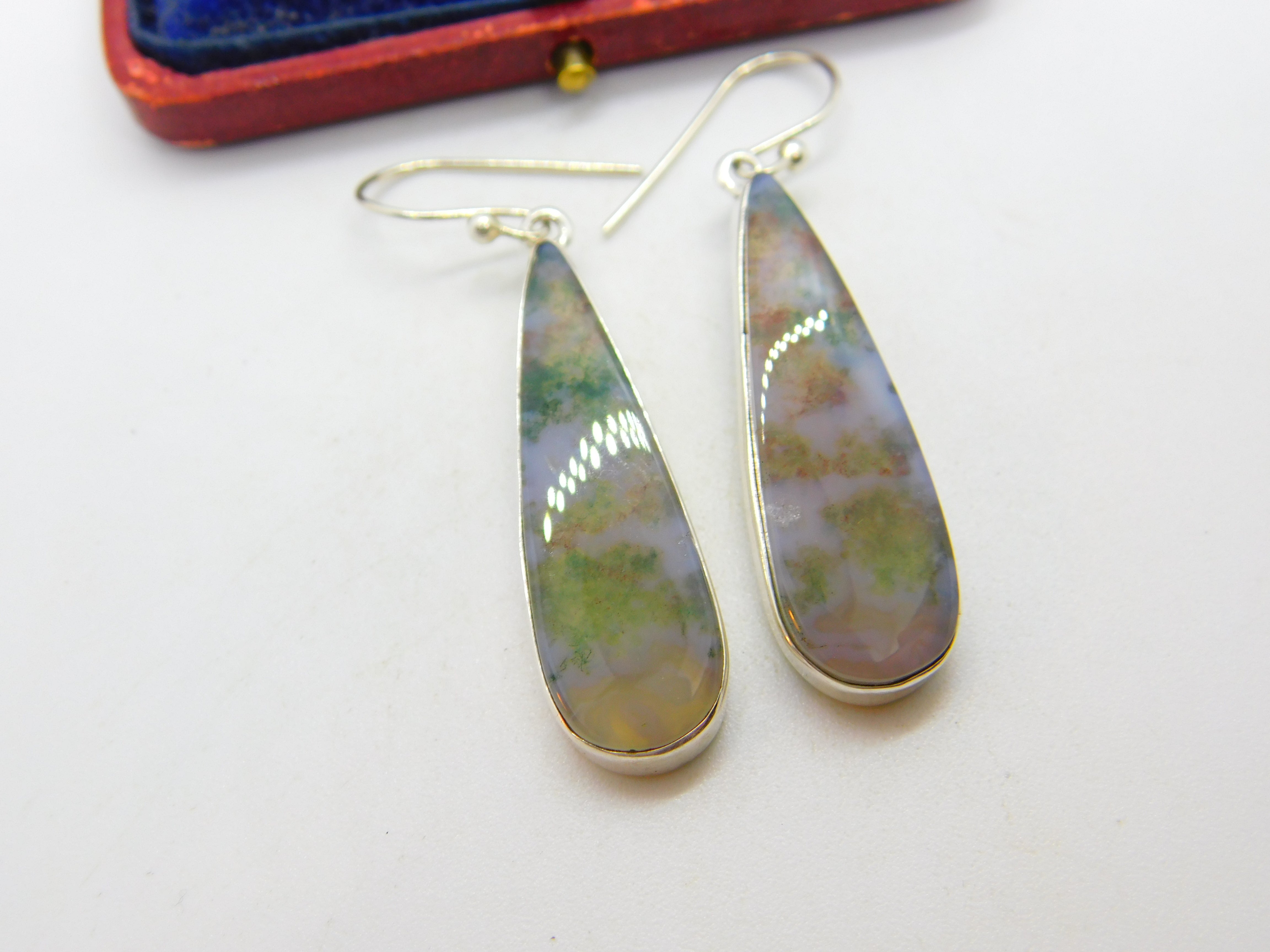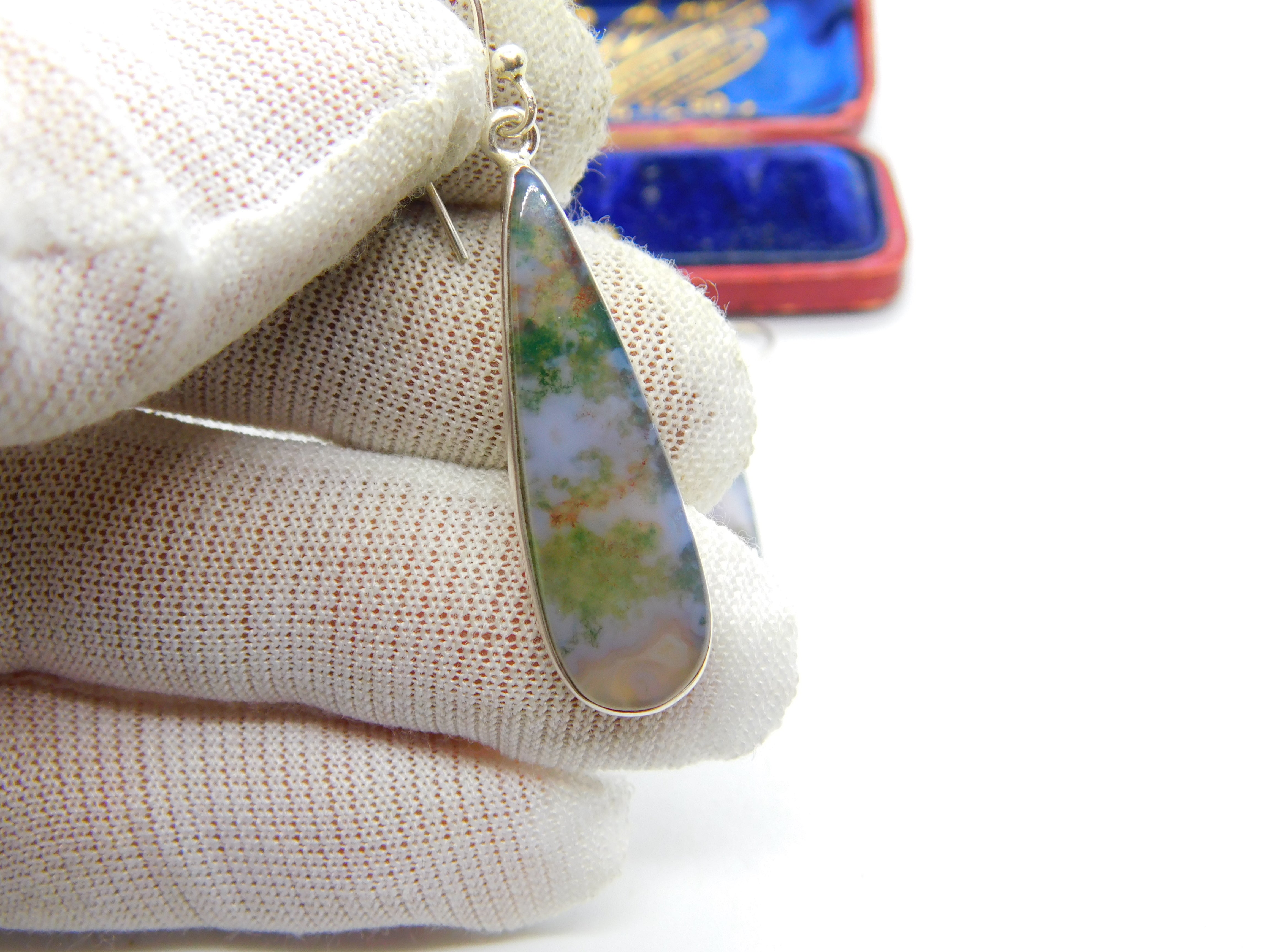 Details: A fantastic and wonderfully designed vintage sterling silver & dendritic moss agate drop hook earrings c1970. This is a wonderful item that would make a perfect gift or addition to any collection. The BOX pictured is for PRESENTATION ONLY and is NOT included in the listings but used to frame the pictures unless specifically stated otherwise.