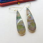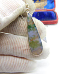 Sterling Silver Mounted Moss Agate Drop Earrings Vintage c1970