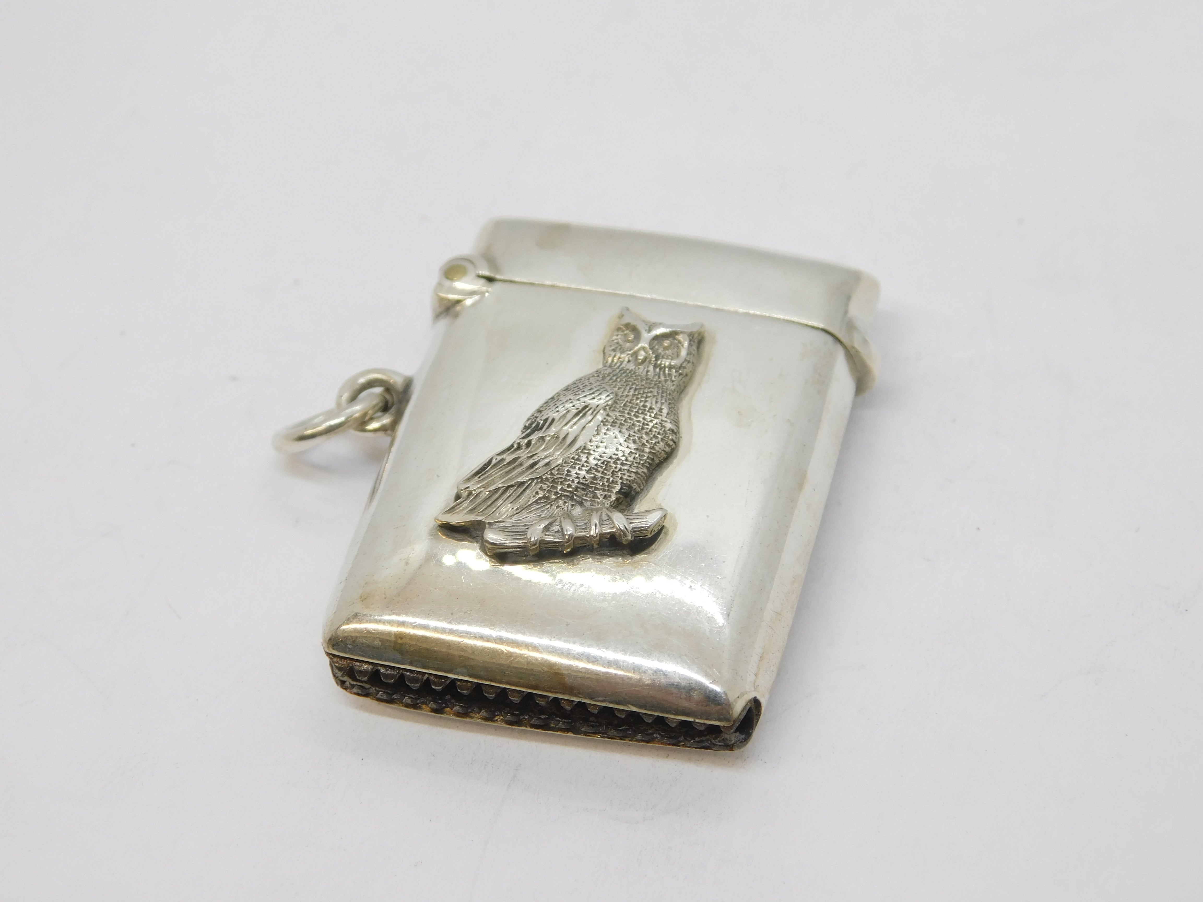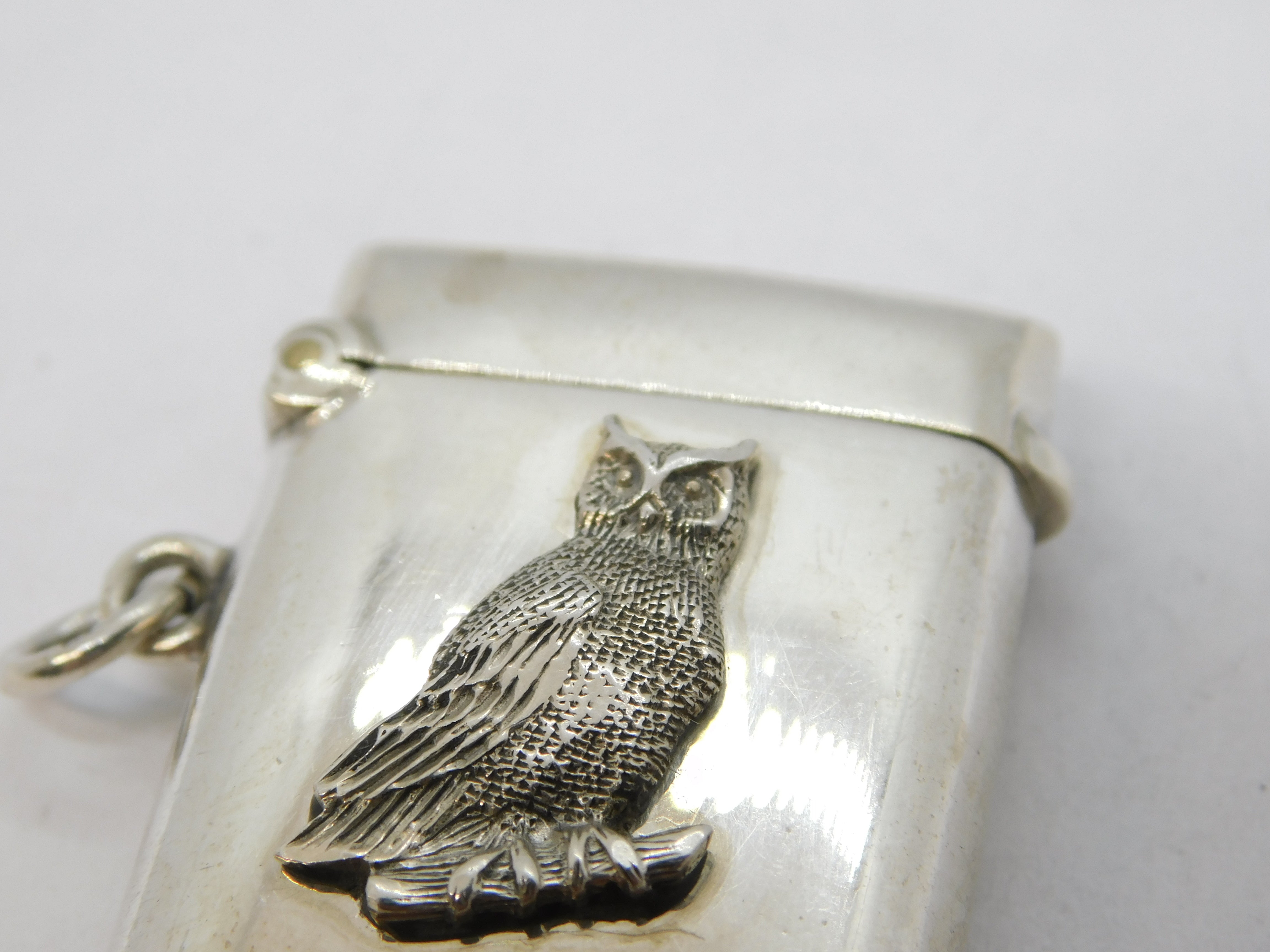 Sterling Silver Novelty Owl Form Vesta Case Antique 1912 Birmingham Art Deco