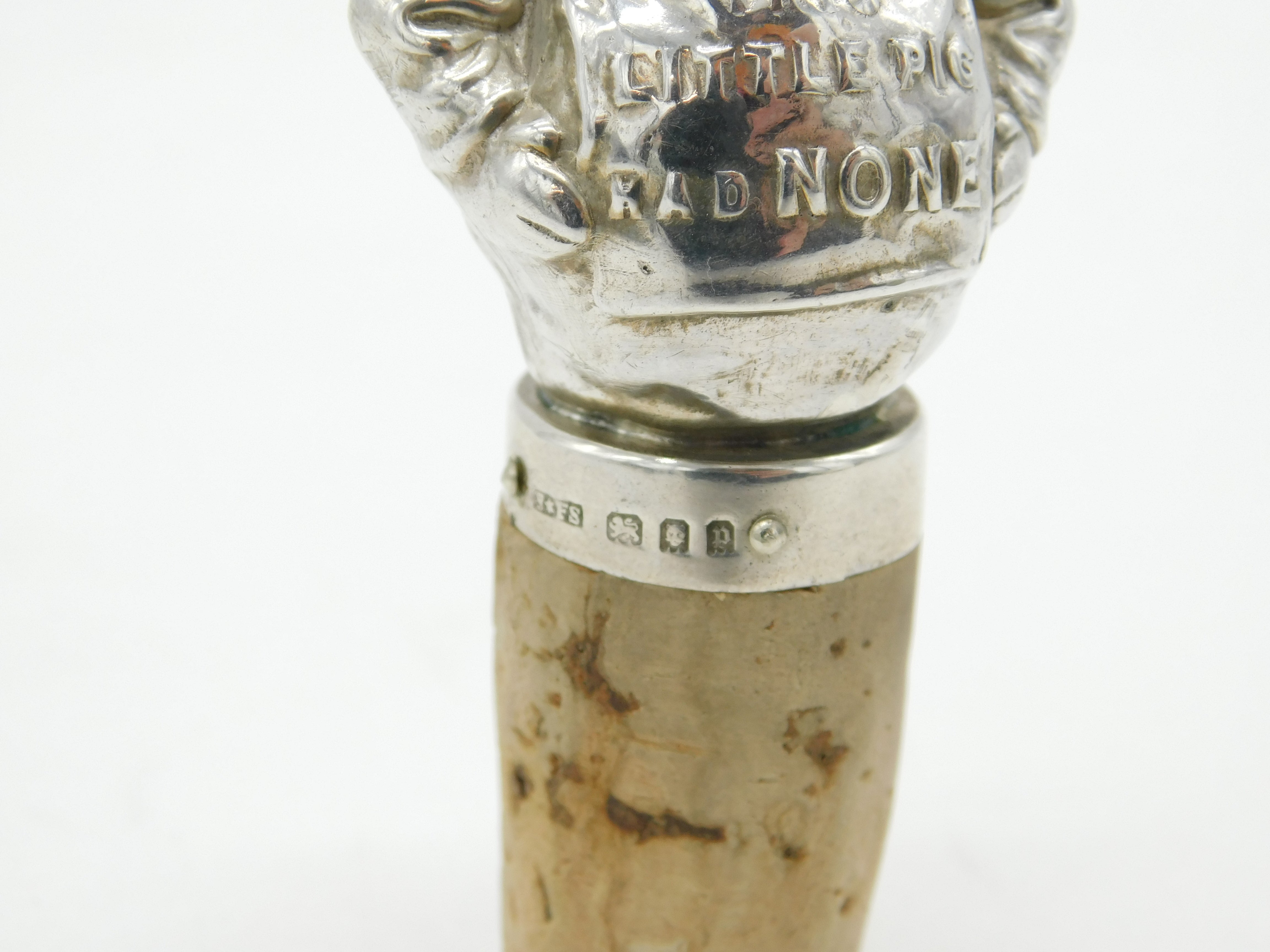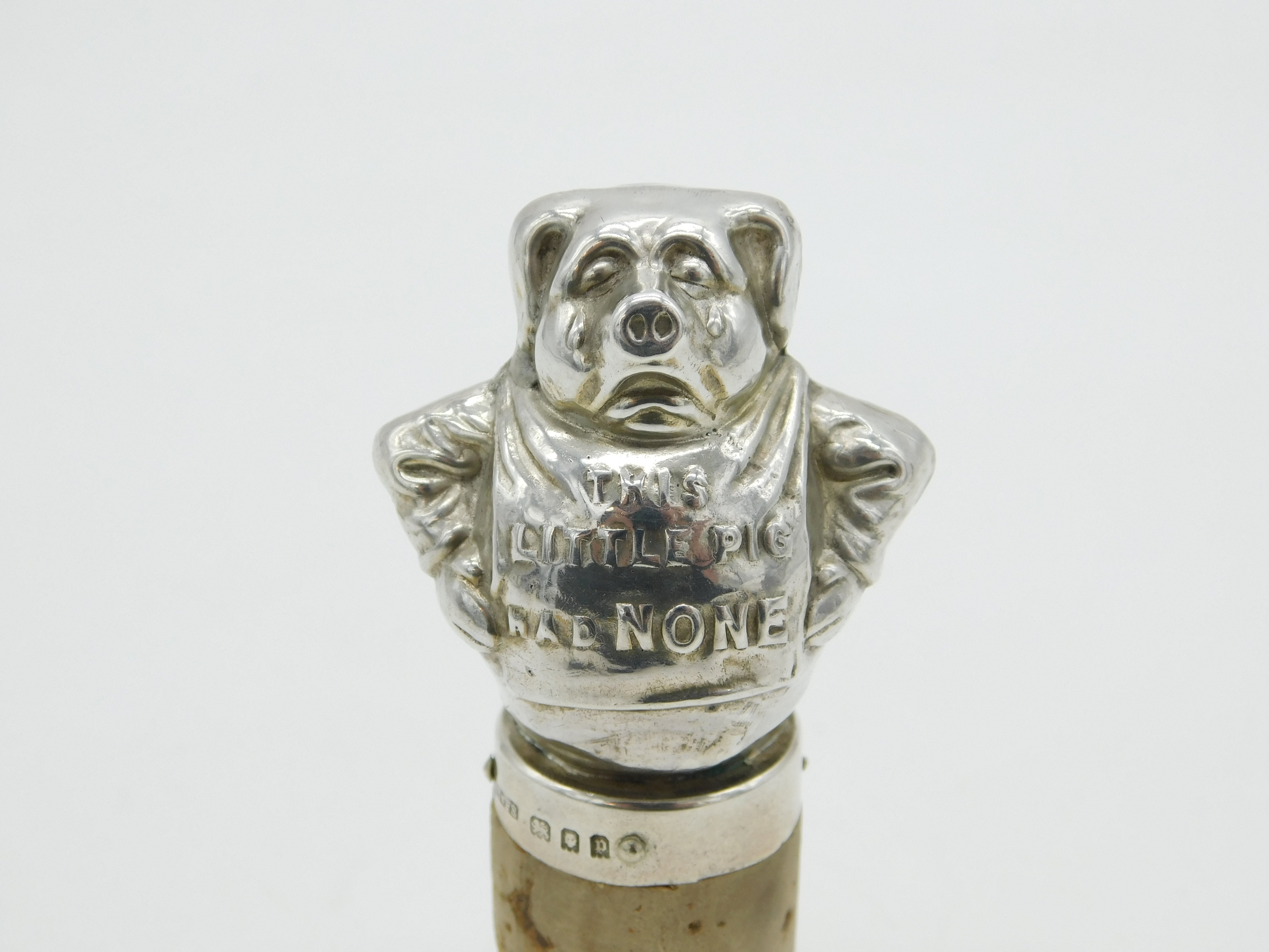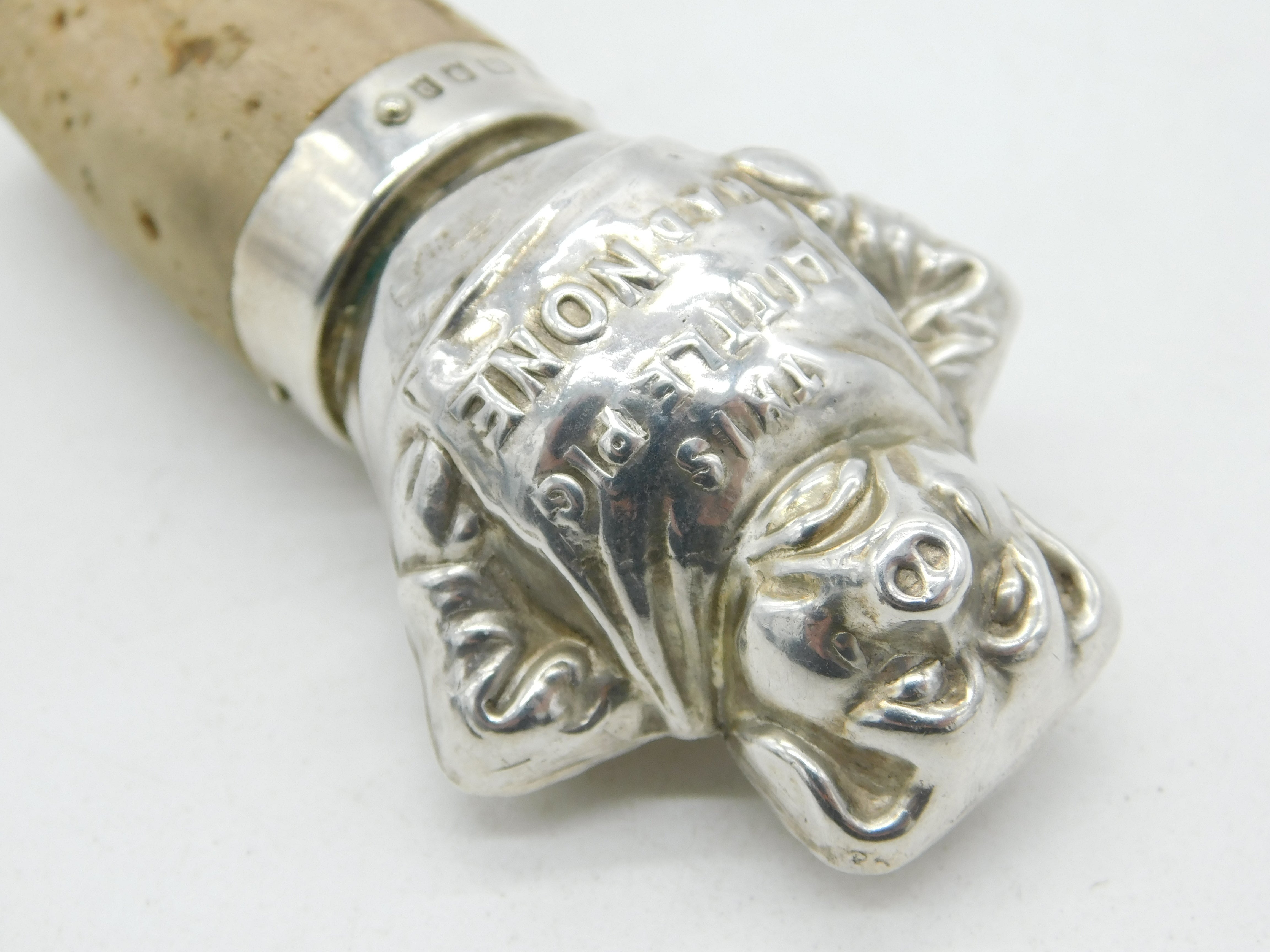Sterling Silver Novelty 'This Little Pig Had None' Bottle Stopper Antique 1930 London