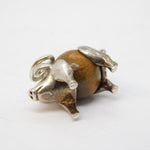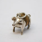 Sterling Silver & Oak Wood Set Pig Charm Pendant Vintage c1950
