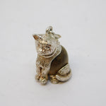 Sterling Silver & Oak Wood Set Sitting Cat Charm Pendant Vintage c1950