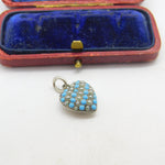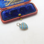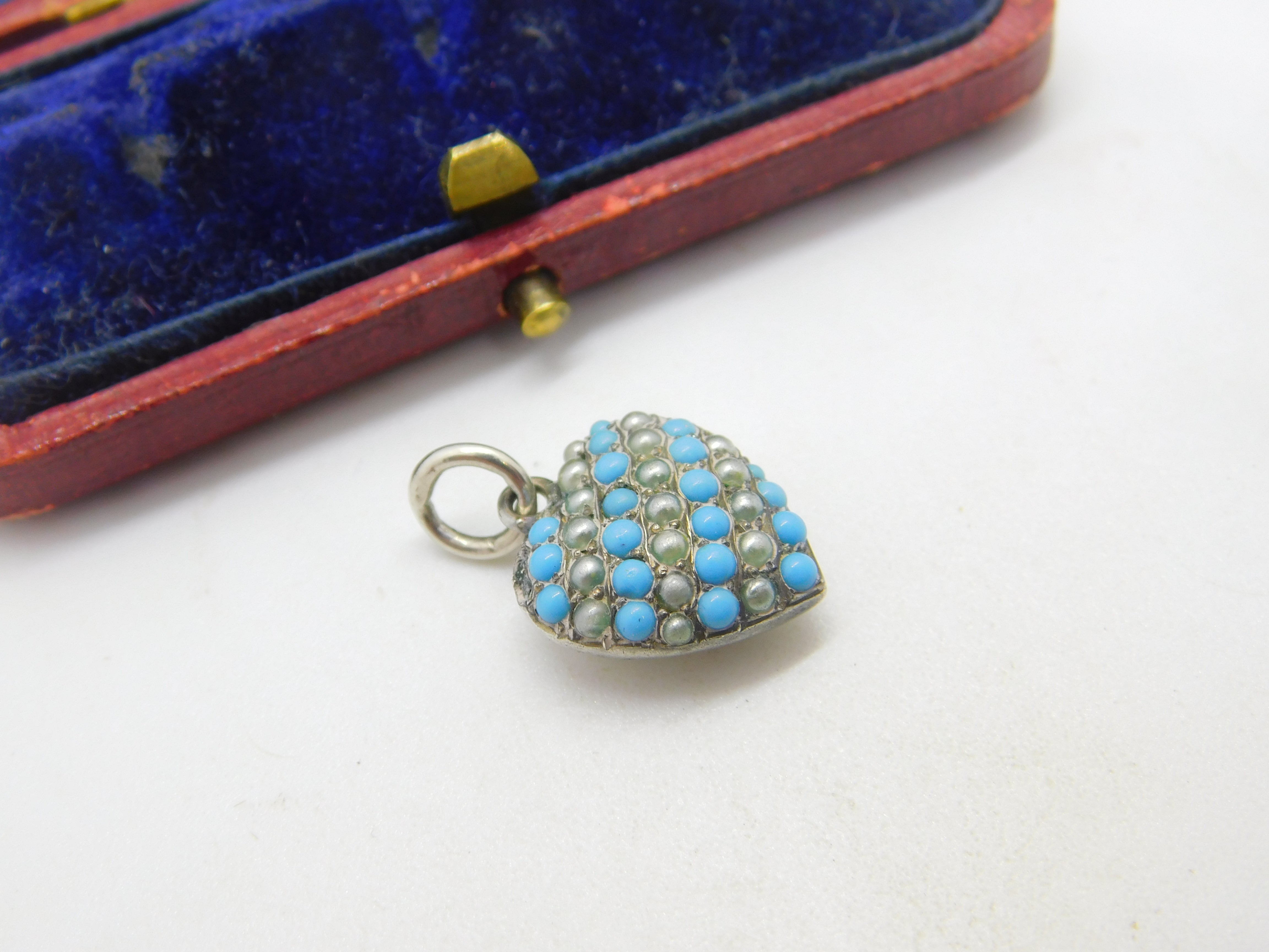 Sterling Silver Pave Set Turquoise & Seed Pearl Puffy Heart Pendant Antique 1920